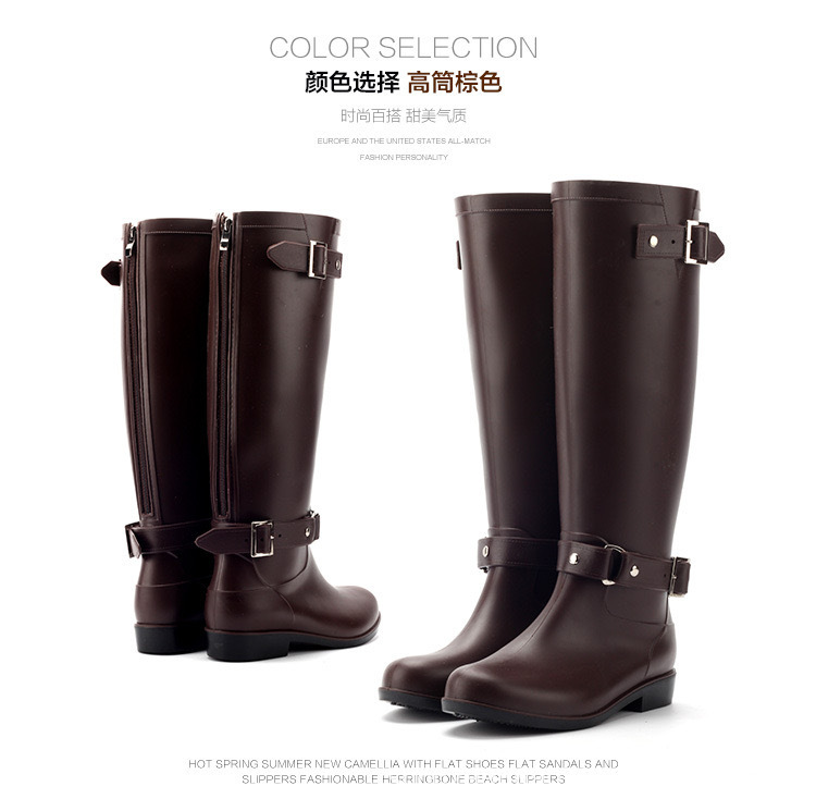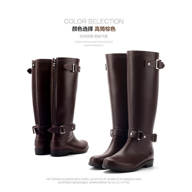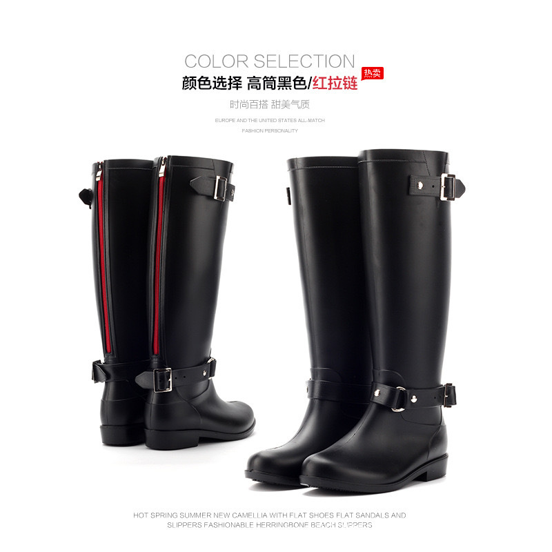 패션 높은 비 부츠 버클 레드 지퍼 한국 스타일의 물 신발 여성 방수 마틴 부츠 비 신발 스노우 부츠 주방 부츠