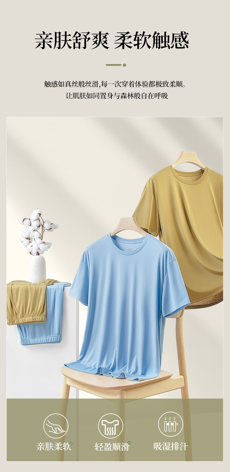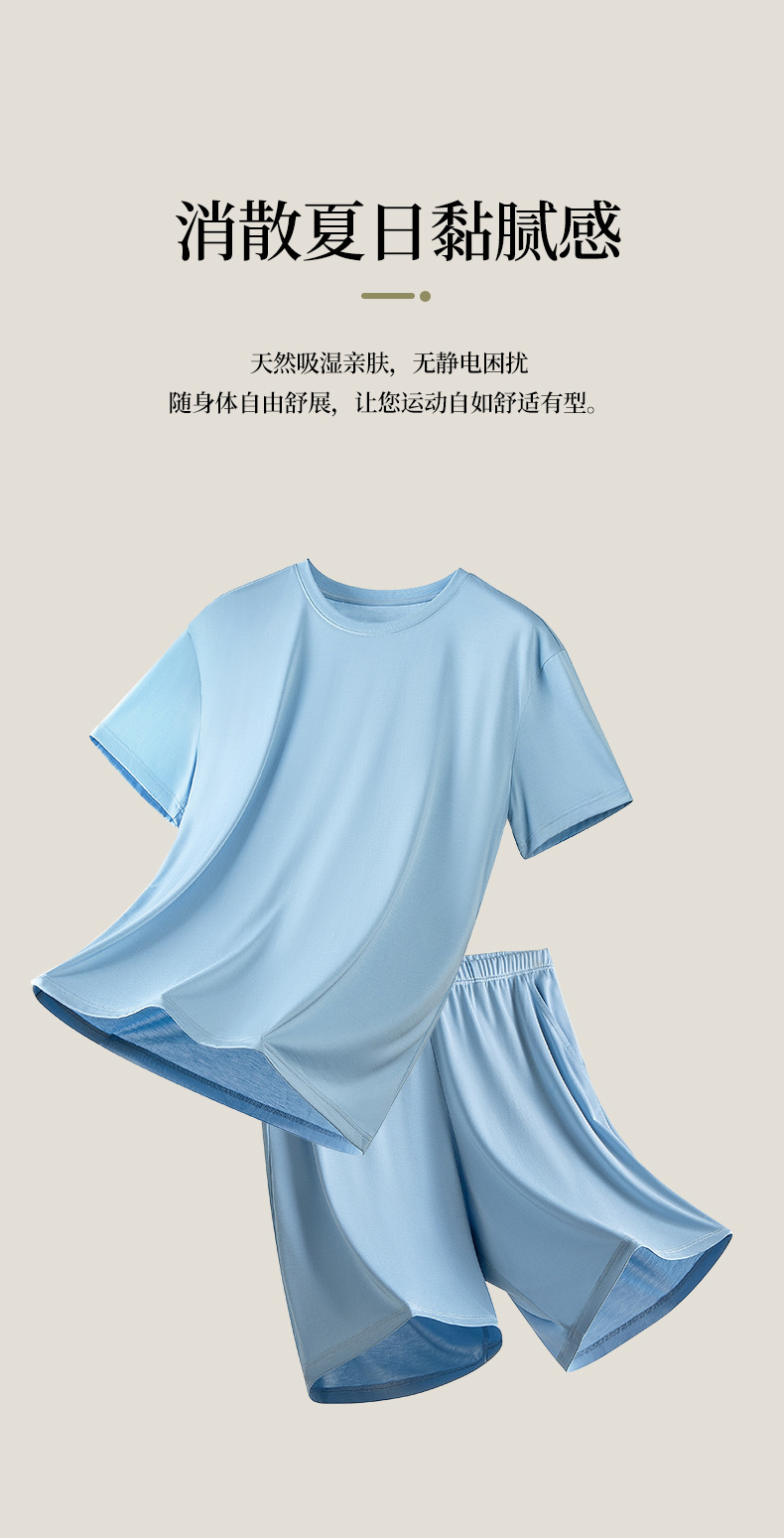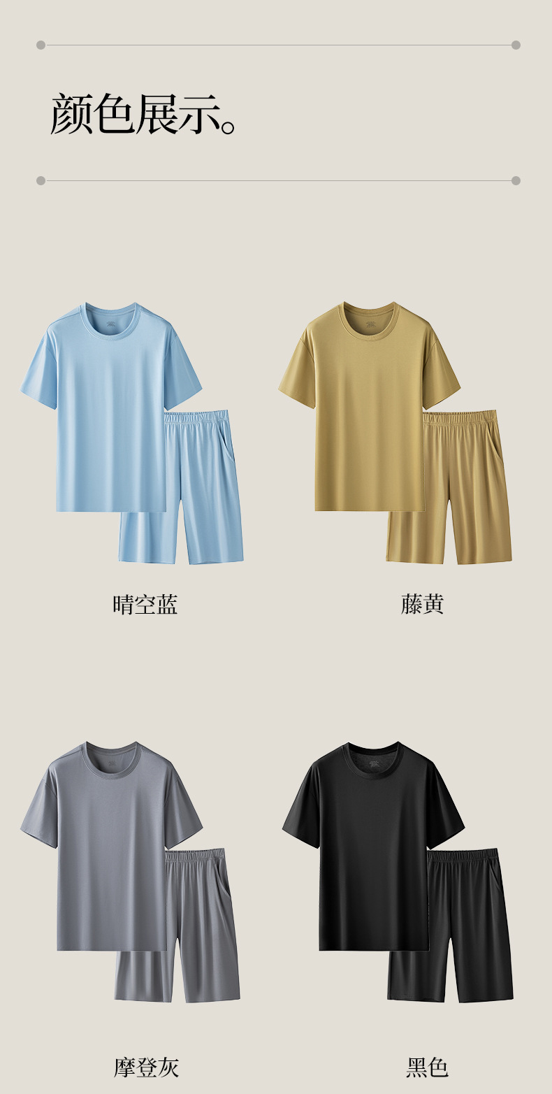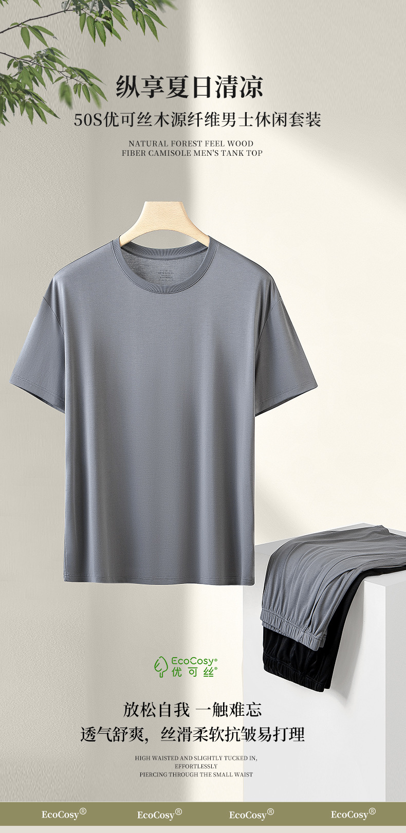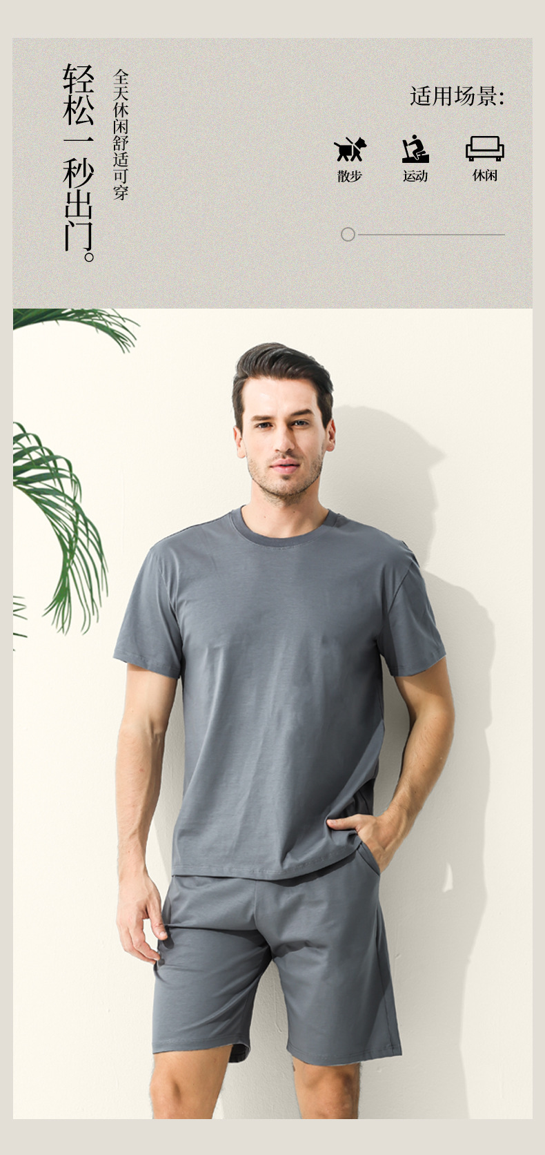홈 의류 세트 새로운 Youcan 여름 남성용 솔리드 컬러 라운드 넥 반팔 반바지 투피스 세트