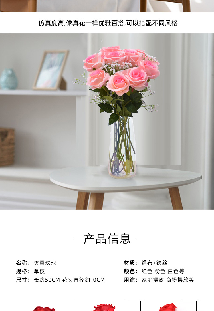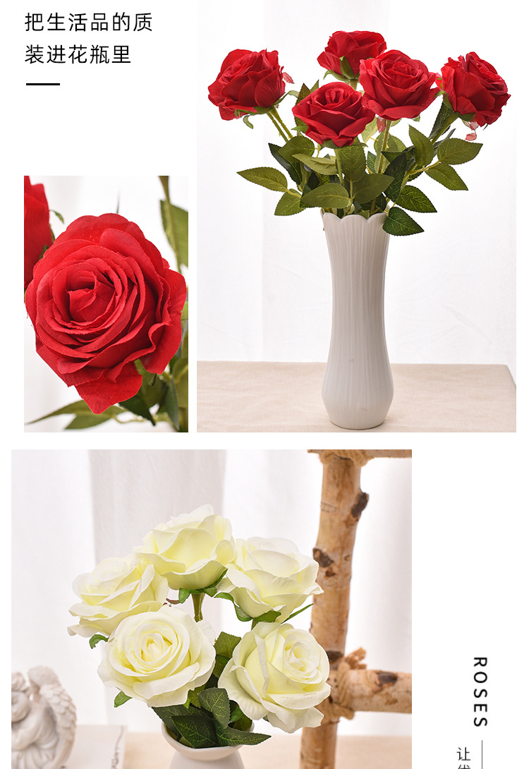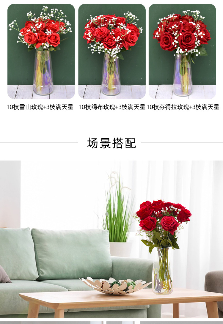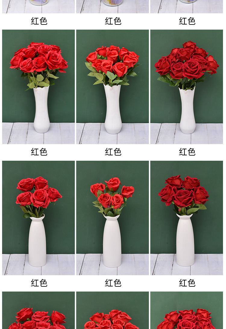 붉은 인공 꽃 장미 발렌타인 데이 플라스틱 가짜 꽃다발 홈 가구 식탁 꽃꽂이 말린 꽃 장식스토어 가기