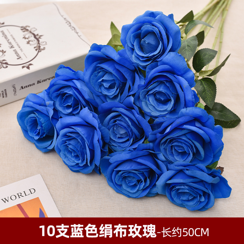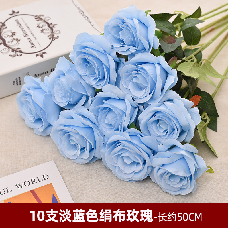 • 하늘색 실크 장미 10송이, 무료 1송이