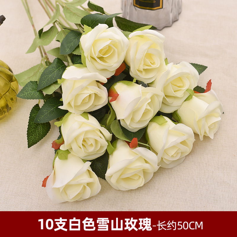 • 유백색 페데라 장미 10송이 - 소재 업그레이드, 무료 스틱 1개