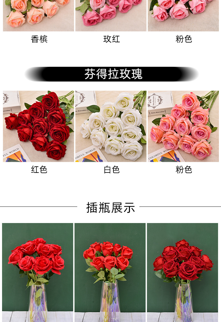 붉은 인공 꽃 장미 발렌타인 데이 플라스틱 가짜 꽃다발 홈 가구 식탁 꽃꽂이 말린 꽃 장식