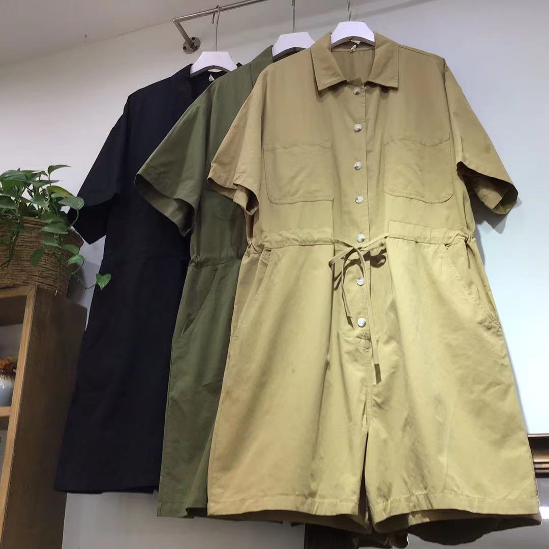 느슨한 오버볼 점프 수트 드로우 스트링 레이스 업 점프 수트 반팔 점프 수트 와이드 레그 반바지스토어 가기