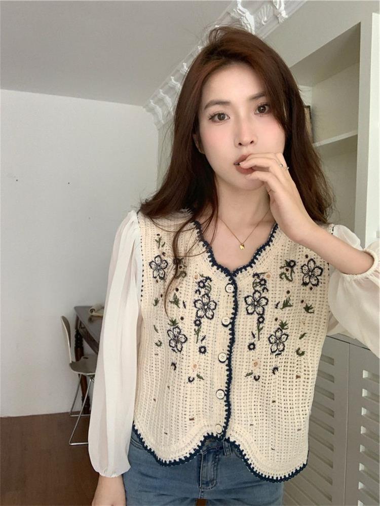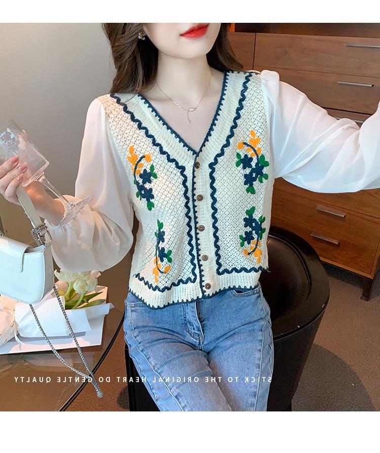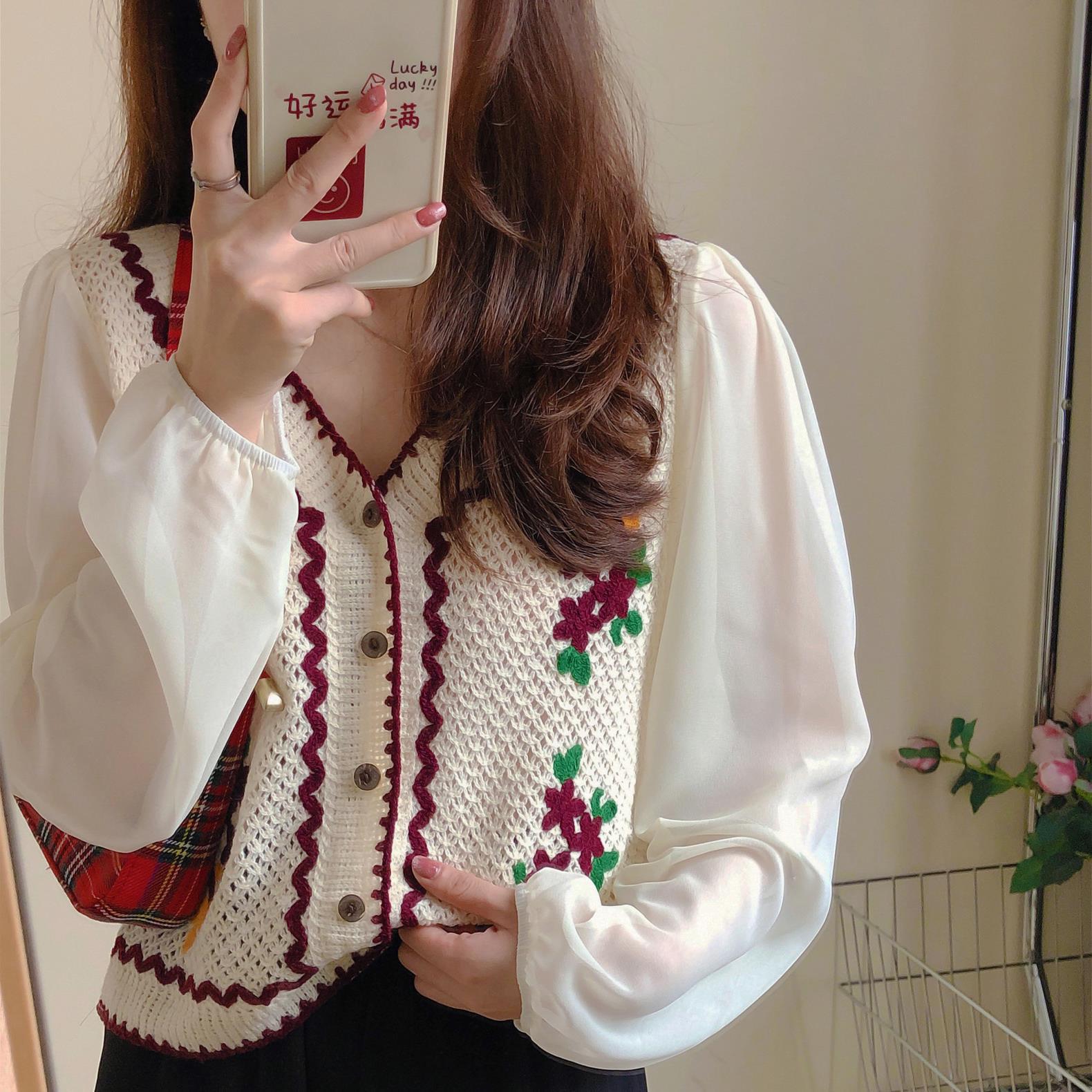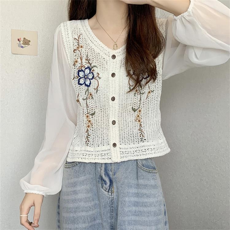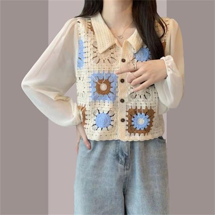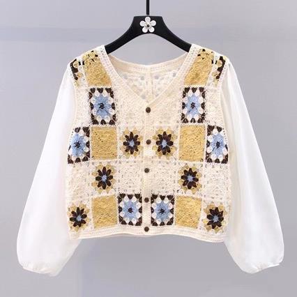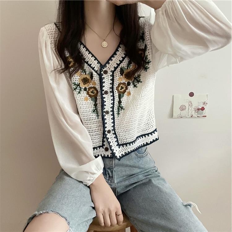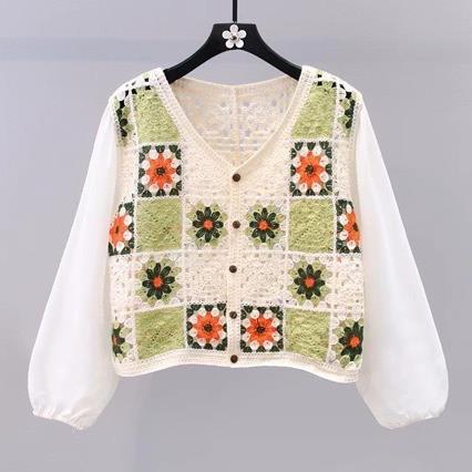 시폰 셔츠 긴팔 새 도착 할로우 니트 스웨터 훅 할로우 자수 여성용 카디건 코트 민족 스타일스토어 가기