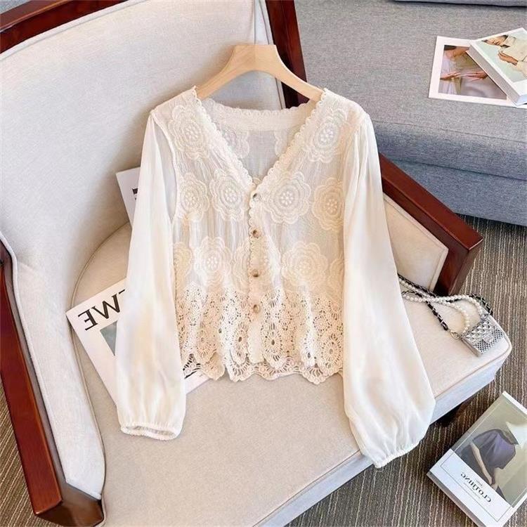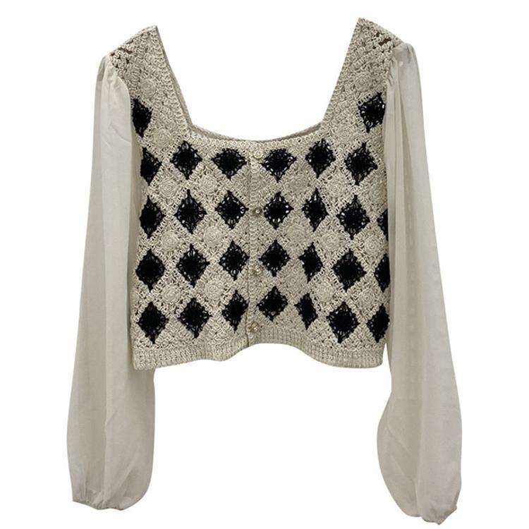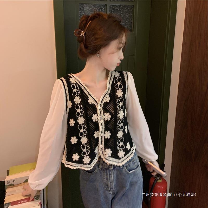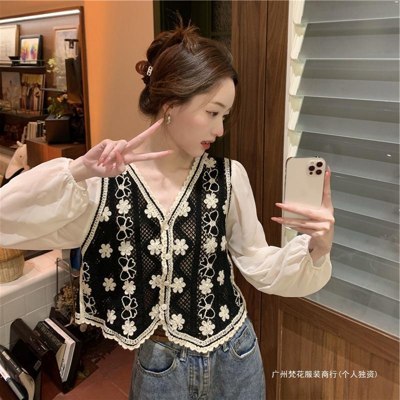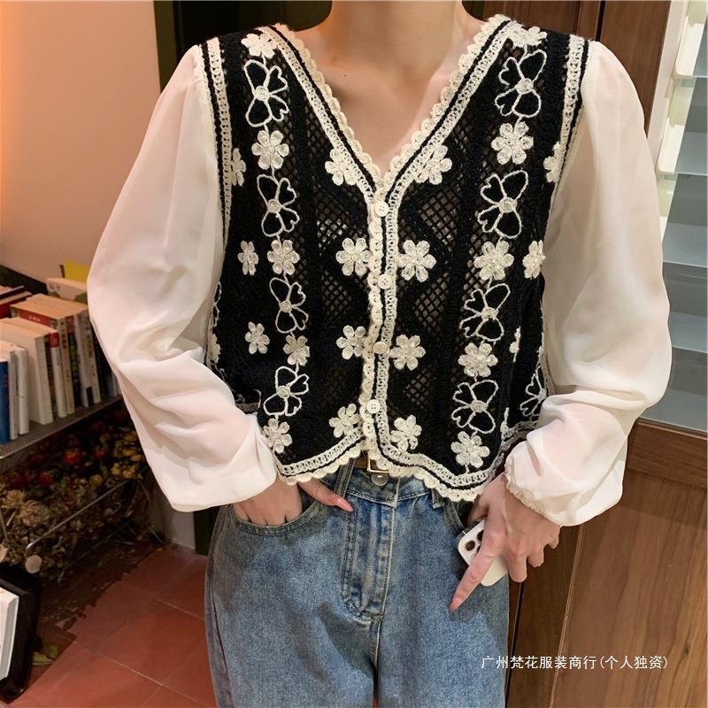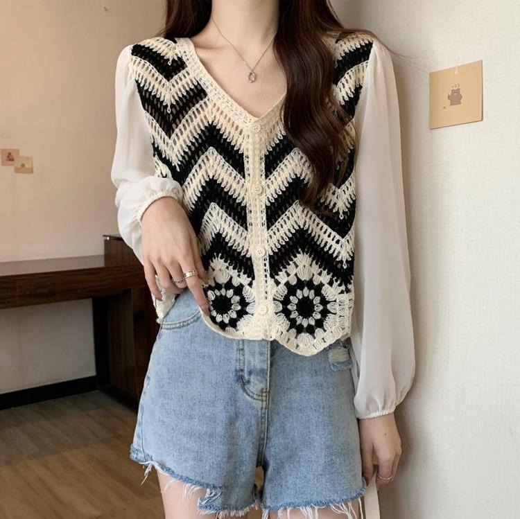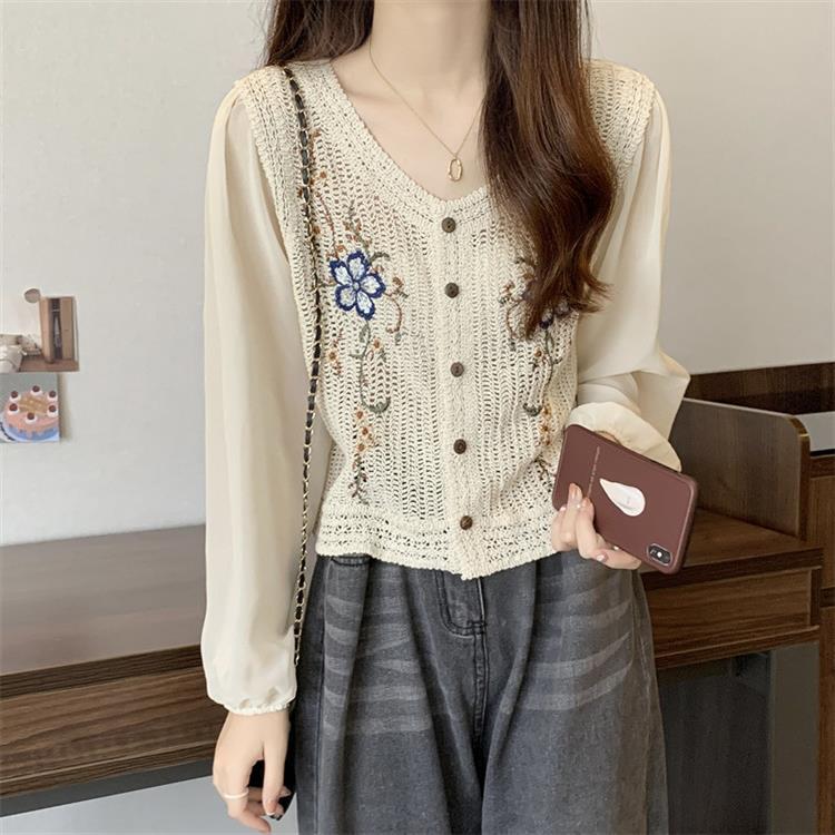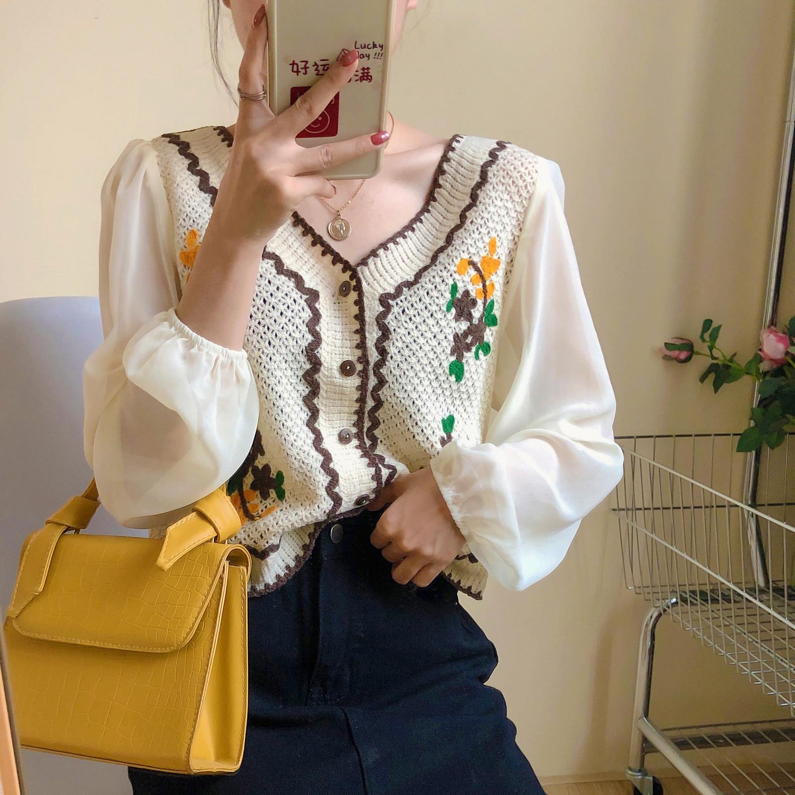 시폰 셔츠 긴팔 새 도착 할로우 니트 스웨터 훅 할로우 자수 여성용 카디건 코트 민족 스타일스토어 가기