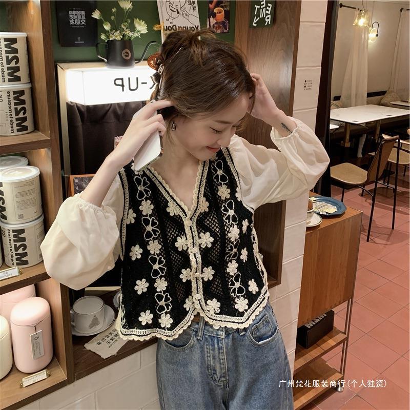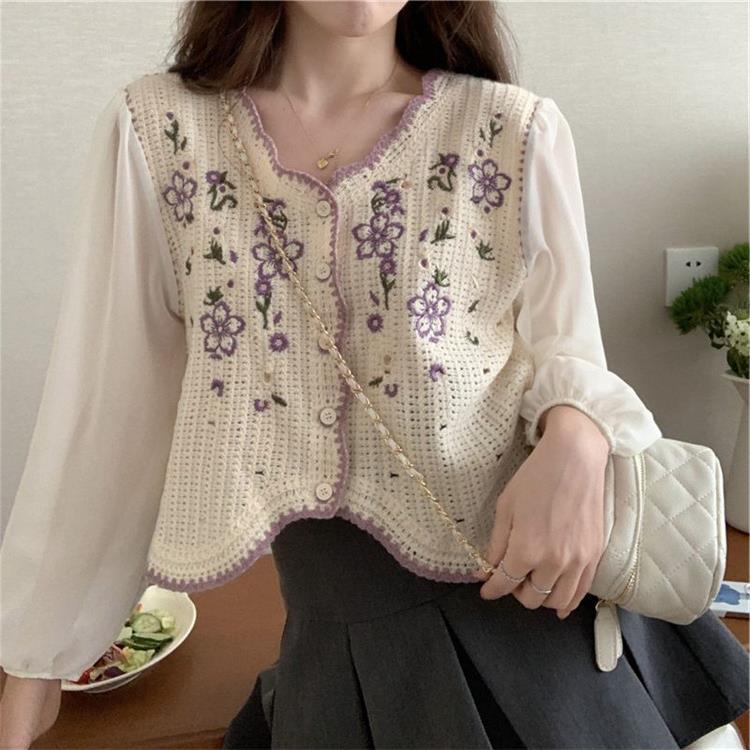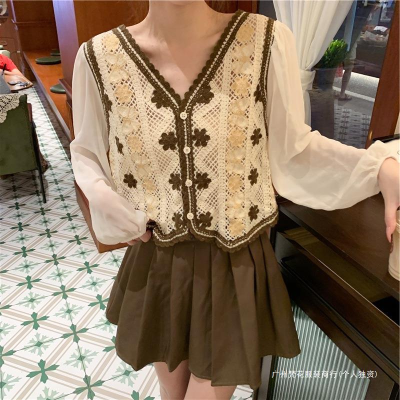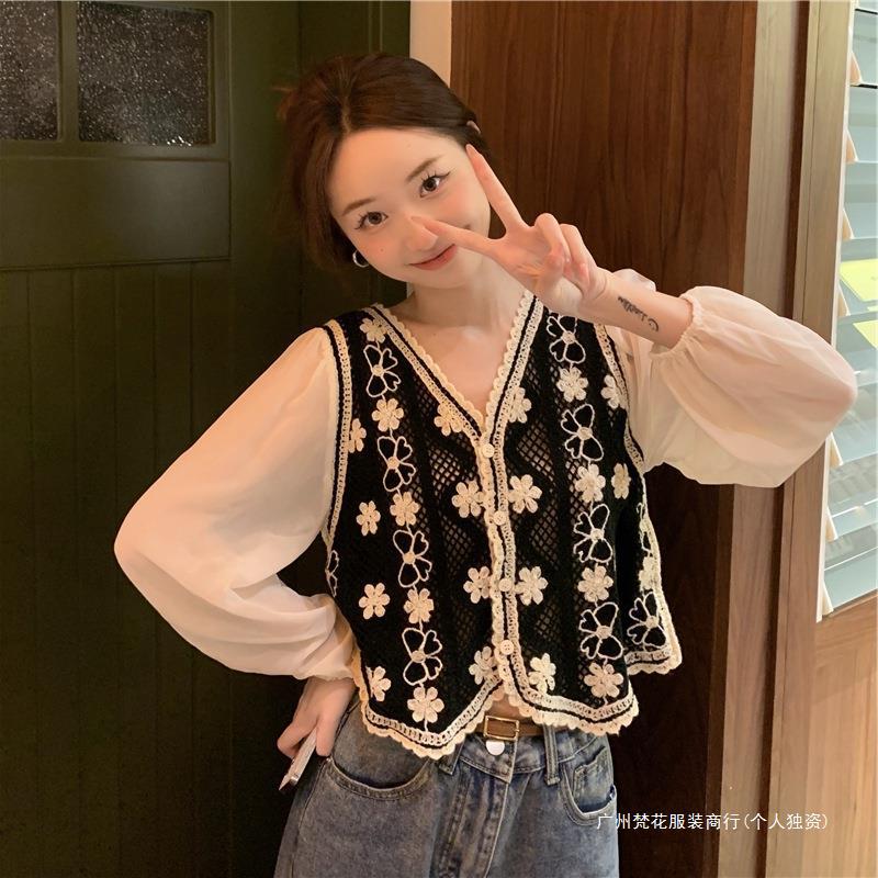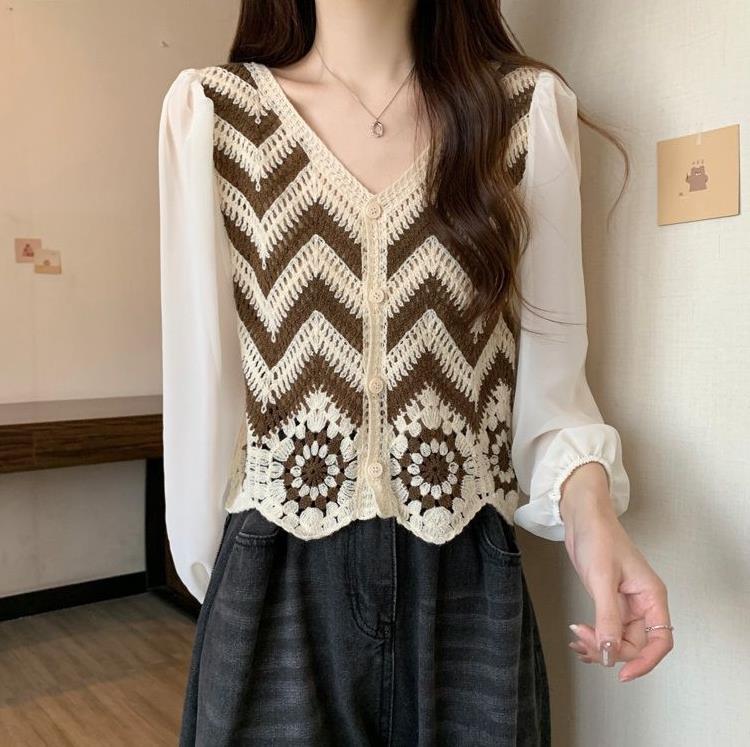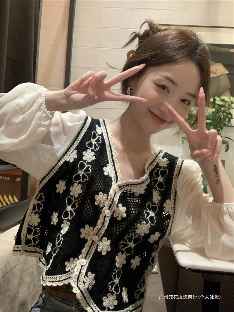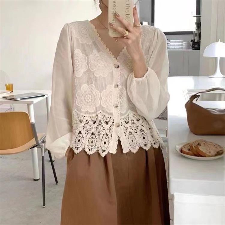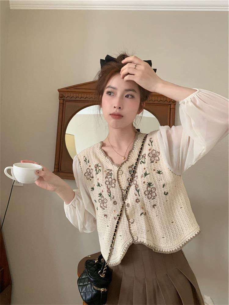 시폰 셔츠 긴팔 새 도착 할로우 니트 스웨터 훅 할로우 자수 여성용 카디건 코트 민족 스타일스토어 가기