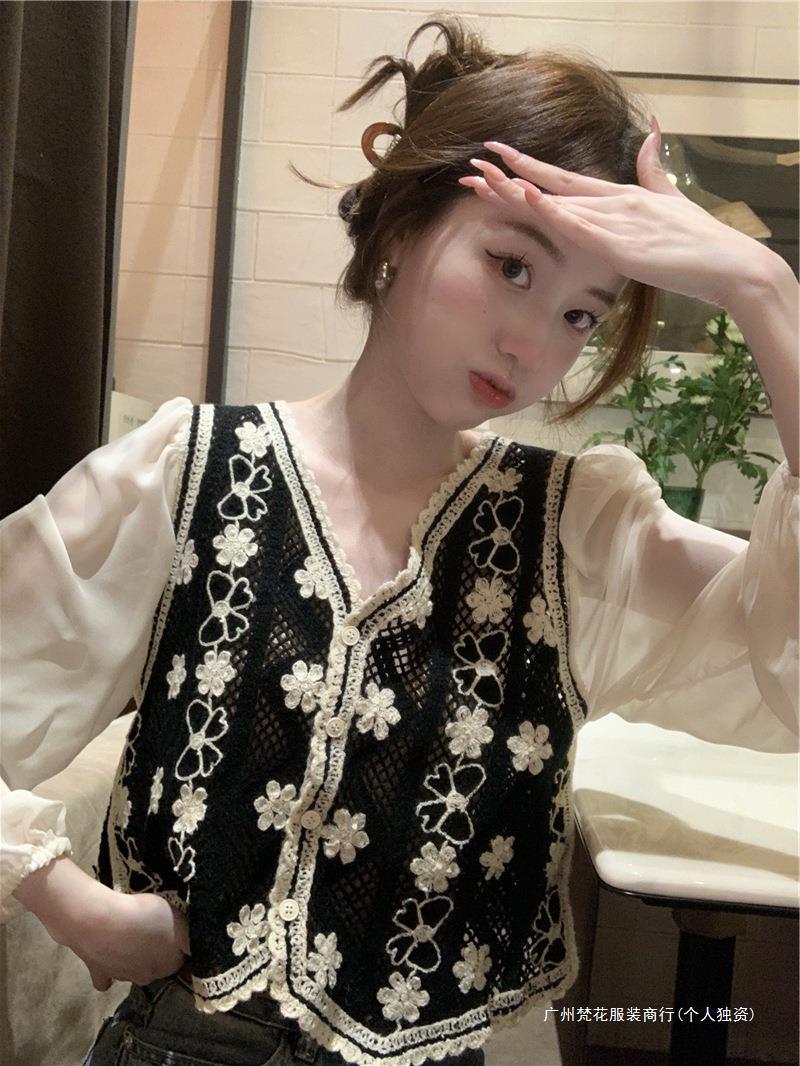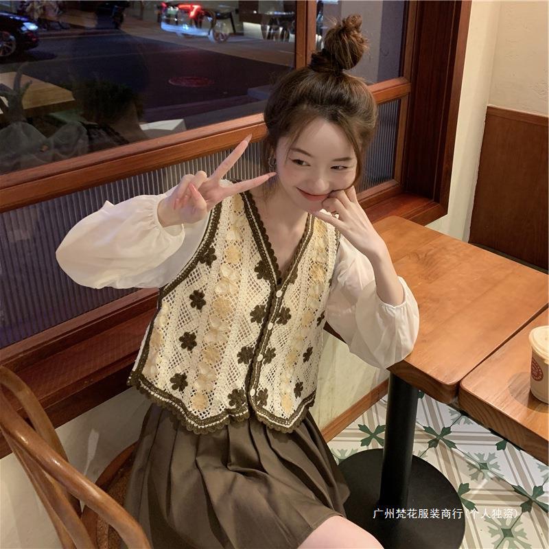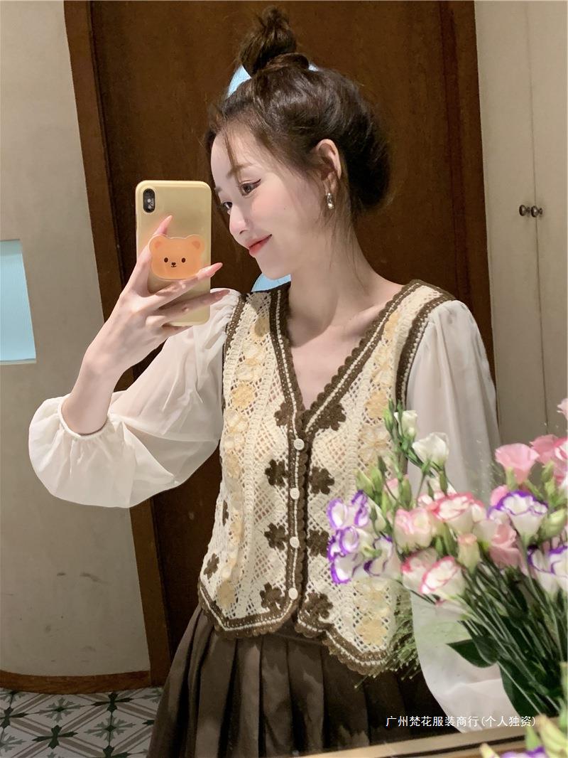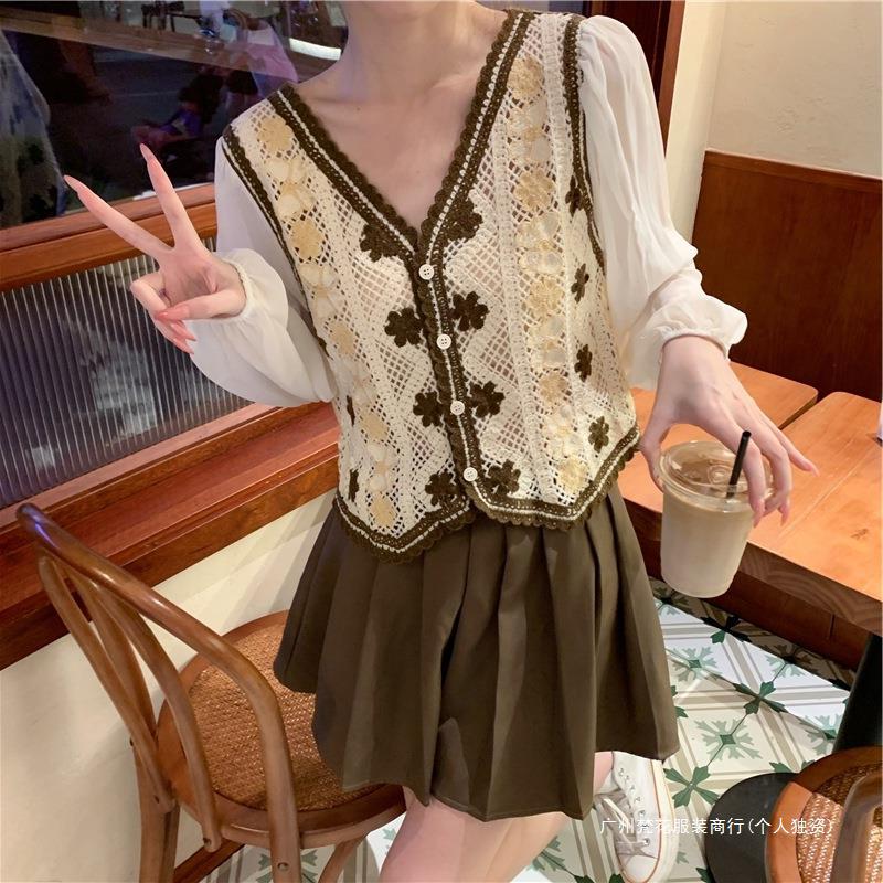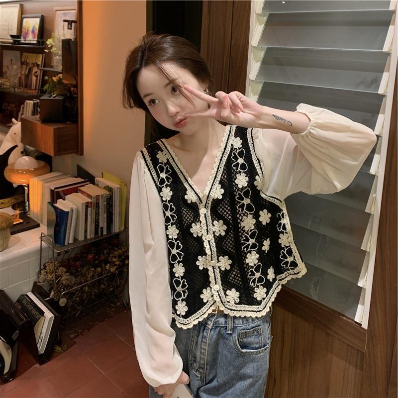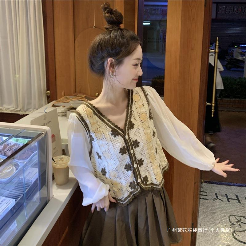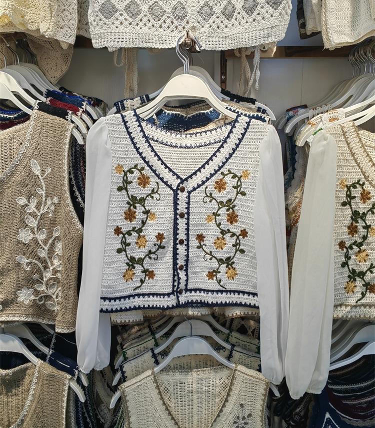 시폰 셔츠 긴팔 새 도착 할로우 니트 스웨터 훅 할로우 자수 여성용 카디건 코트 민족 스타일스토어 가기