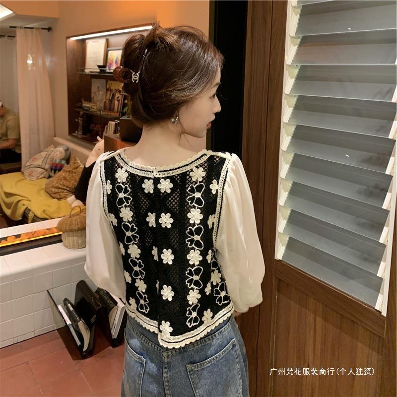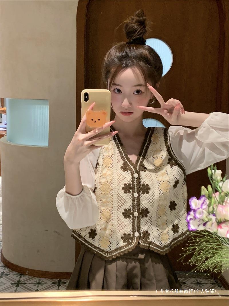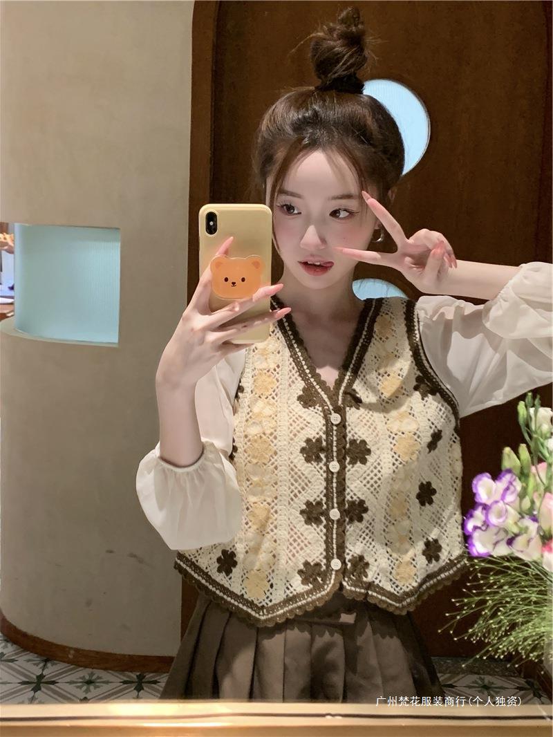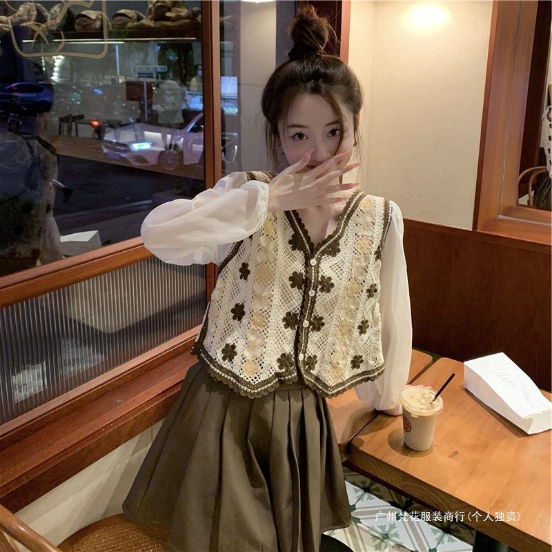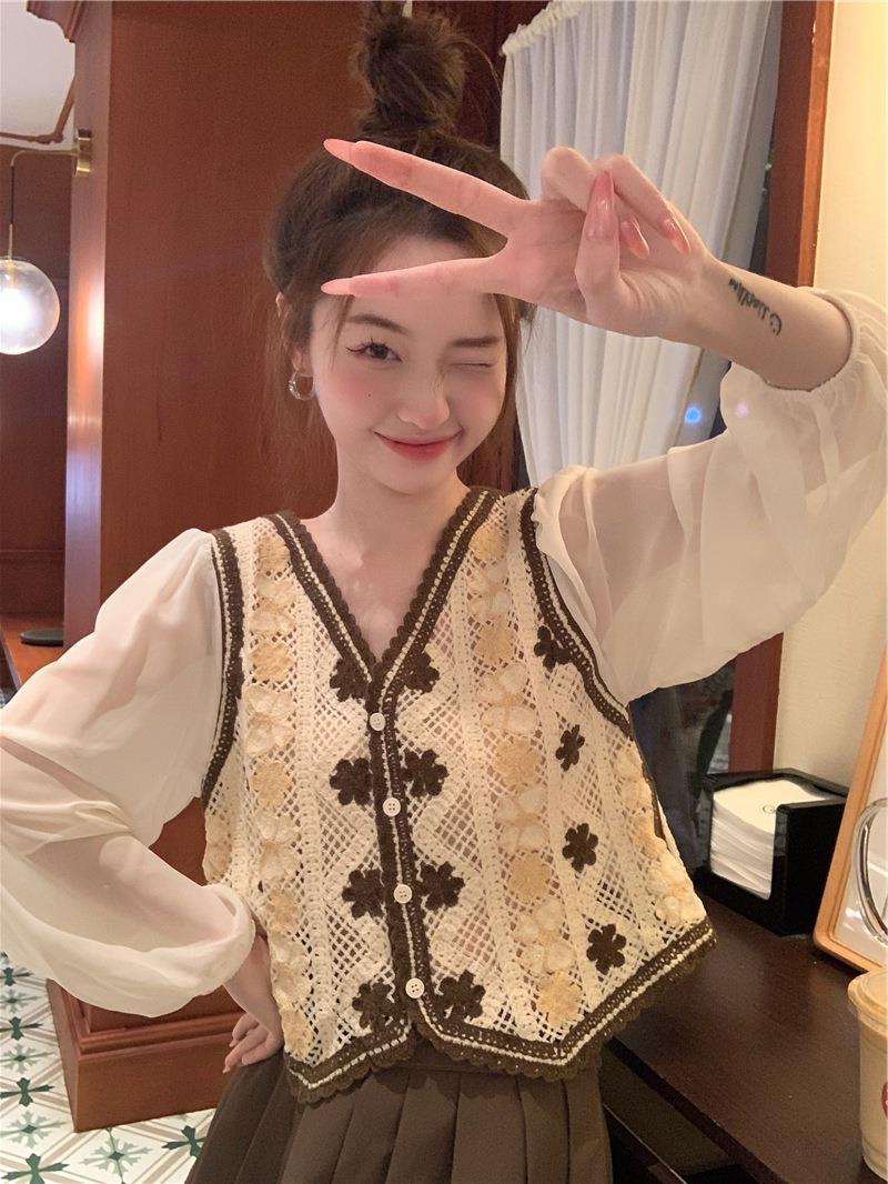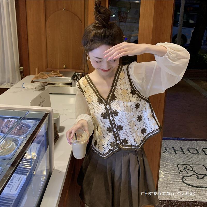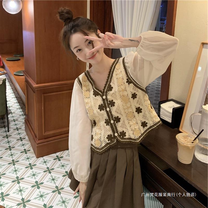 시폰 셔츠 긴팔 새 도착 할로우 니트 스웨터 훅 할로우 자수 여성용 카디건 코트 민족 스타일스토어 가기