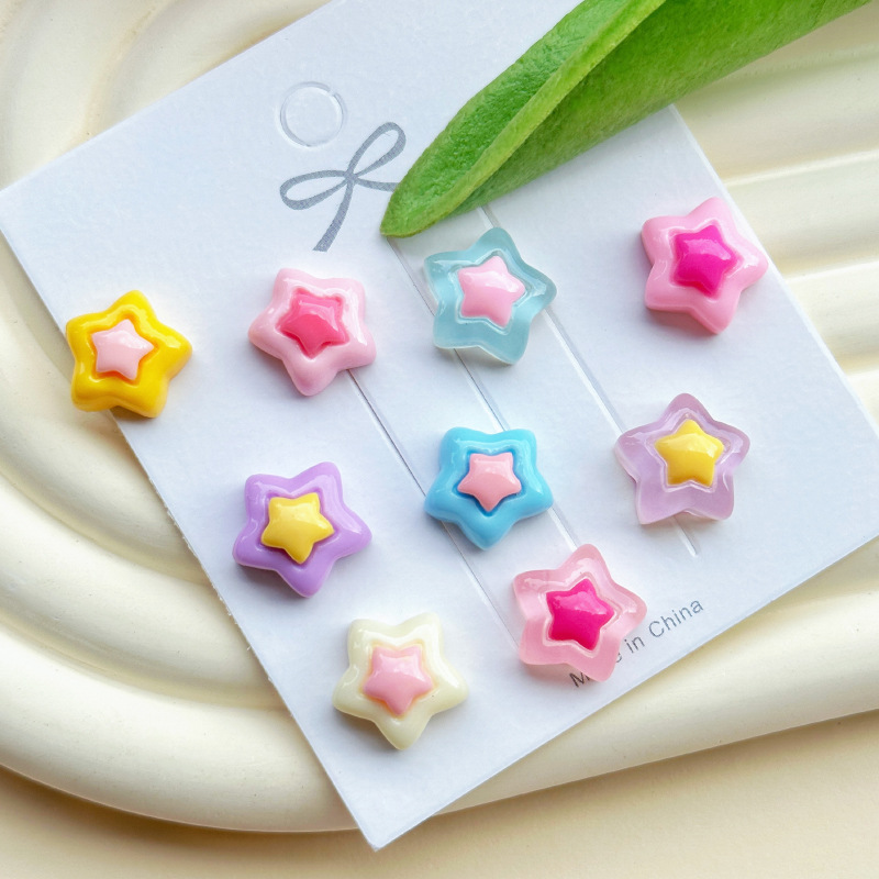 투명 컬러 밝은 스타 시리즈 수지 DIY 액세서리 휴대 전화 케이스 구멍 신발 패치 헤어핀 헤어 액세서리 소재