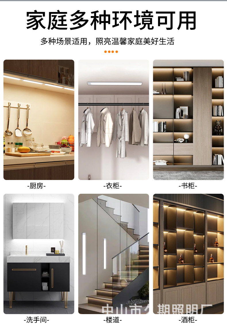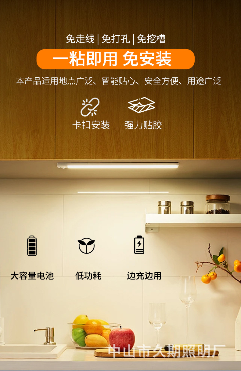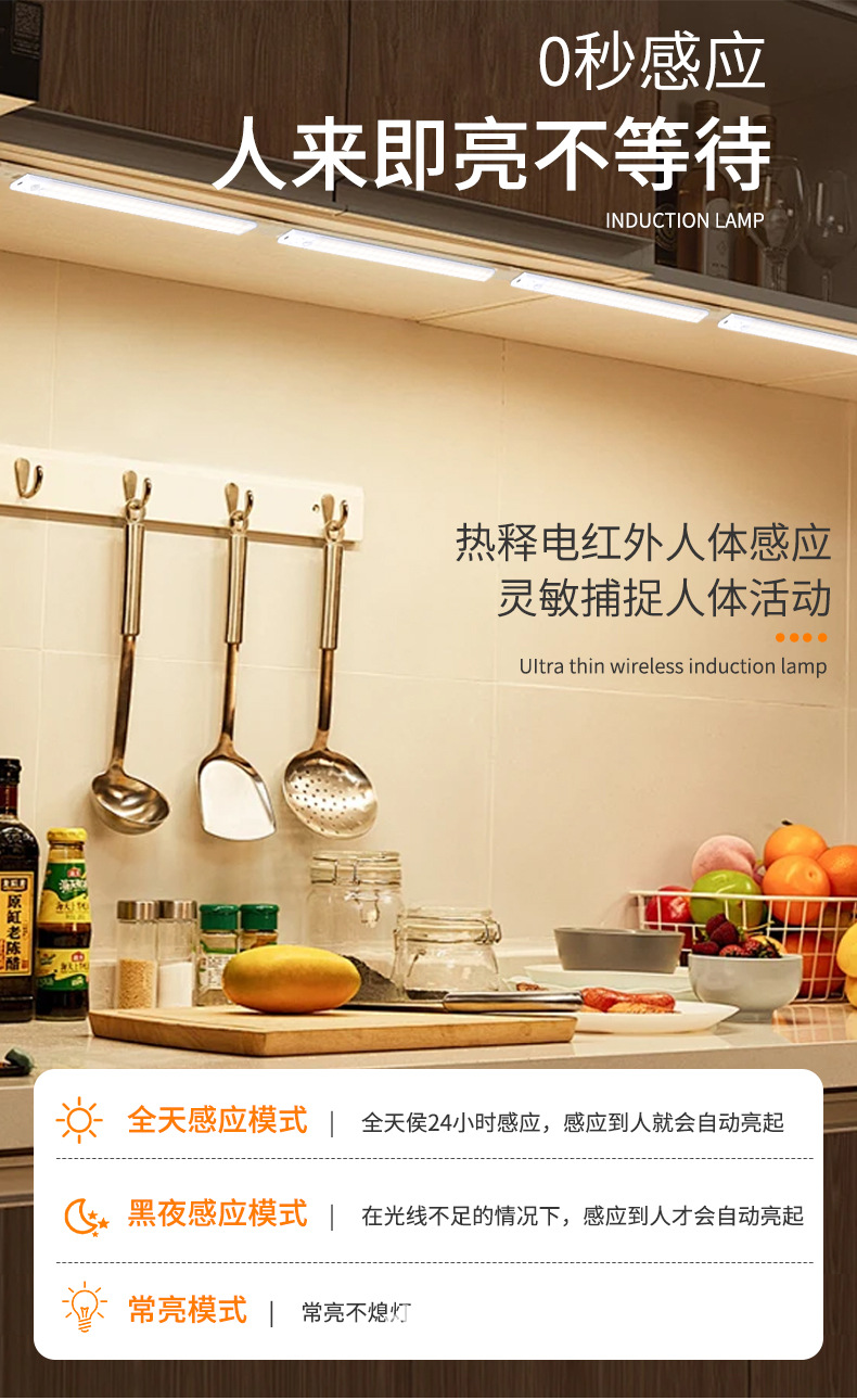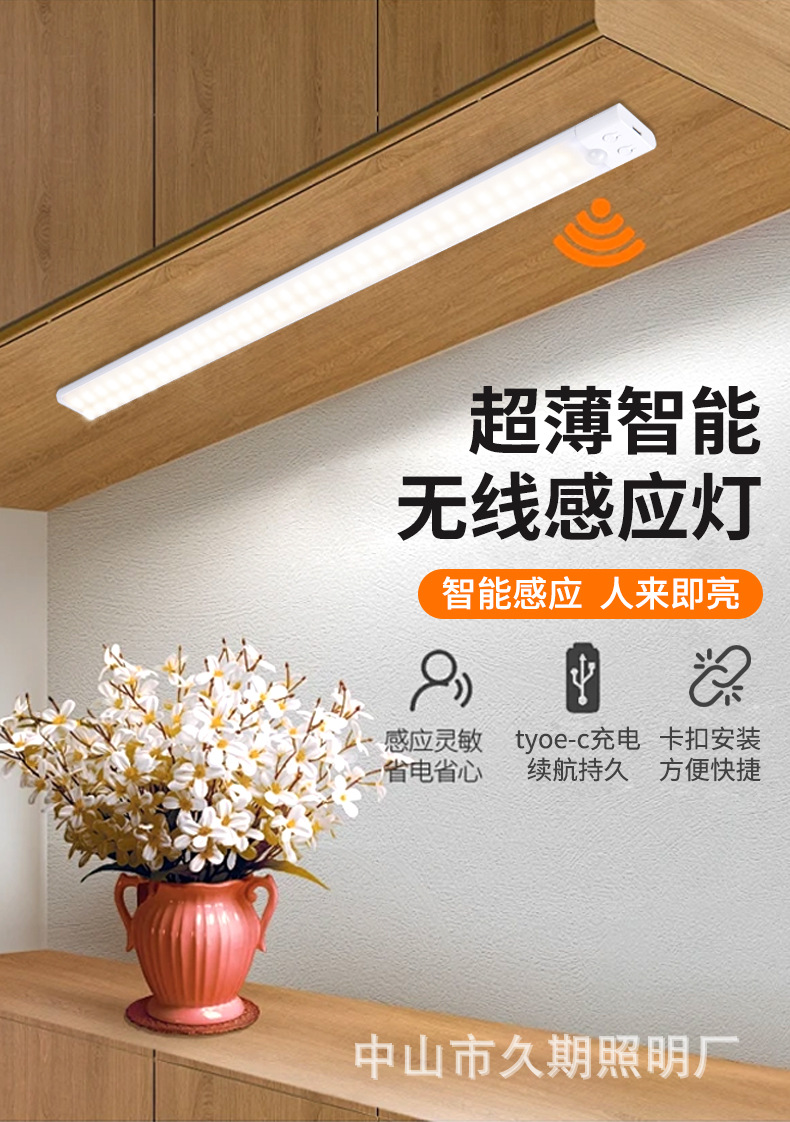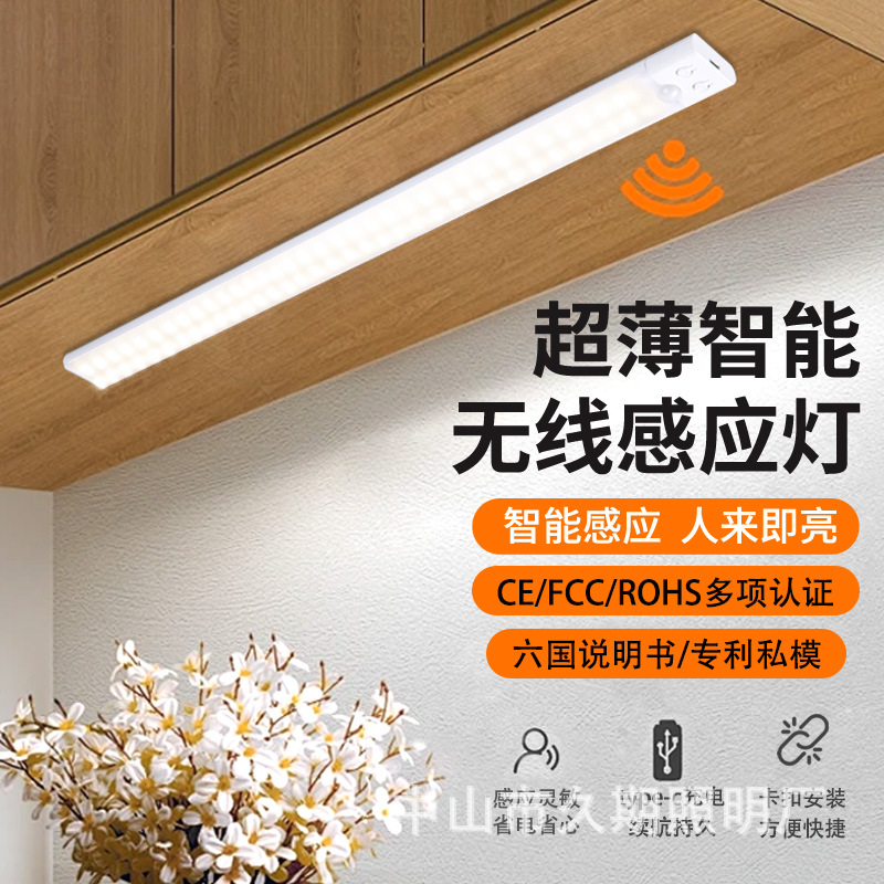 울트라 얇은 3 색 인체 유도 램프 야간 조명 스마트 버클 자체 접착 옷장 램프 충전 와인 캐비닛 램프 캐비닛 조명 바스토어 가기