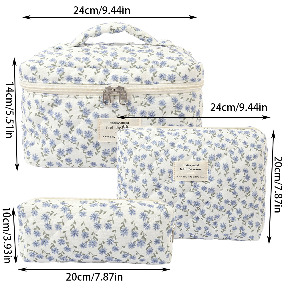 국경 슈퍼 새로운 면 화장품 가방 틈새 휴대용 세탁기 저장 가방 꽃 내부 귀여운 퀼트