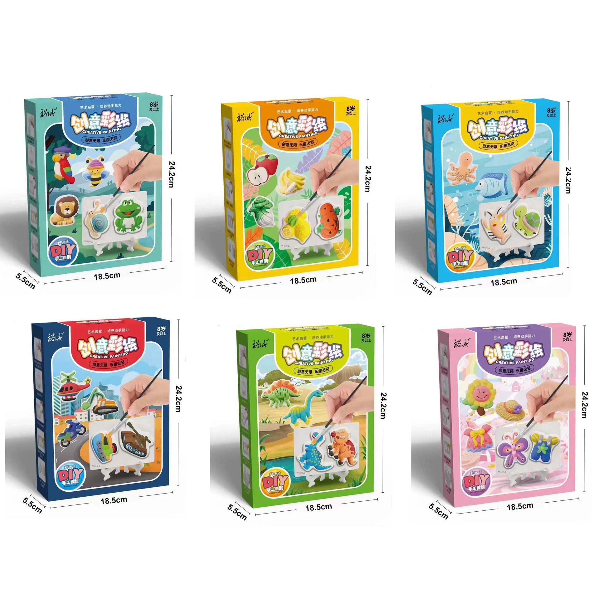 만화 동물 생물학 DIY 석고 그림 창조적 인 그림 세트 어린이 컬러 낙서 냉장고 스티커 창조적 인 장난감스토어 가기