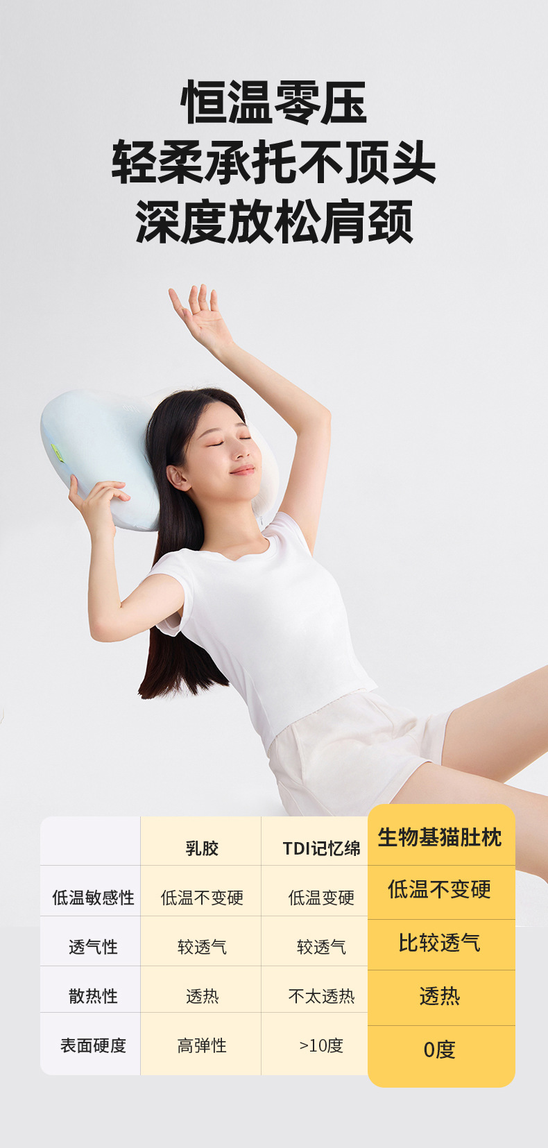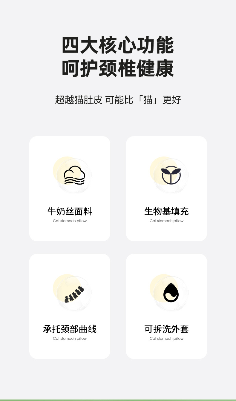 카테고리 A 고양이 배 베개, 목 보호대, 메모리폼 베개 코어, 메이크업 에그 베개 코어, 이너 슬리브가 포함된 수면 베개, 1팩