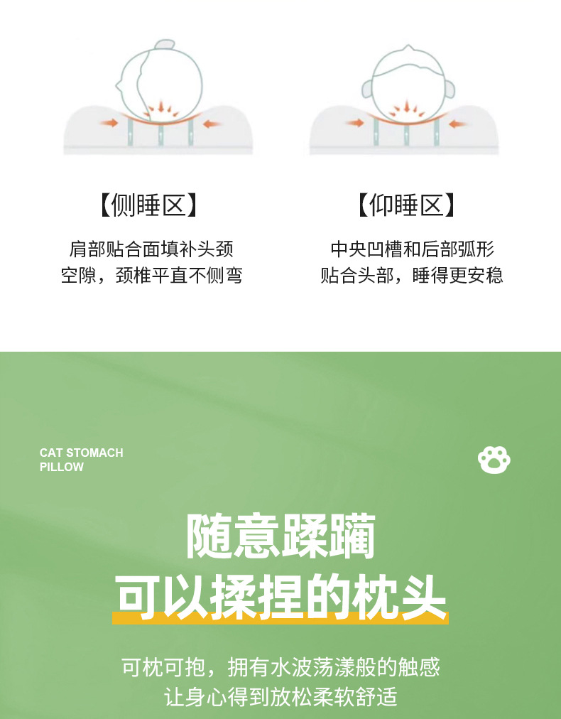 카테고리 A 고양이 배 베개, 목 보호대, 메모리폼 베개 코어, 메이크업 에그 베개 코어, 이너 슬리브가 포함된 수면 베개, 1팩스토어 가기