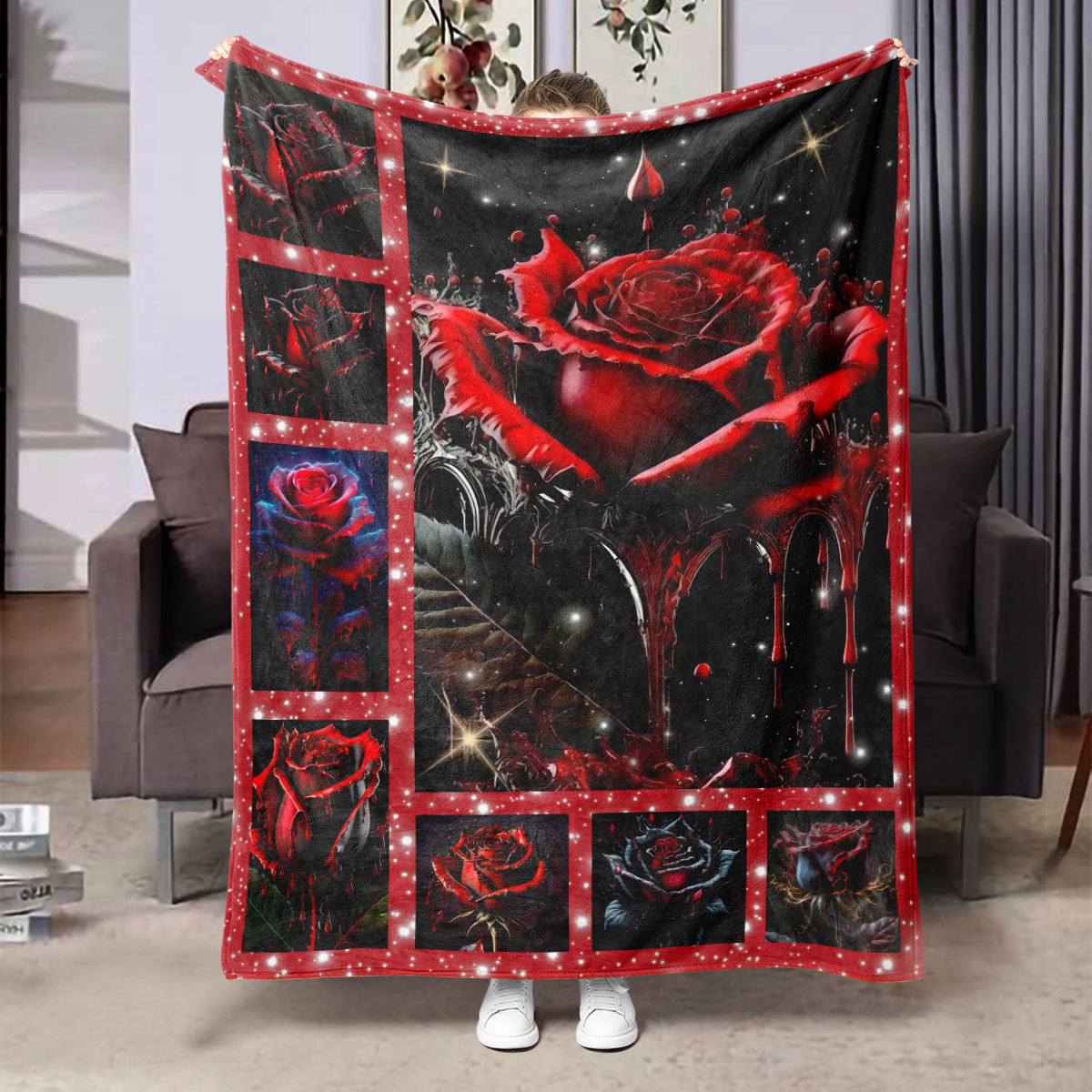 공장 직접 공급 플란넬 혈액 장미 인쇄 담요 소파 에어컨 담요 낮잠 담요