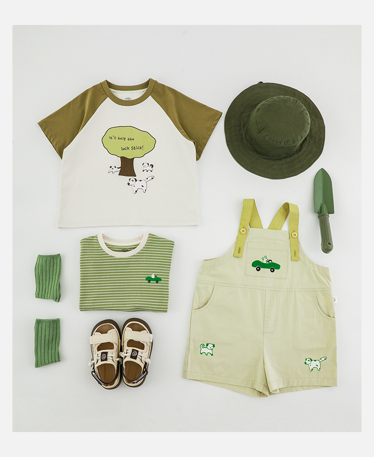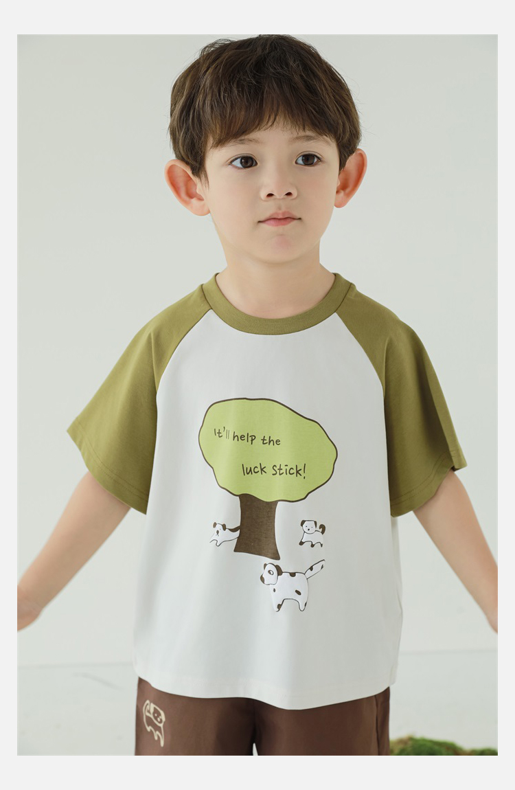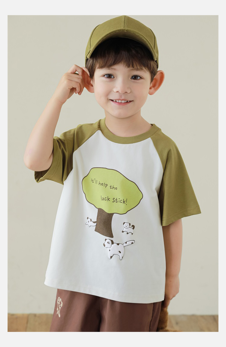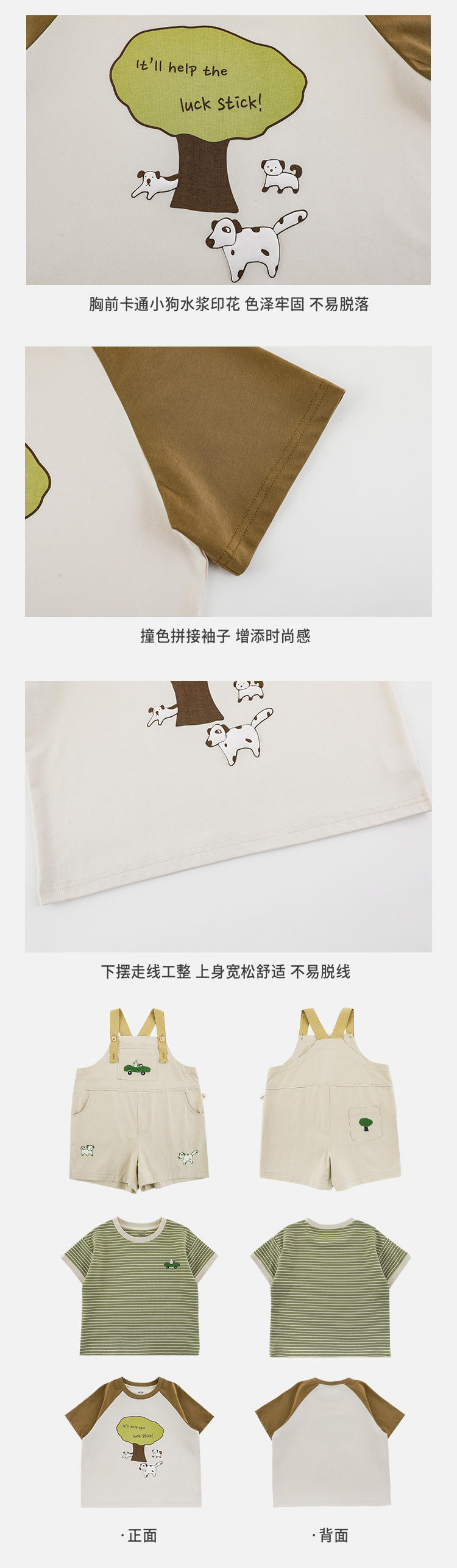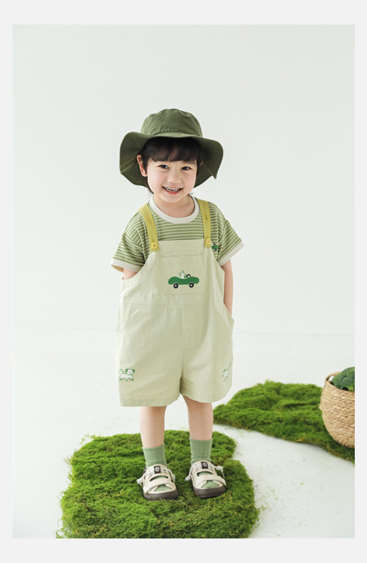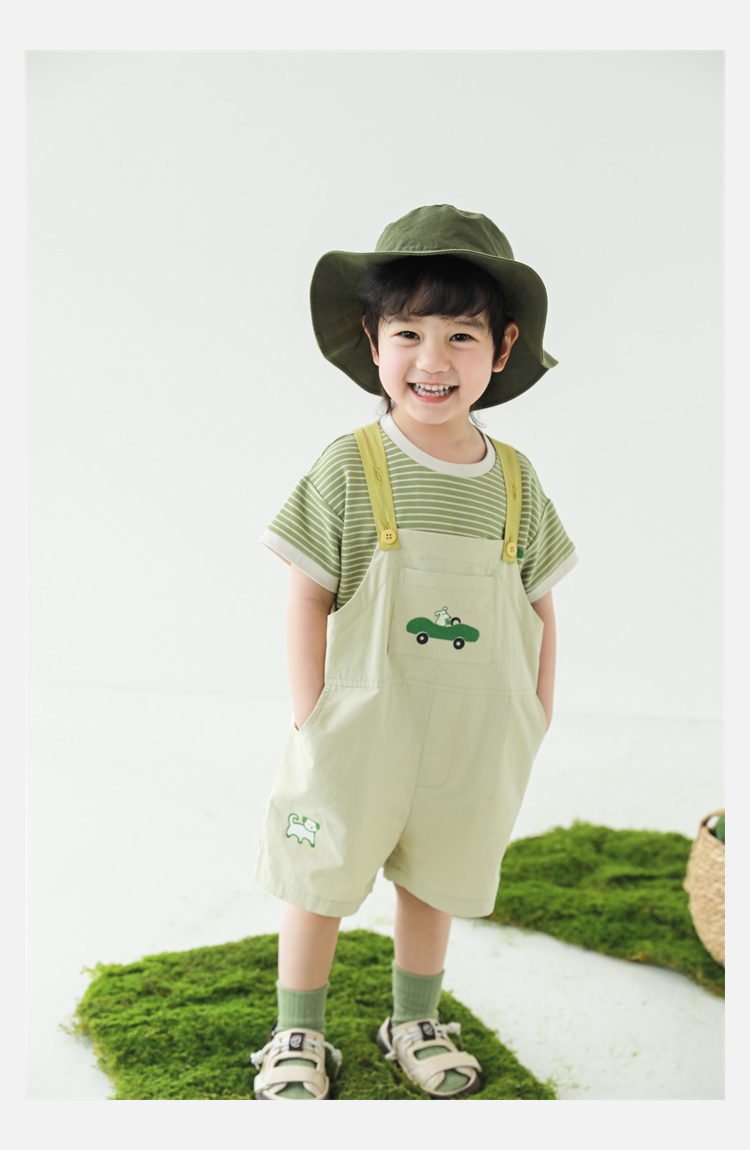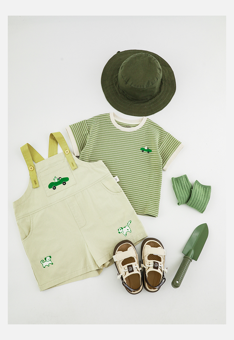 Wuri Boys의 2025 년 여름 새 빛 줄무늬 반팔 티셔츠 느슨한 어린이 유행 작업복스토어 가기
