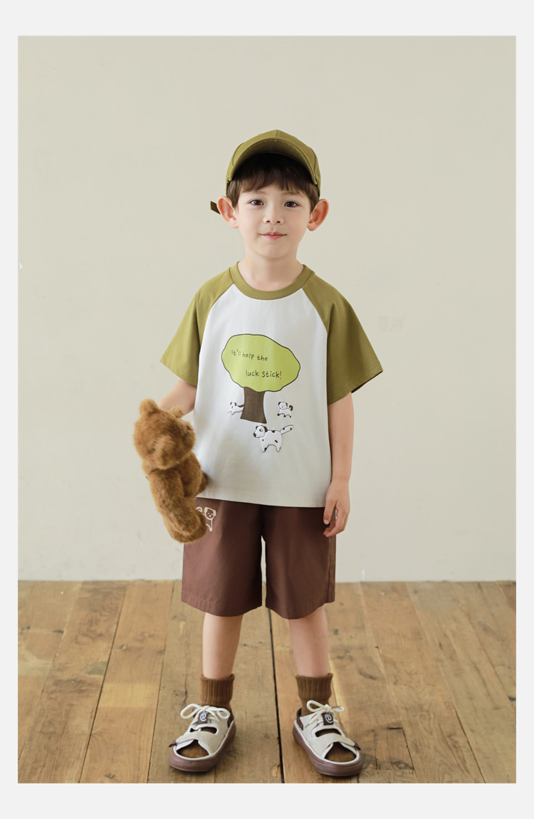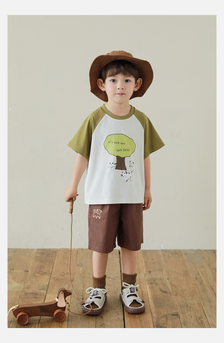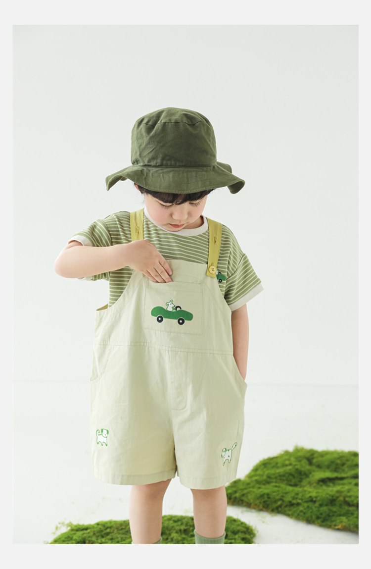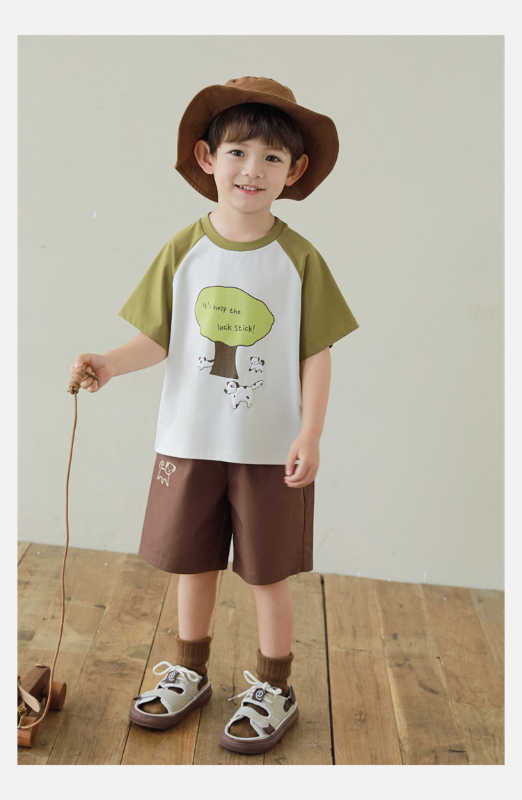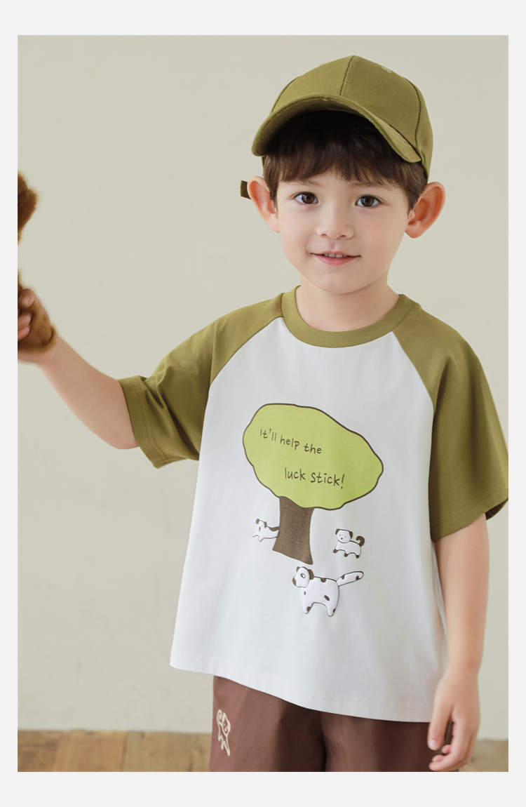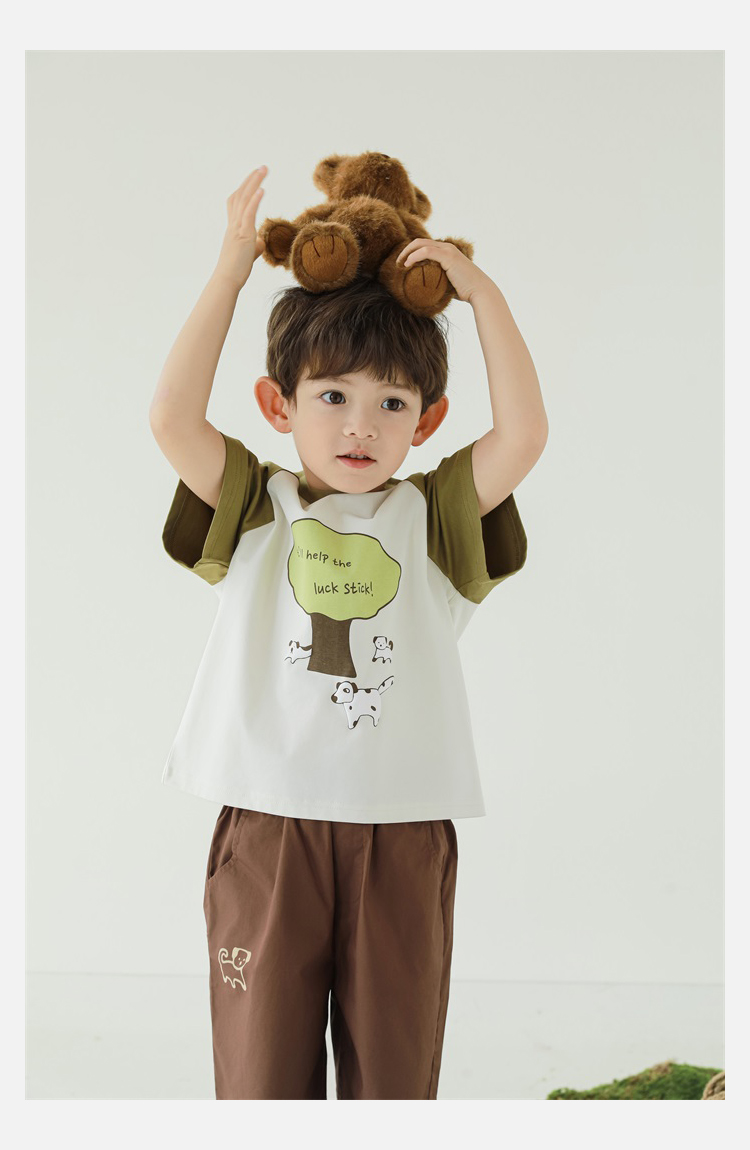 Wuri Boys의 2025 년 여름 새 빛 줄무늬 반팔 티셔츠 느슨한 어린이 유행 작업복스토어 가기