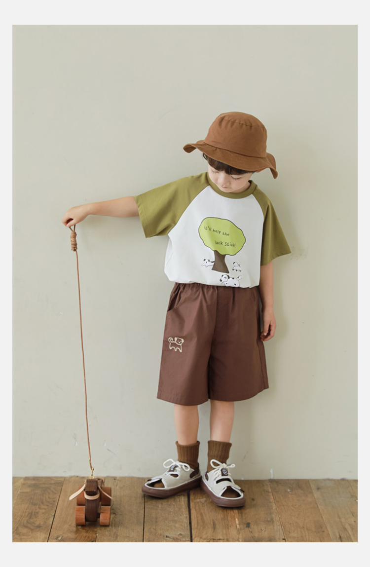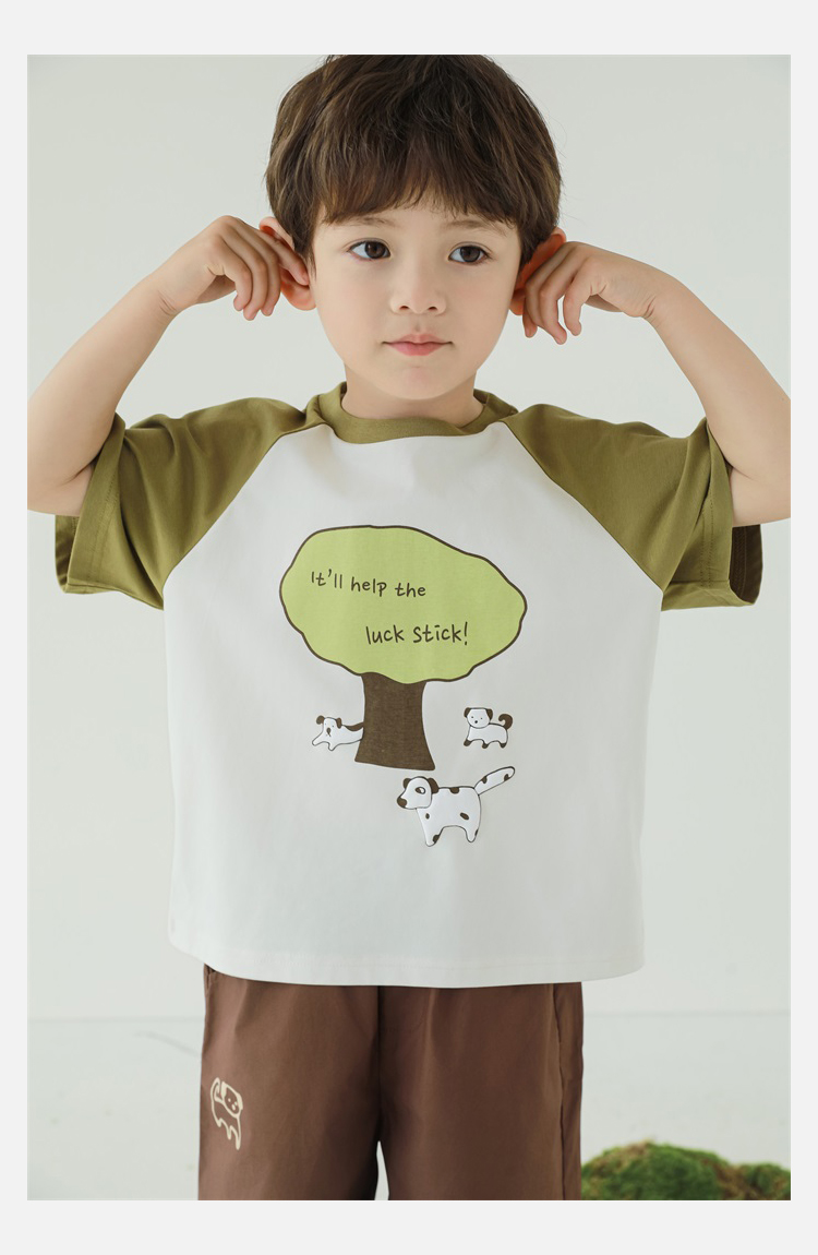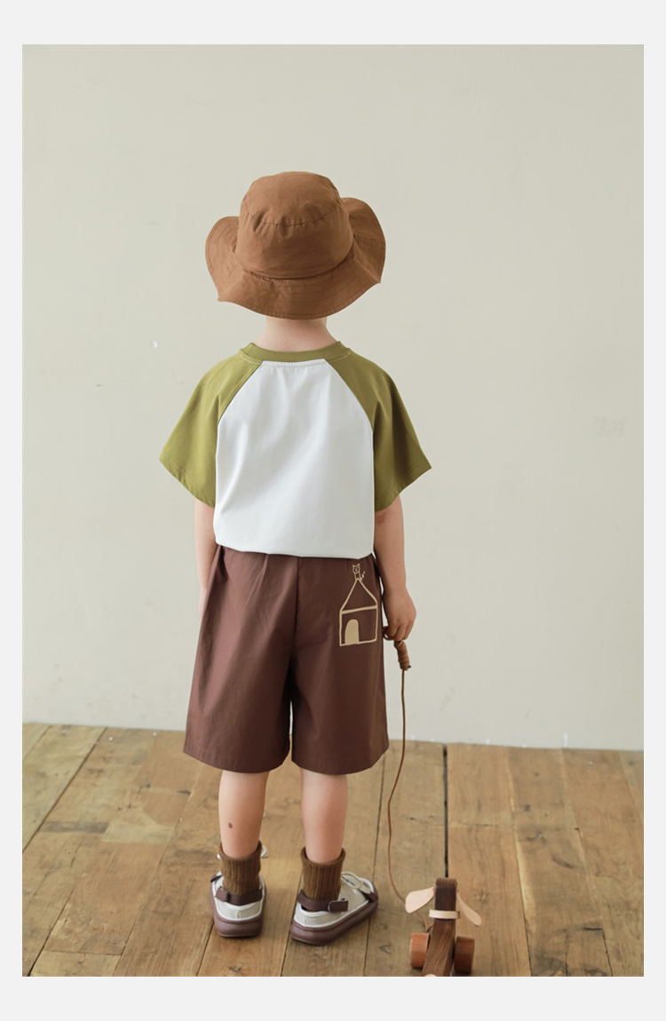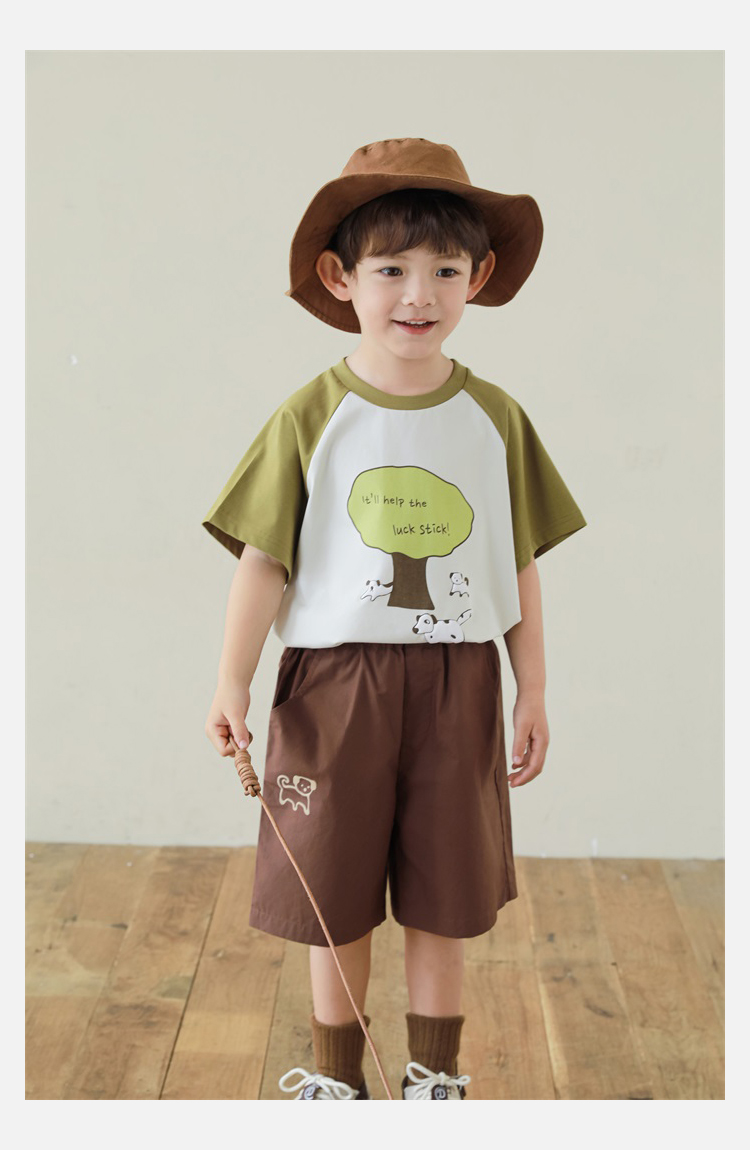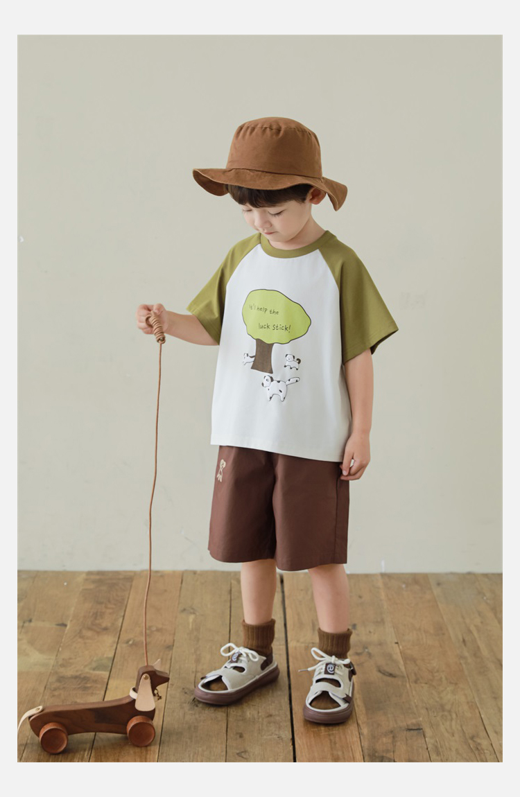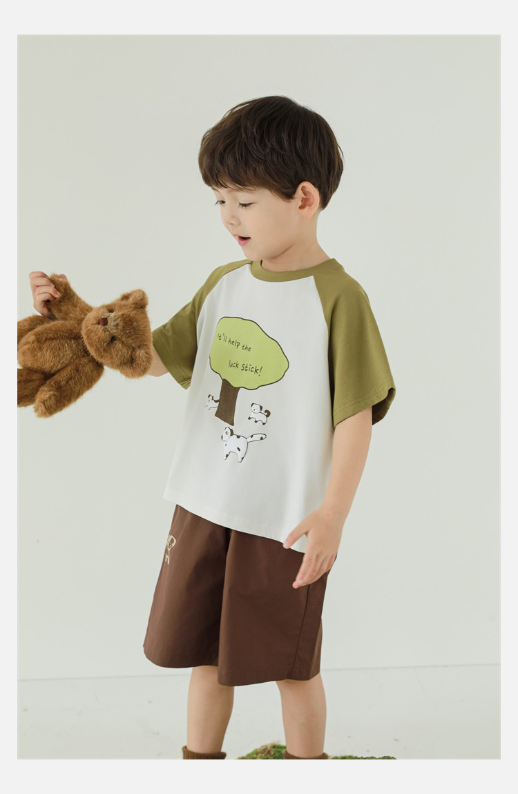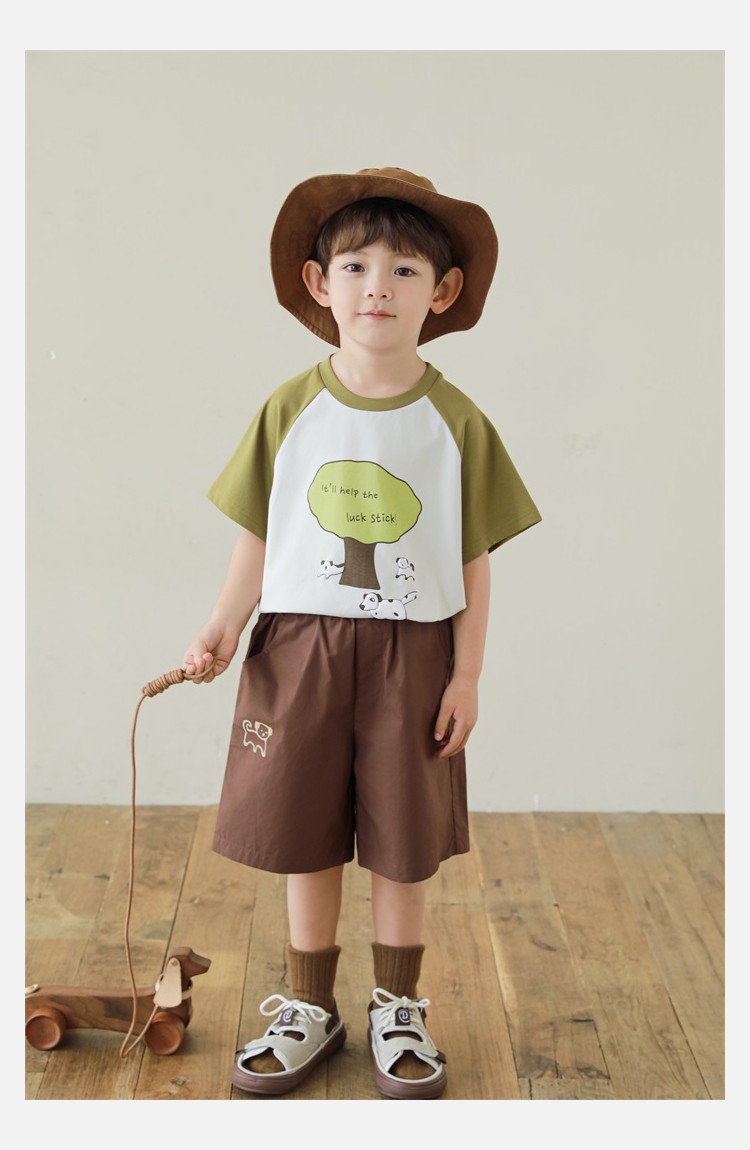 Wuri Boys의 2025 년 여름 새 빛 줄무늬 반팔 티셔츠 느슨한 어린이 유행 작업복스토어 가기