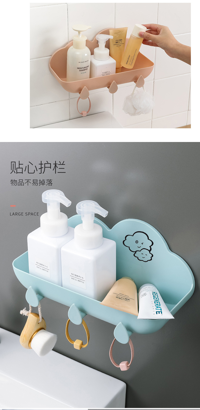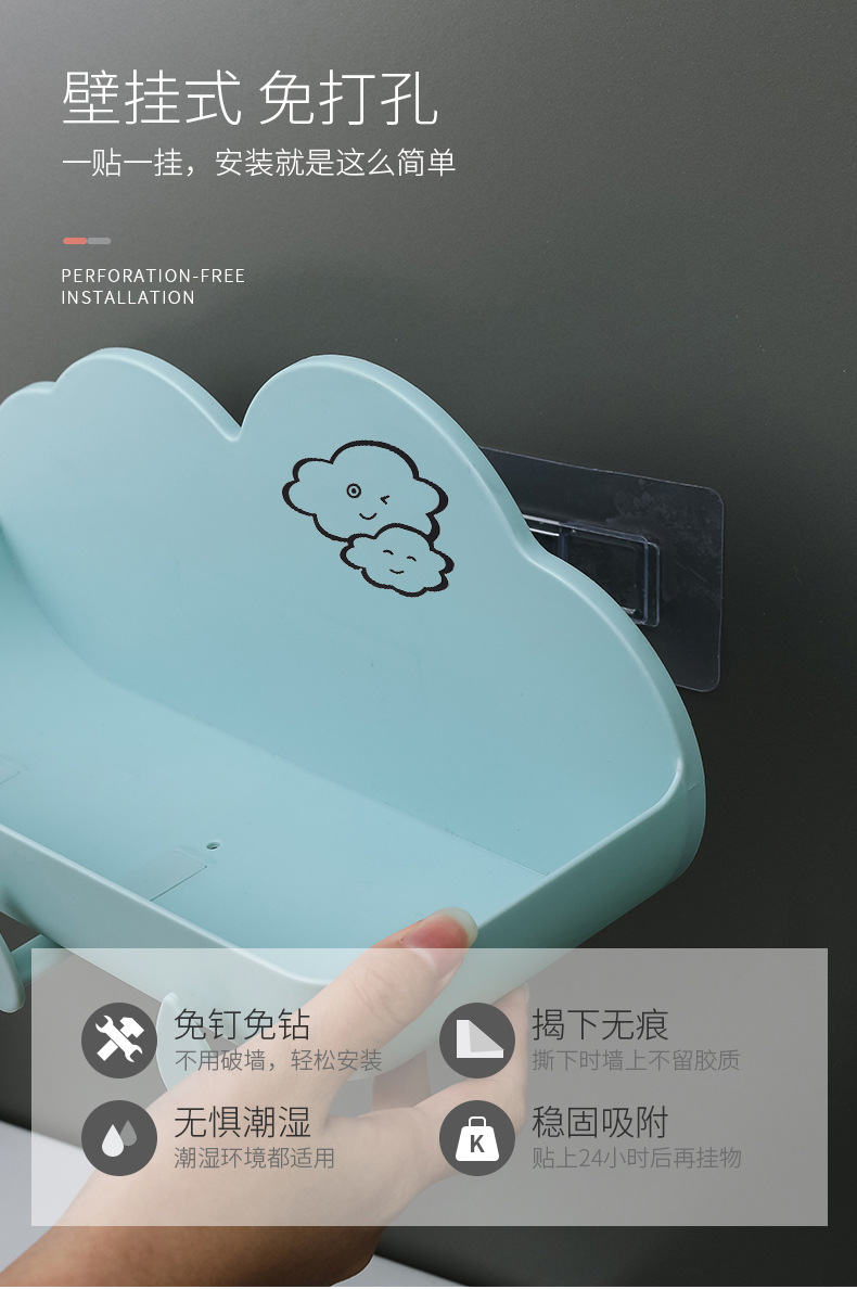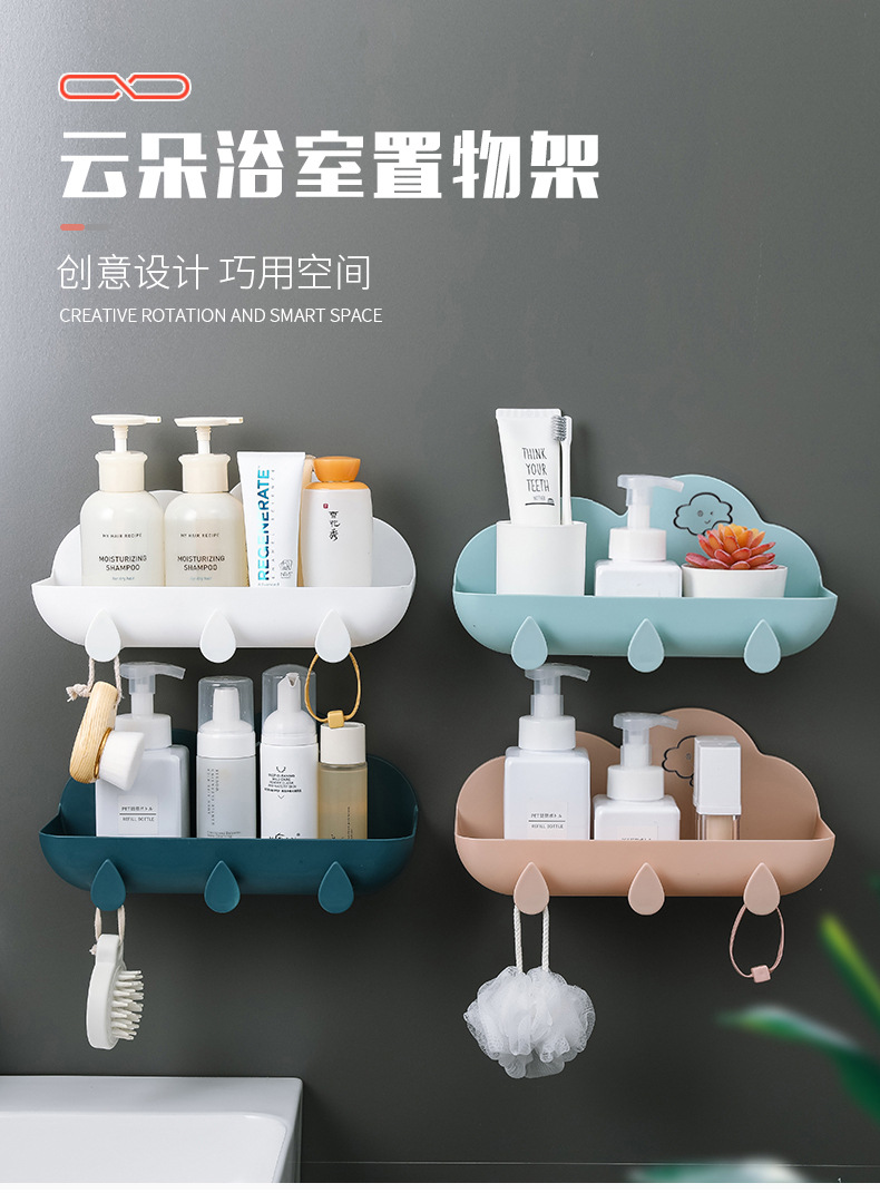 새로운 펀치없는 스토리지 랙 크리에이티브 클라우드 스토리지 랙 가정용 거실 욕실 벽걸이 형 욕실 스토리지 랙