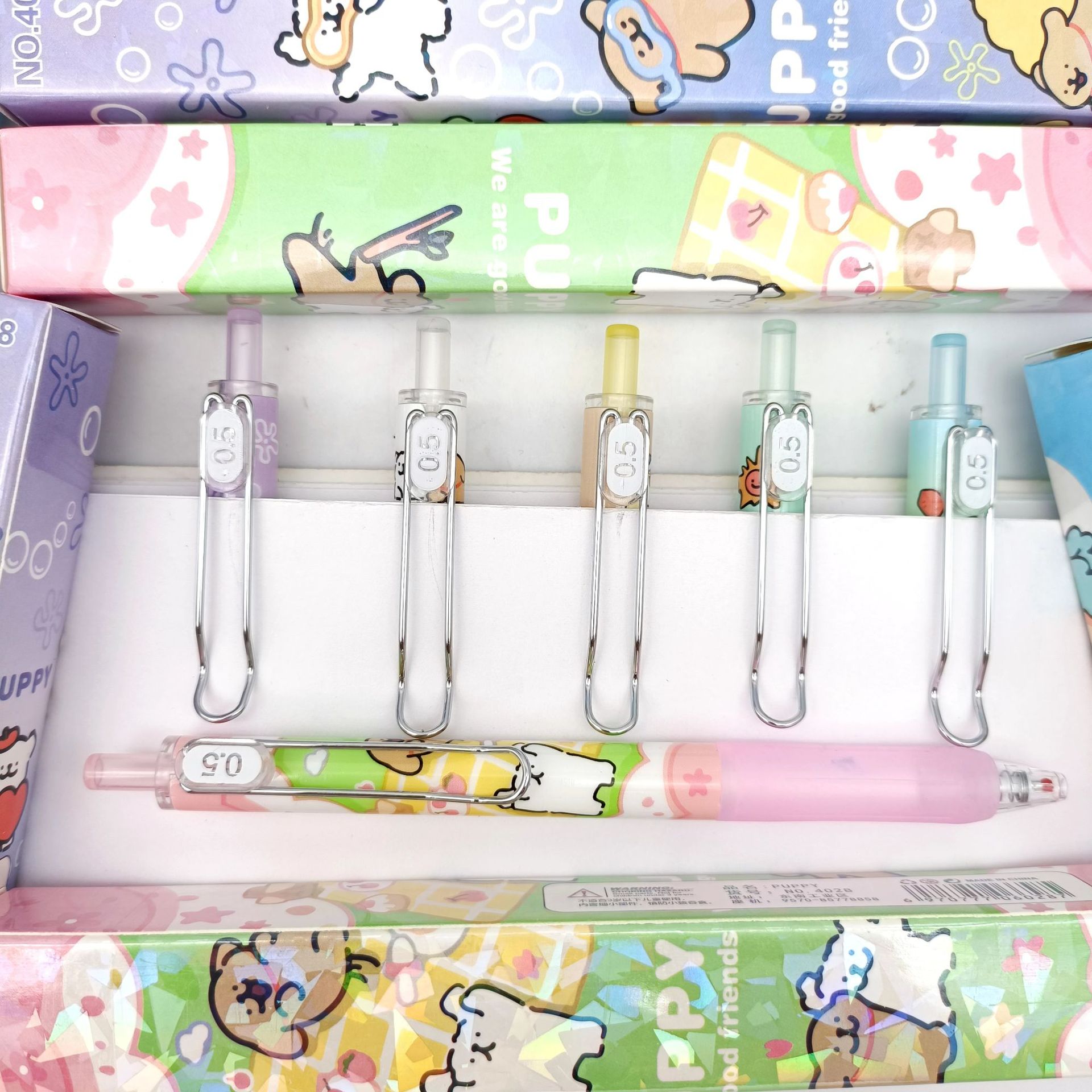 창조적 인 높은 색상 가치 라인 강아지 4028 블라인드 박스 펜 학생 쓰기 ST 헤드 초 드라이 프레스 젤 펜 도매