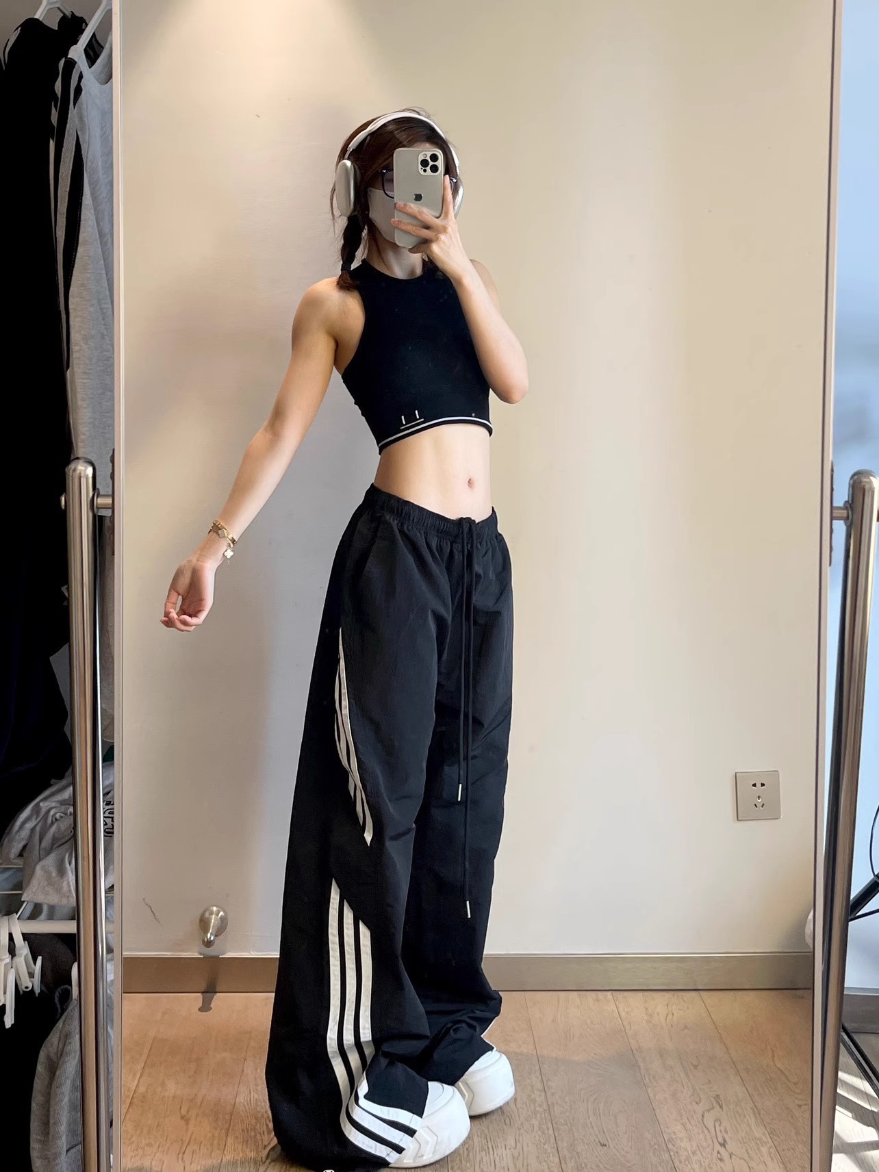 남성과 여성을 위한 속건성 캐주얼 스포츠 작업복 여름 얇은 미국 복고풍 블랙 재즈 댄스 바지