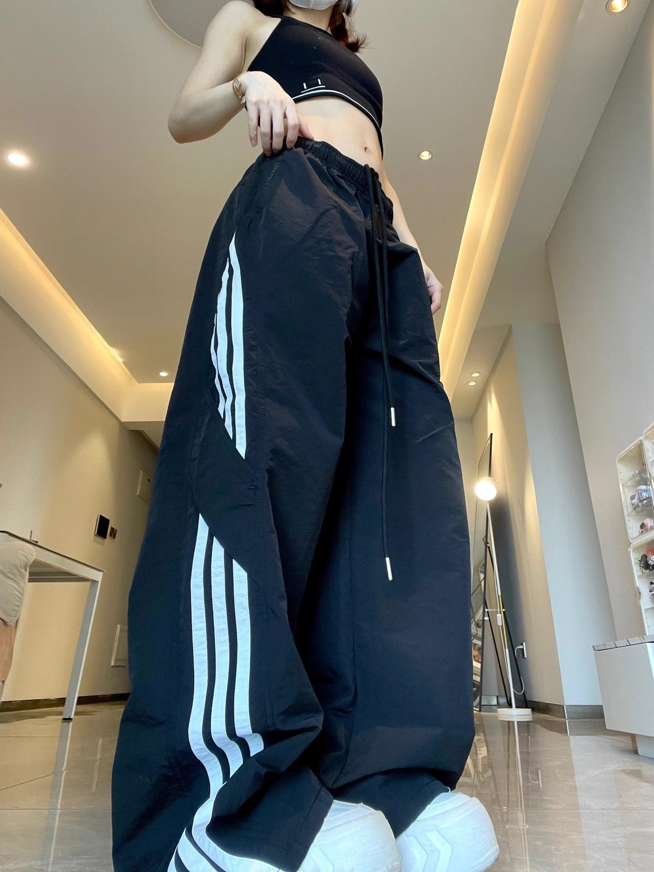 남성과 여성을 위한 속건성 캐주얼 스포츠 작업복 여름 얇은 미국 복고풍 블랙 재즈 댄스 바지스토어 가기