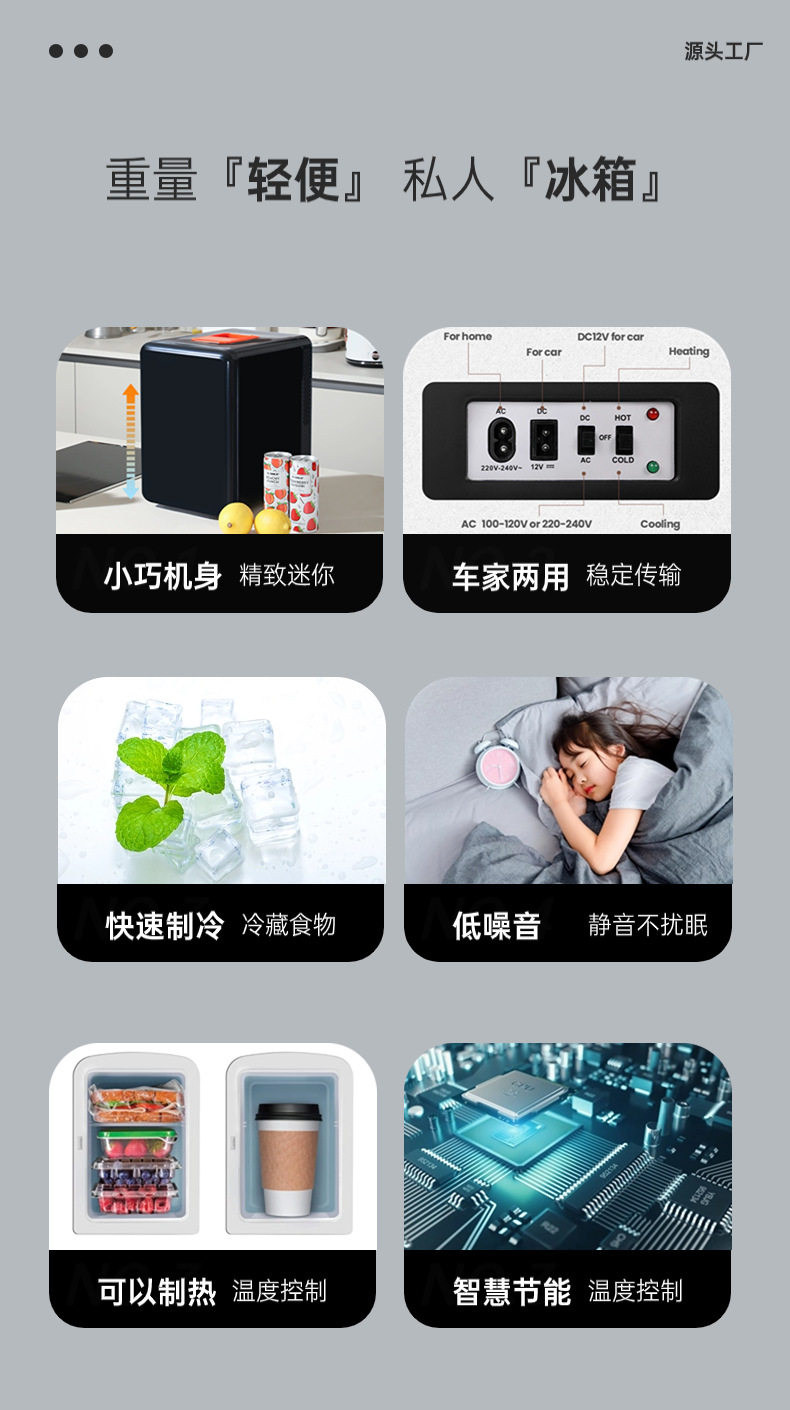 미니 차량용 냉장고 가정용 소형 10L 모유/화장품/침실/기숙사용 냉온 기능 겸용