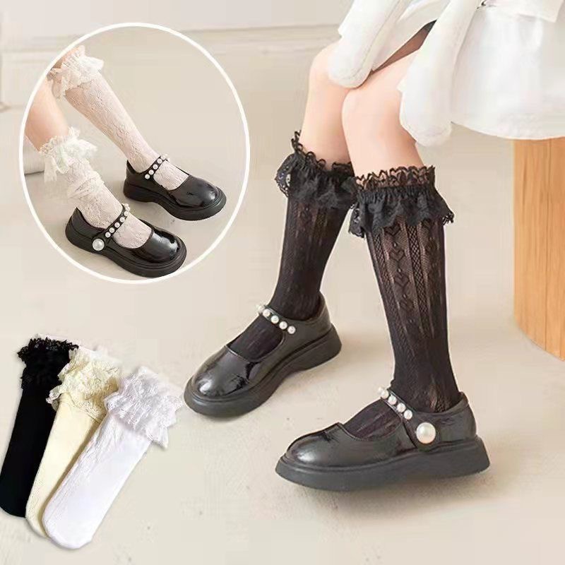 어린이 양말 소녀 새로운 레이스 양말 공주 양말 아기 소녀 스타킹 여름 얇은 흰색 어린이 양말
