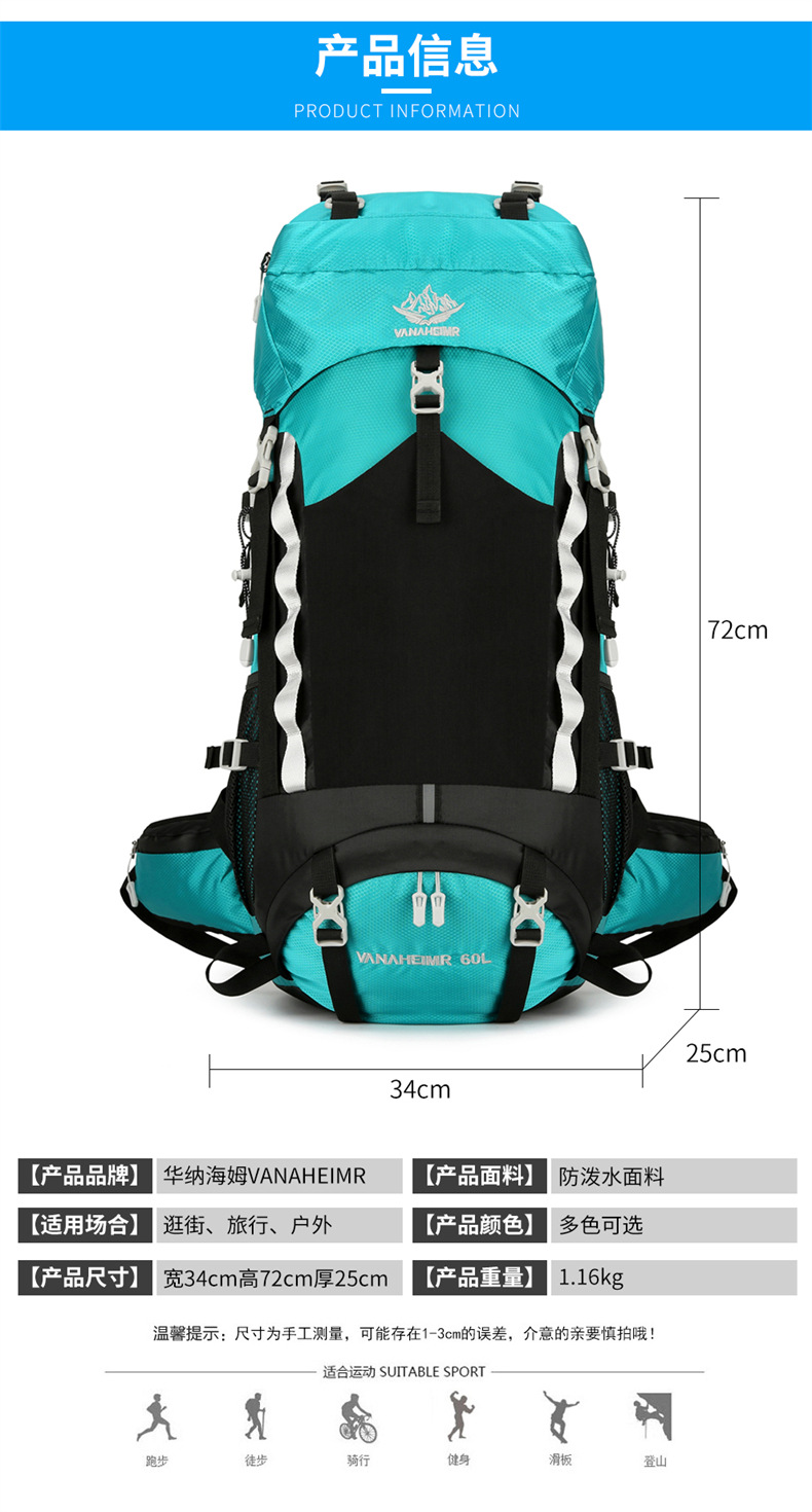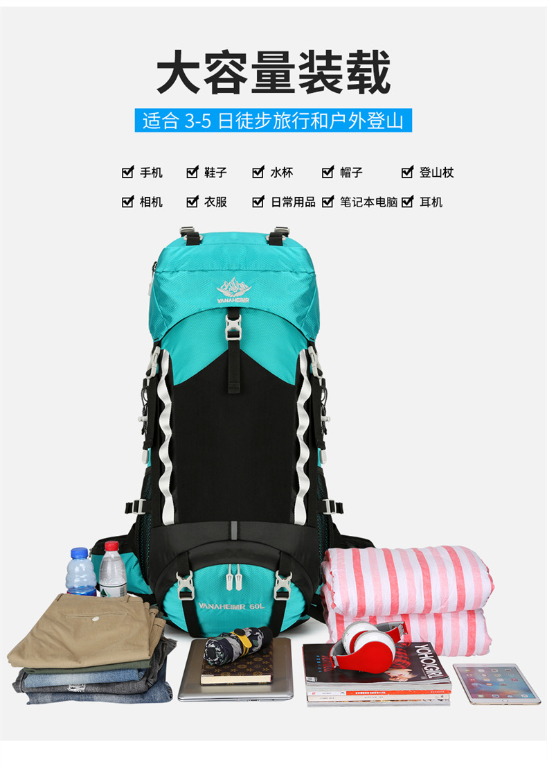 국경 새로운 아마존 등산 가방 대용량 다기능 60L 야외 방수 배낭