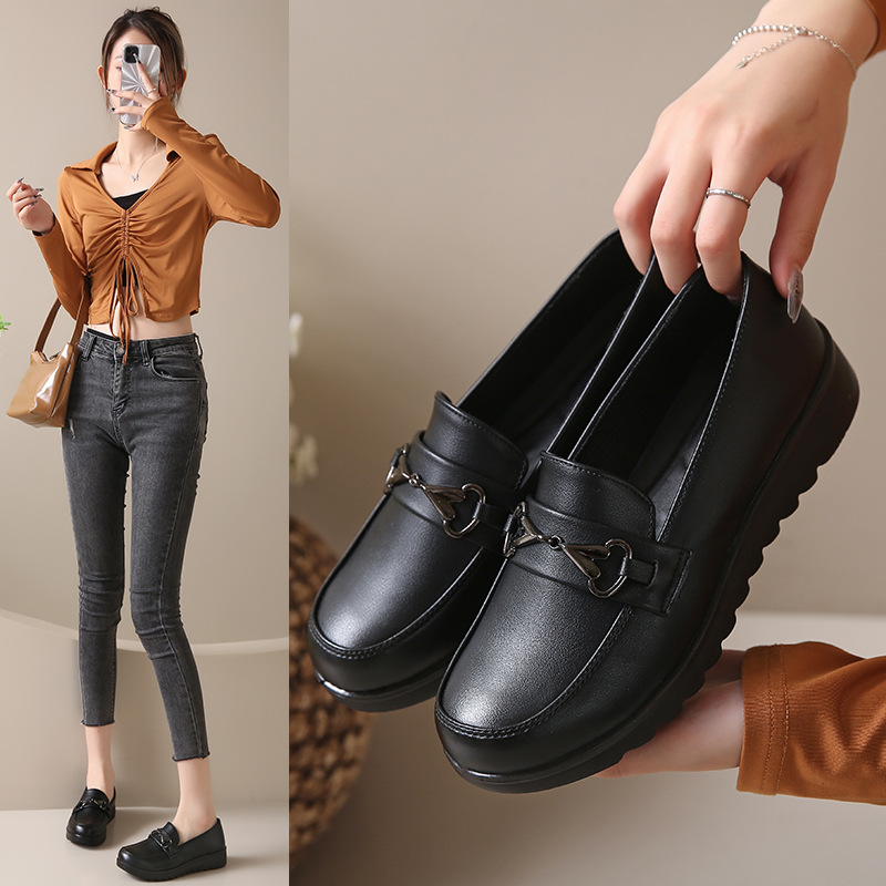 신발 방수 작업 신발 주방 여성 캐주얼 가죽 신발 마이크로 화이버 가죽 부드러운 단독 미끄럼 방지 여성 신발 어머니 신발