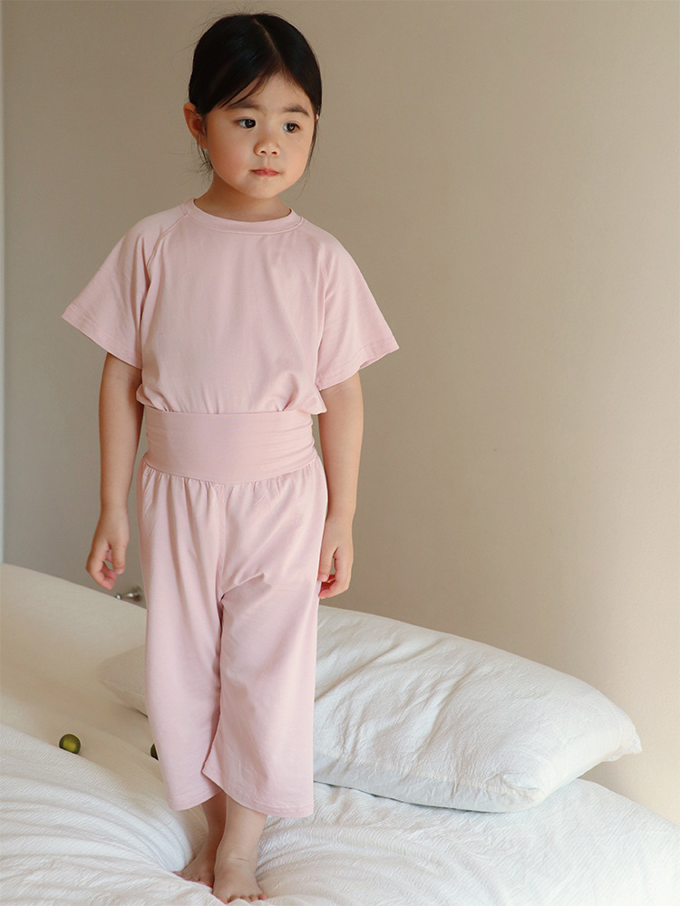 2024 년 여름 어린이 클래스 A Tianzhu Cotton 얇은 추적없는 높은 허리 세트 소년과 소년의 캐스퍼 홈 에어컨 옷