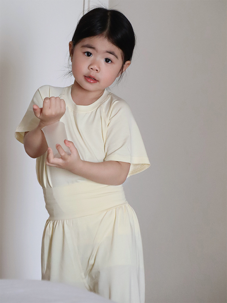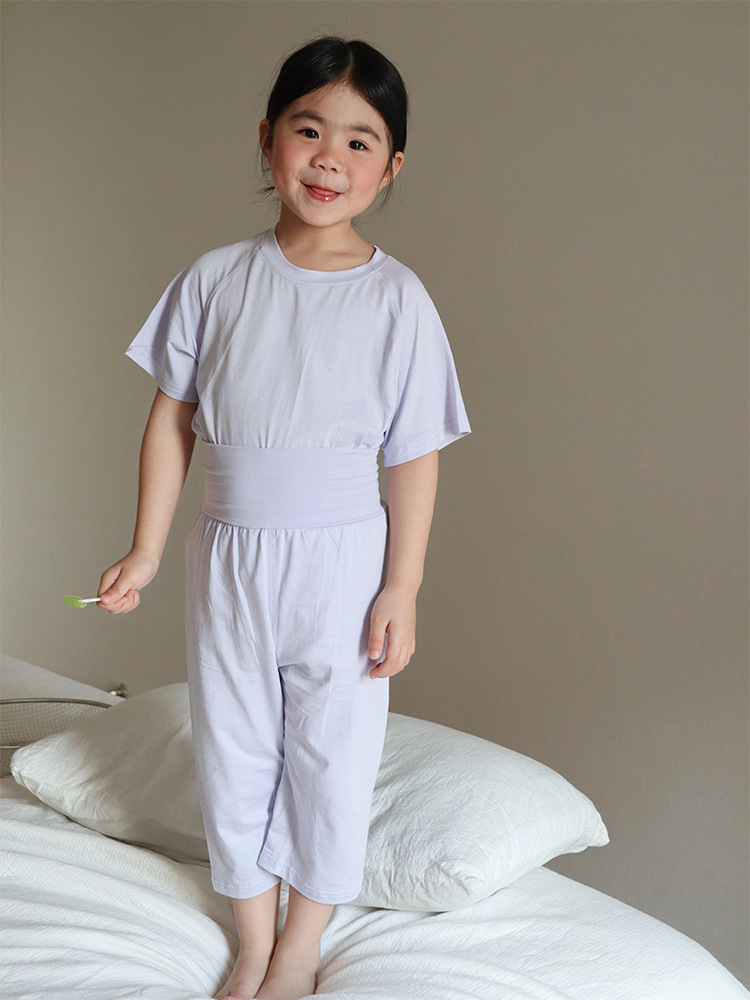 2024 년 여름 어린이 클래스 A Tianzhu Cotton 얇은 추적없는 높은 허리 세트 소년과 소년의 캐스퍼 홈 에어컨 옷스토어 가기