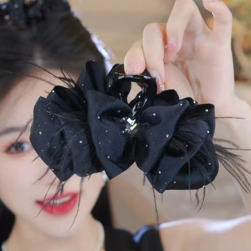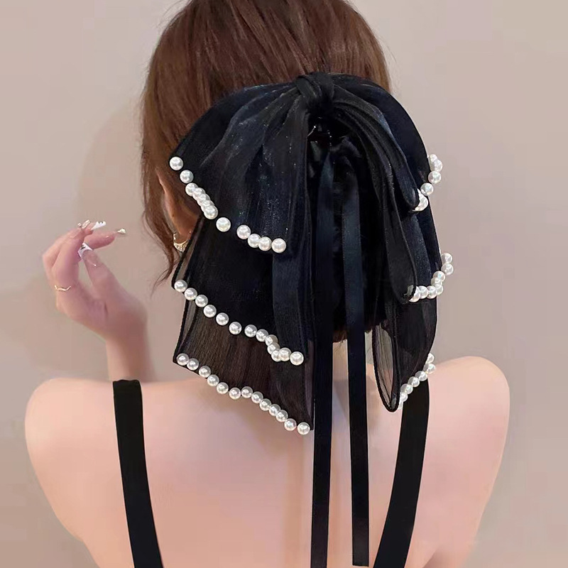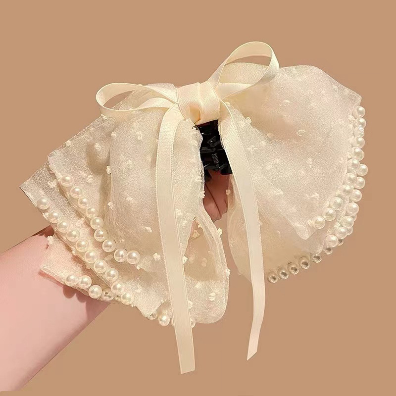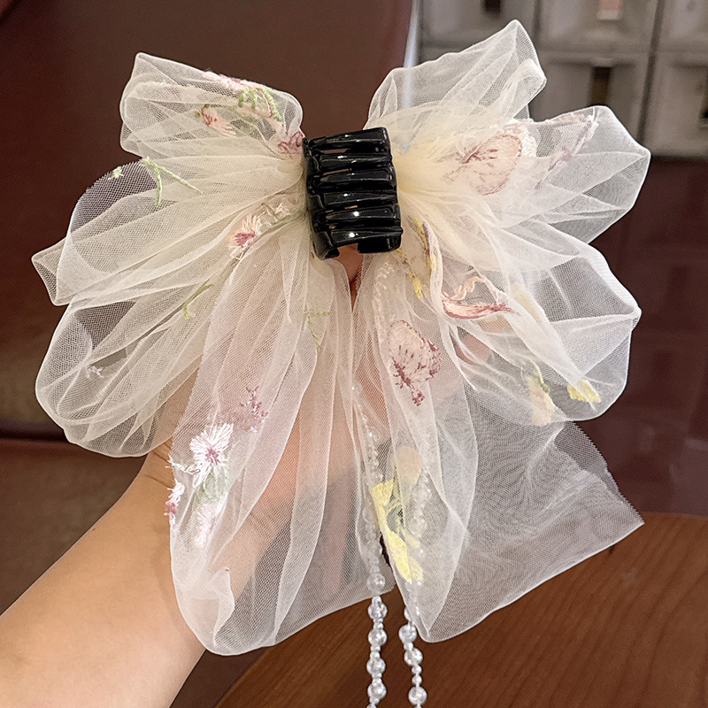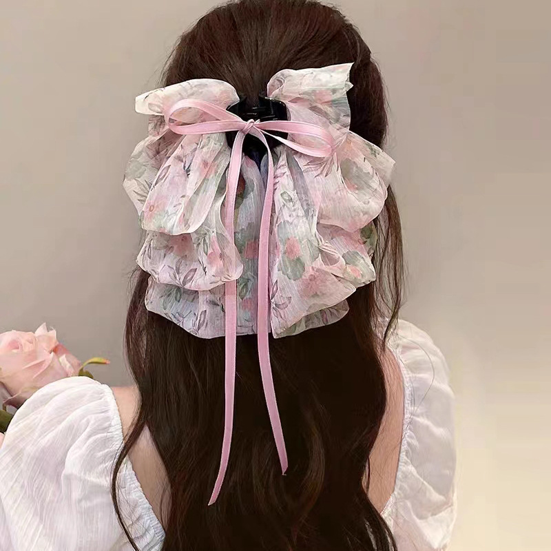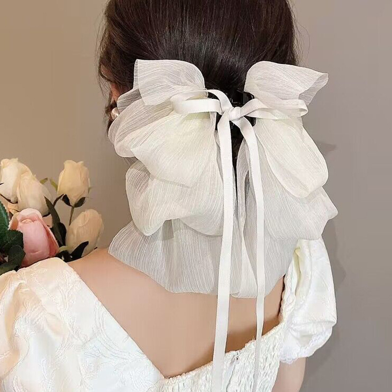 헤어 액세서리 요정 하이 엔드 빅 보우 머리 하이 엔드 버블 거즈 대형 그랩 클립 상어 클립 헤드웨어 여성용스토어 가기