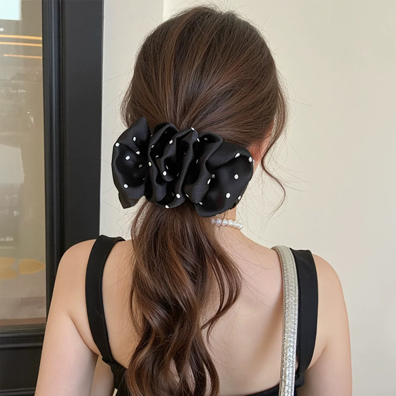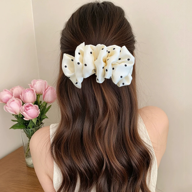 • 016m 화이트 폴카 도트 리본 포니테일 클립
