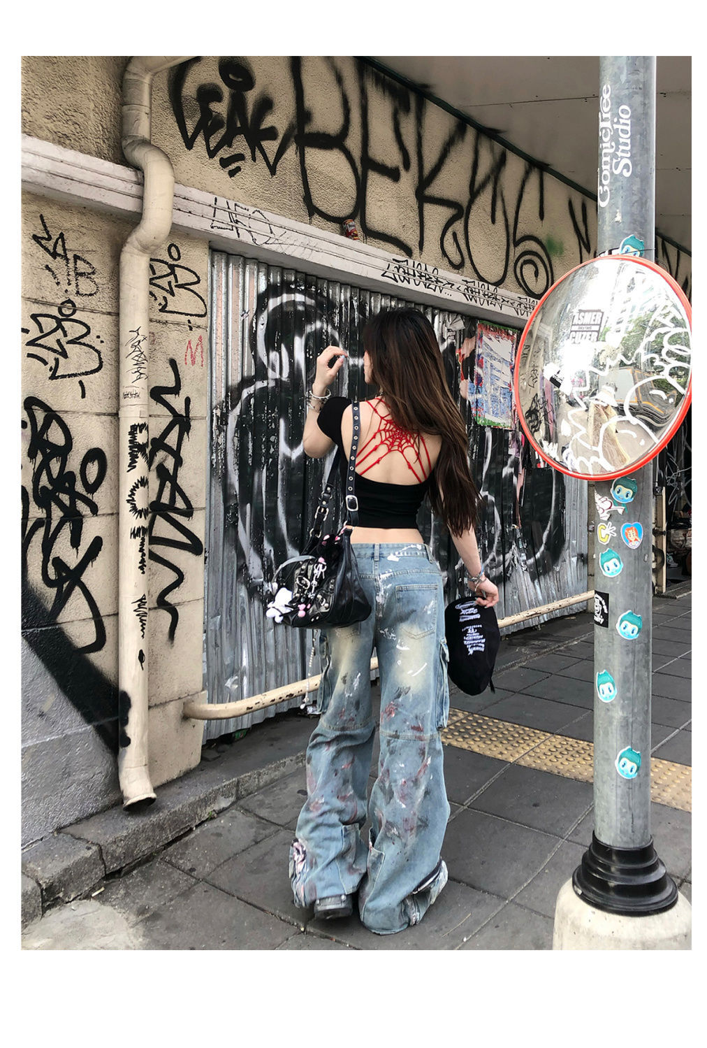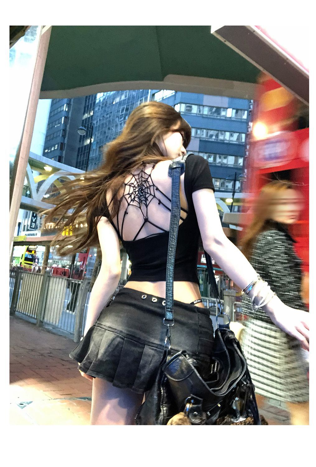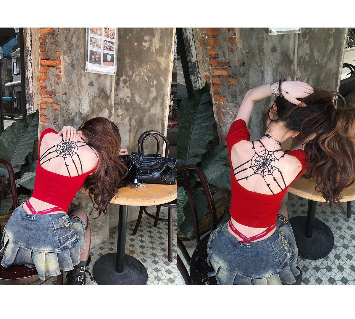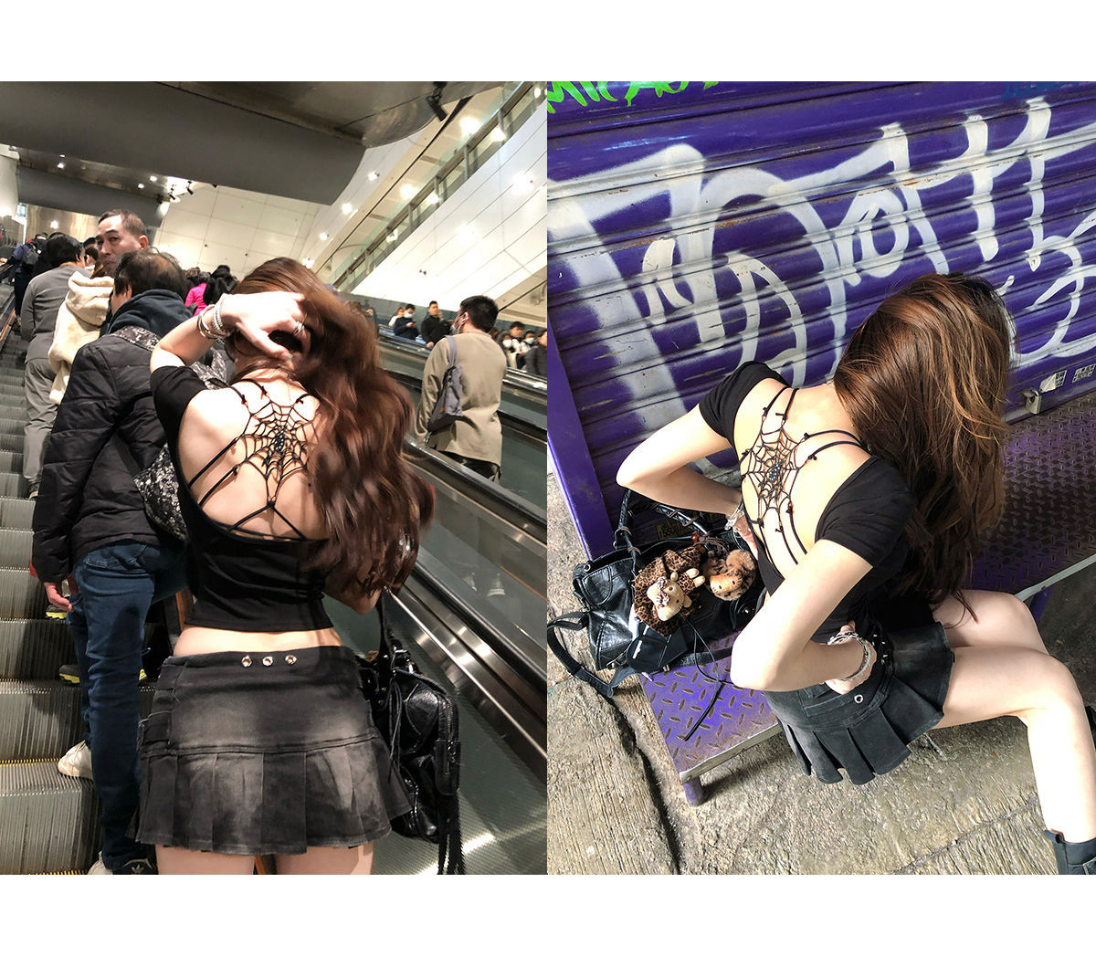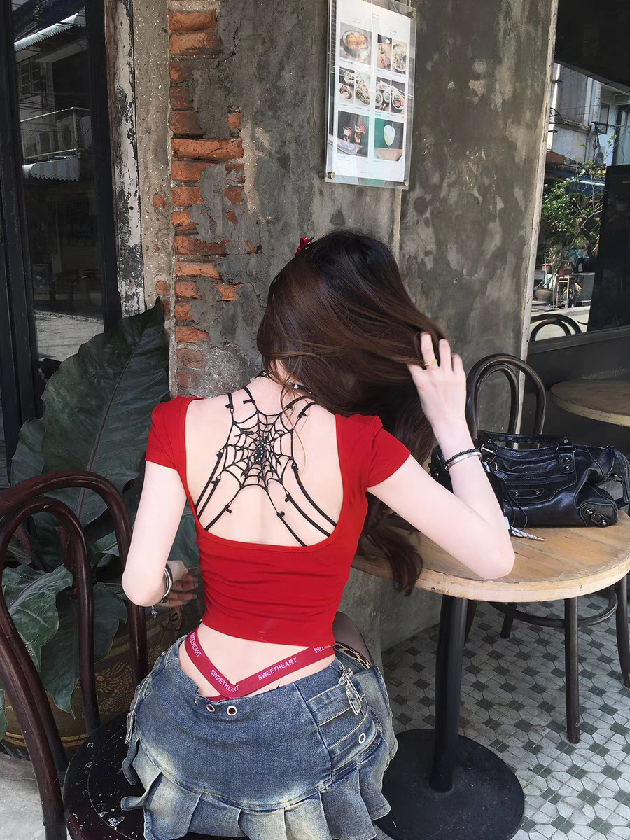 핫걸들을 위한 슬링 아름다운 등 와이어 브라, 홀터넥 앞 버튼, 스파이더 웹 백리스 브라, 크로스 얇은 스트랩 푸쉬업 브라스토어 가기