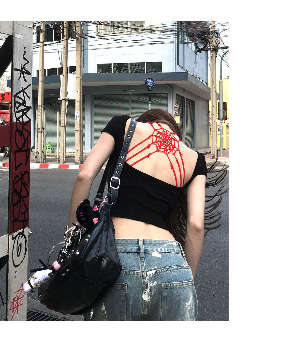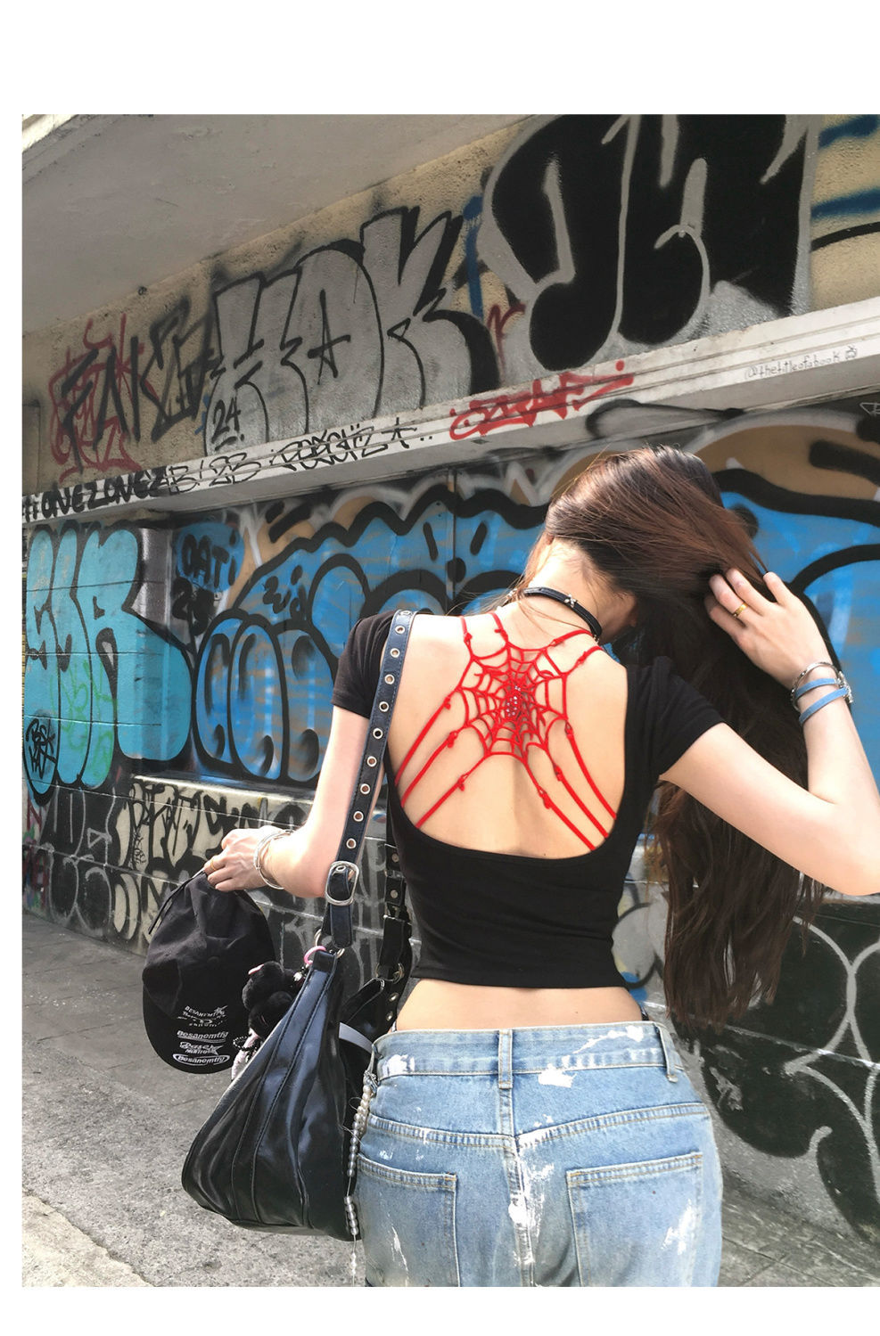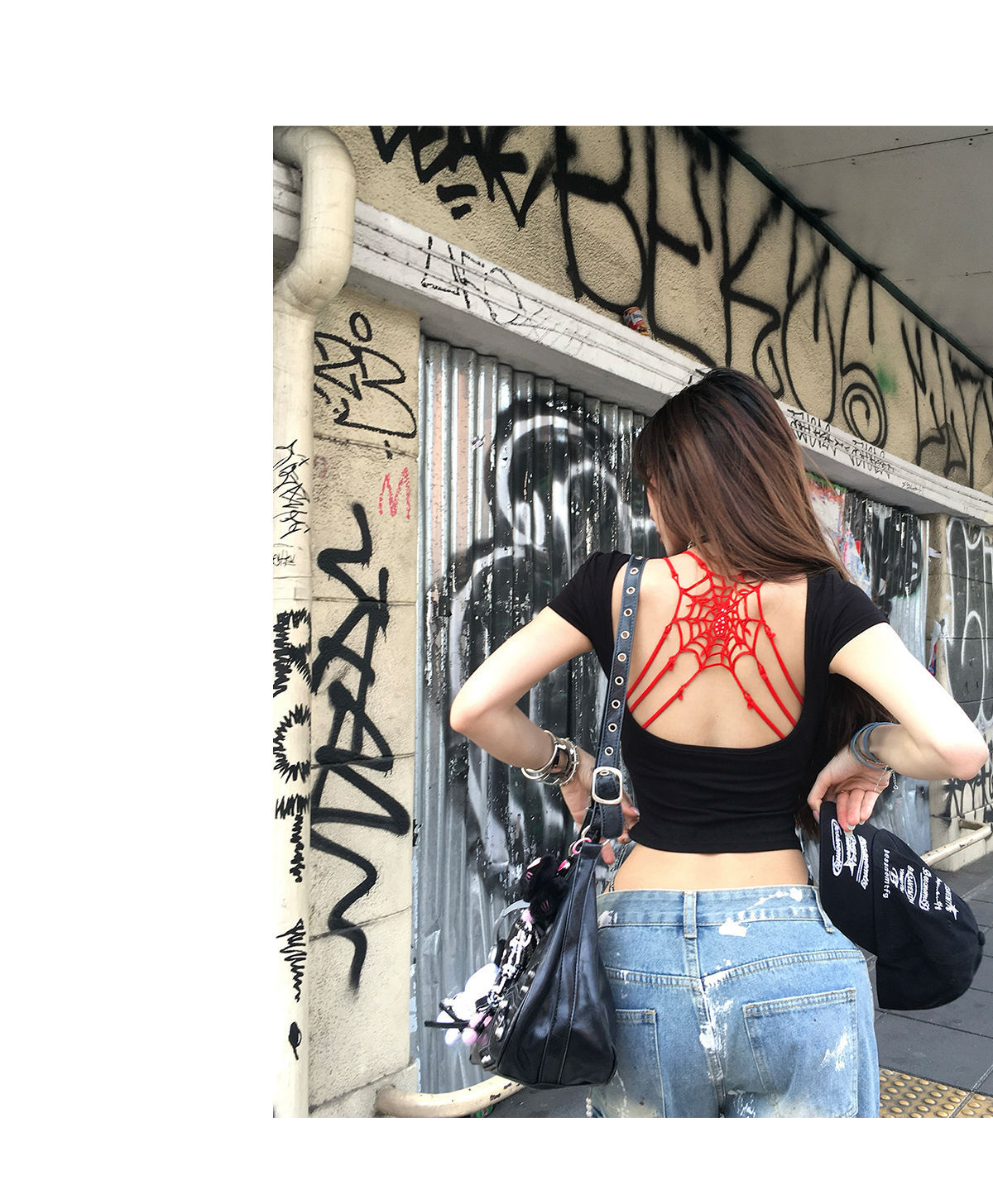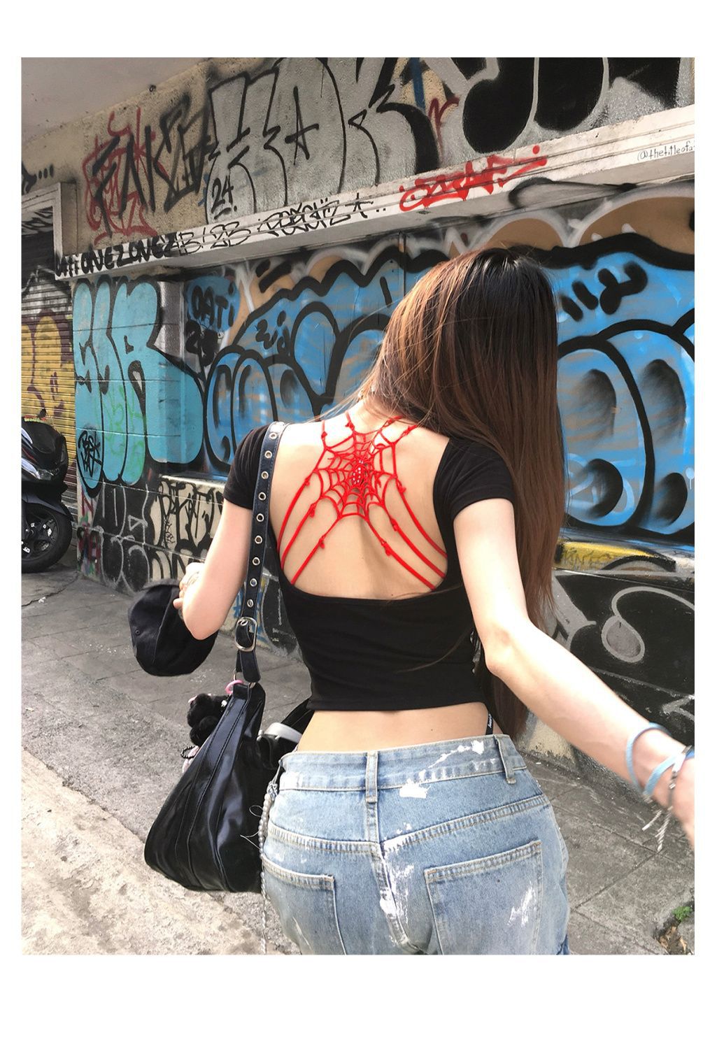 핫걸들을 위한 슬링 아름다운 등 와이어 브라, 홀터넥 앞 버튼, 스파이더 웹 백리스 브라, 크로스 얇은 스트랩 푸쉬업 브라