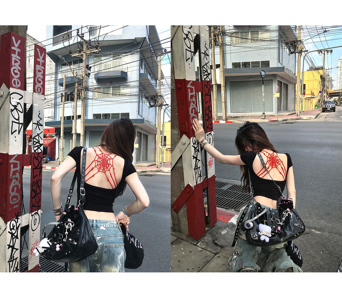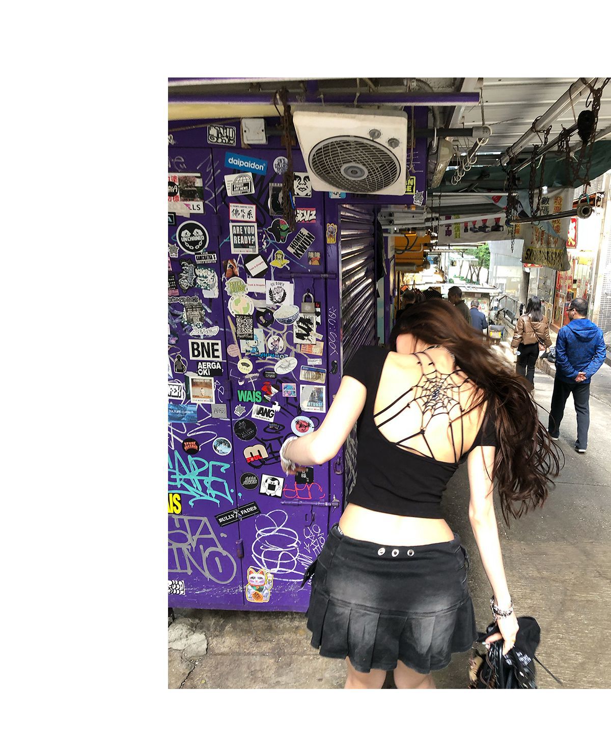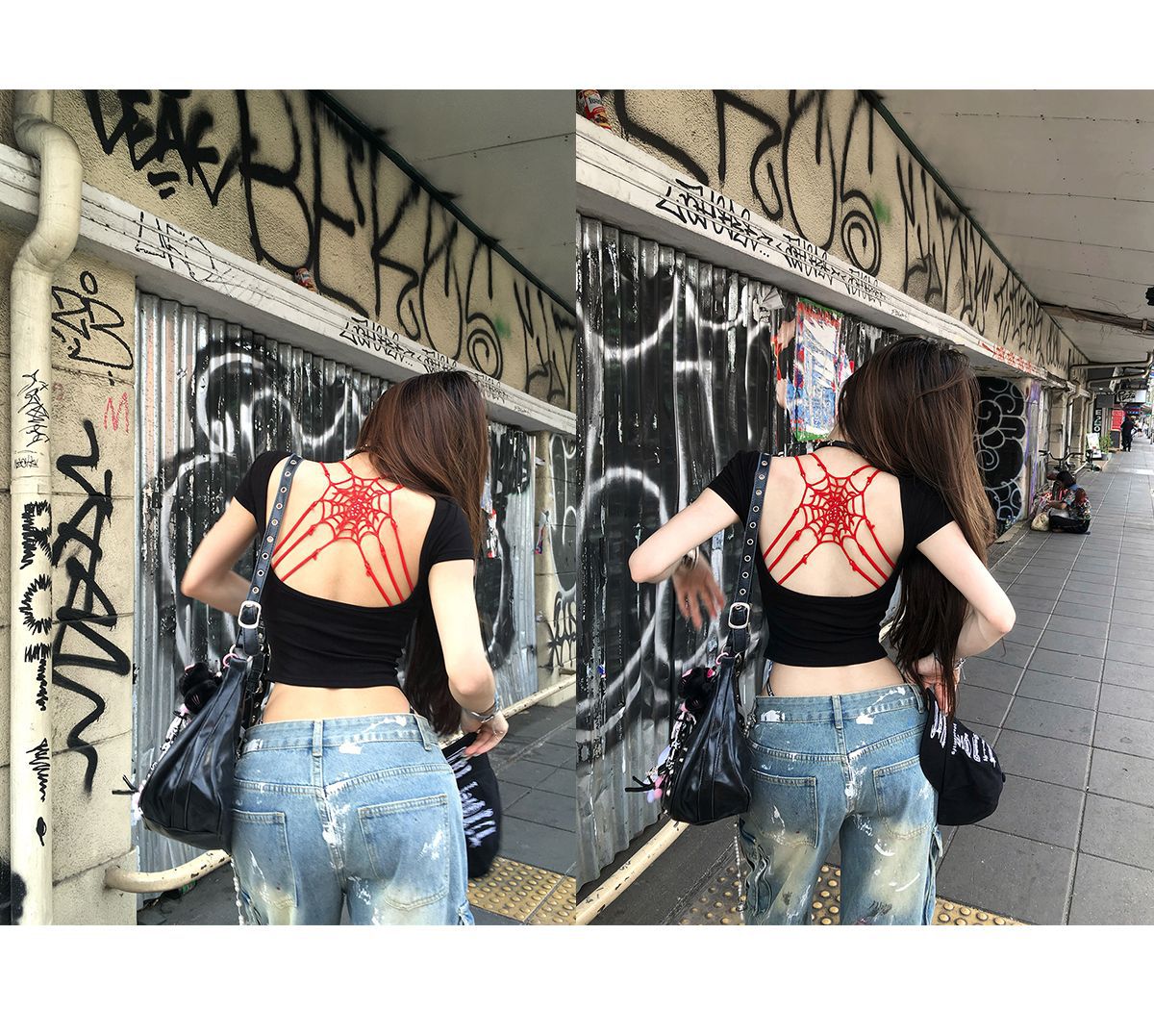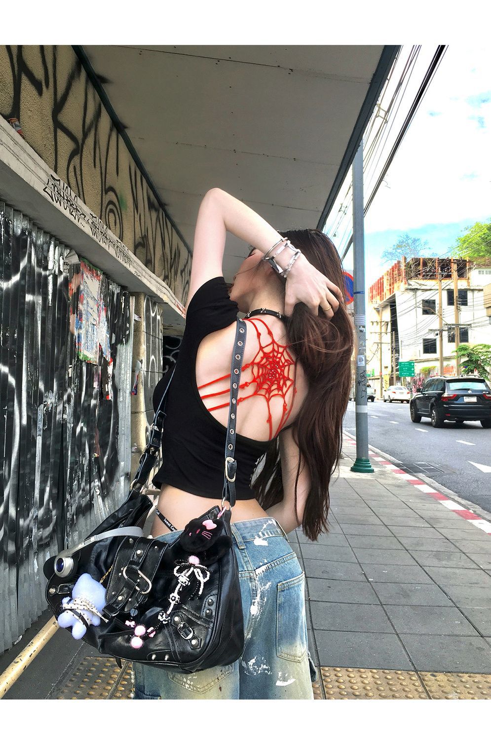 핫걸들을 위한 슬링 아름다운 등 와이어 브라, 홀터넥 앞 버튼, 스파이더 웹 백리스 브라, 크로스 얇은 스트랩 푸쉬업 브라