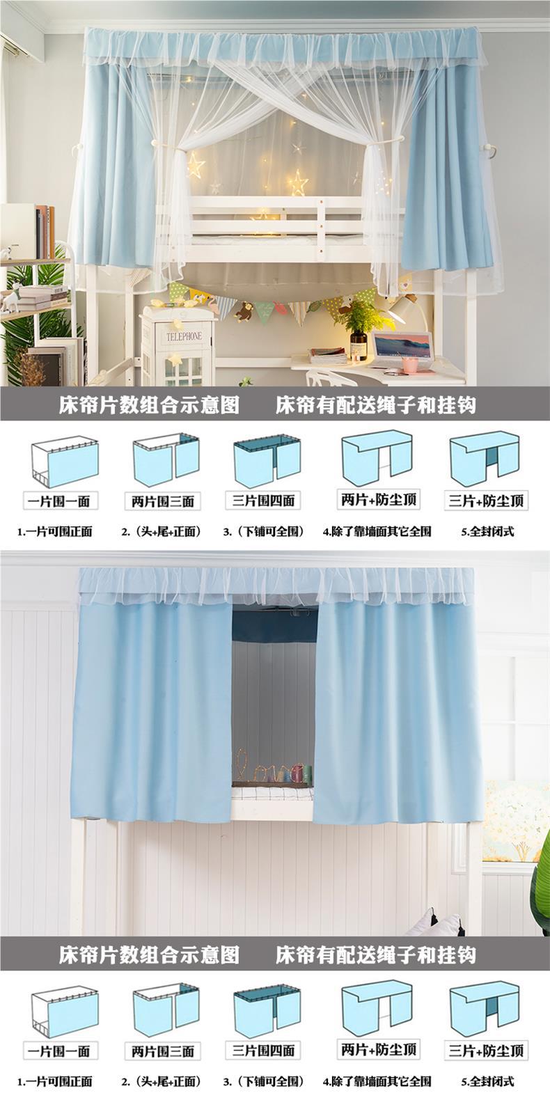 두꺼운 강한 음영 커튼 학생 기숙사 침대 커튼 상부 침대 낮은 침대 대학 기숙사 모기장 통합 단색 커튼스토어 가기
