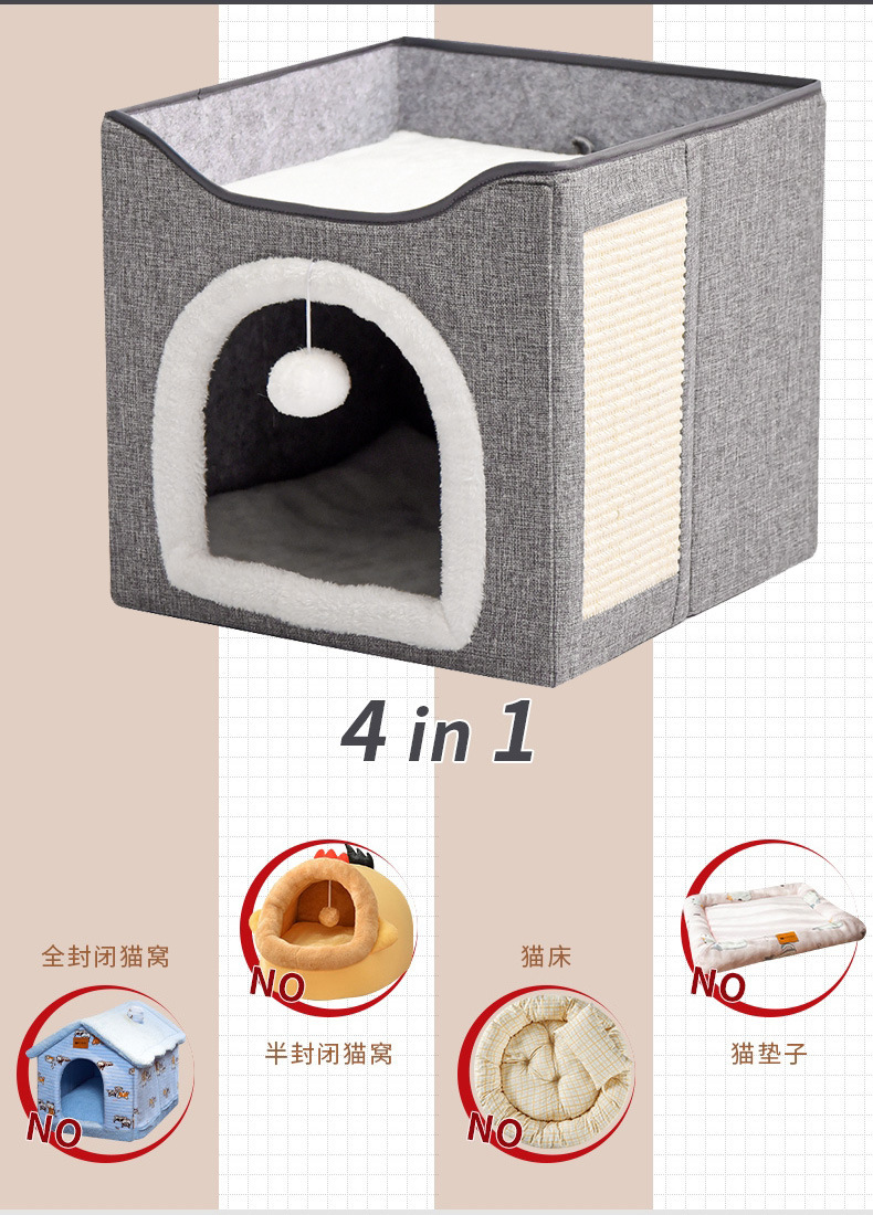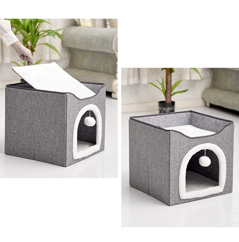 더블 레이어 고양이 둥지 겨울 따뜻한 분리형 및 세척 쉬운 4 계절 유니버설 대형 접이식 고양이와 개 매트 애완 동물 고양이 둥지