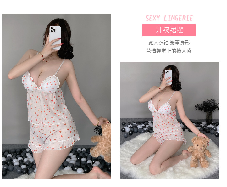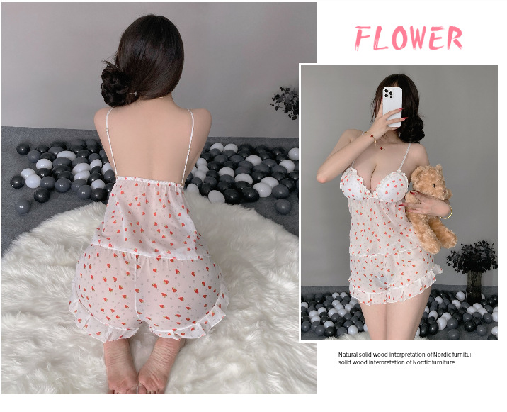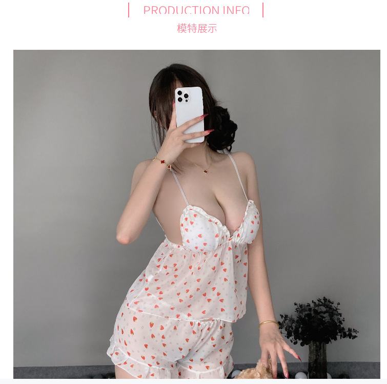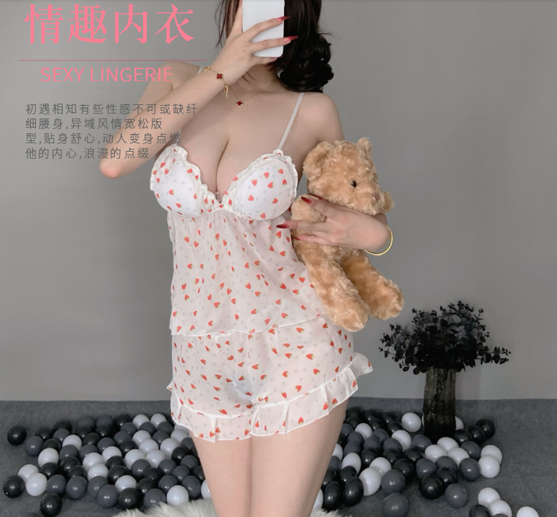 • 딸기 잠옷 (유방 패드 포함) 흰색 그물 스타킹
