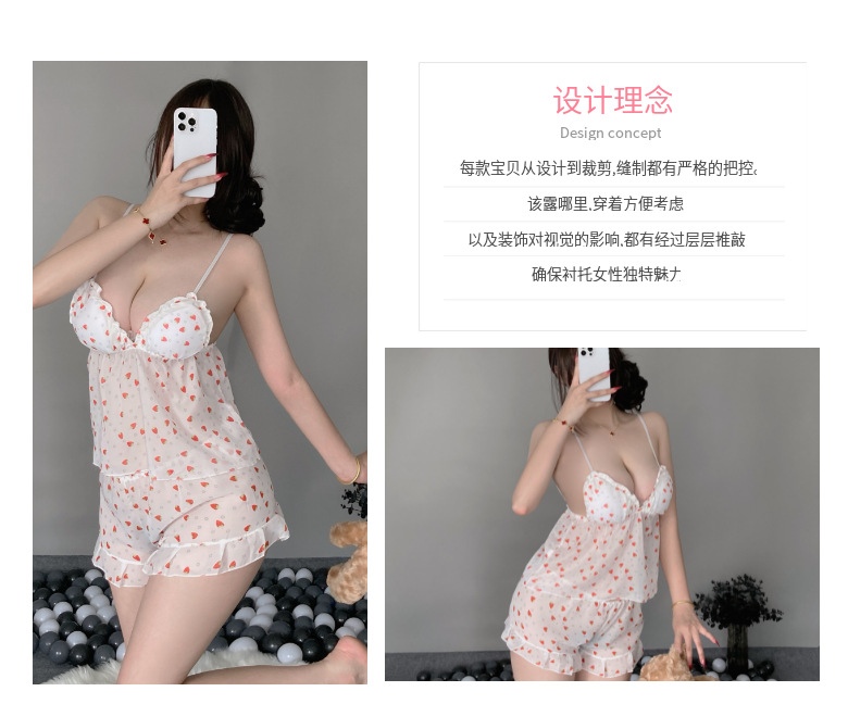 섹시한 꽃 쉬폰 멜빵 파자마 반바지 2 종 봄과 여름 달콤한 귀여운 홈 의류 여성 도매스토어 가기