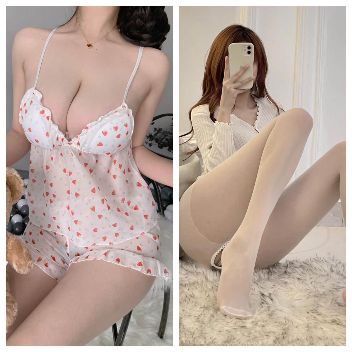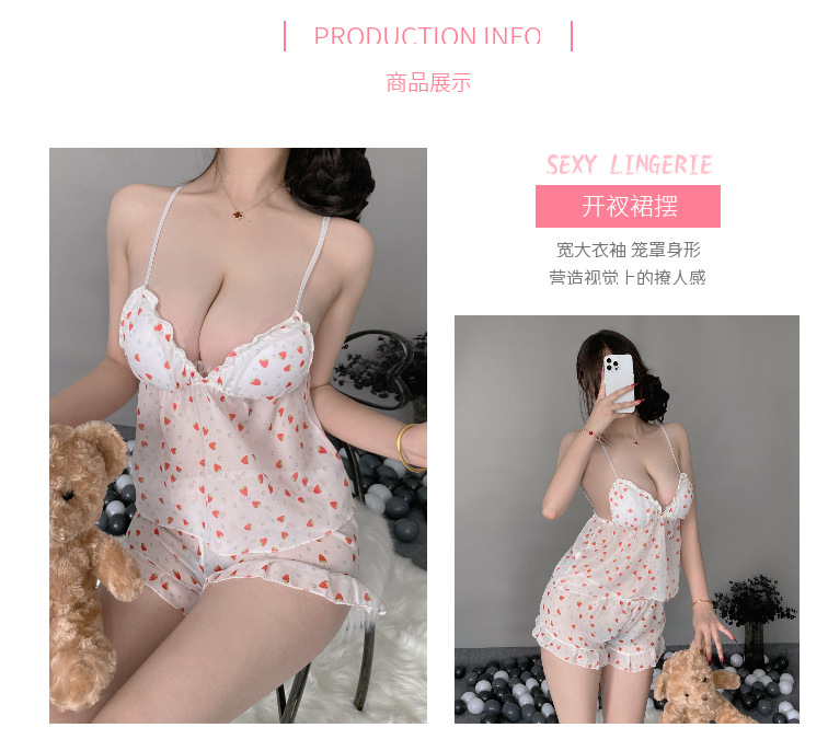 • 딸기 잠옷 (가슴 패드 포함) 흰색 스타킹
