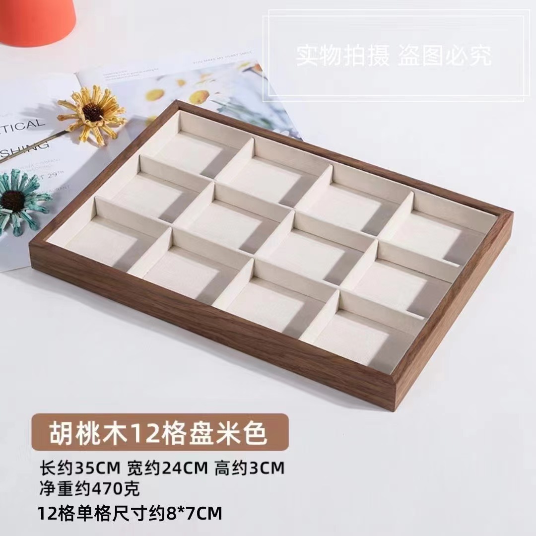 黑胡桃纹木质米色饰品托盘收纳耳饰项链看货盘空盘首饰手镯