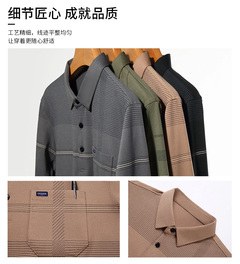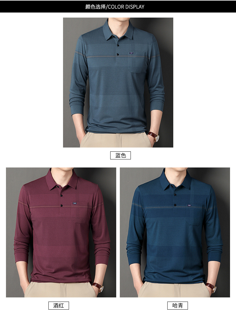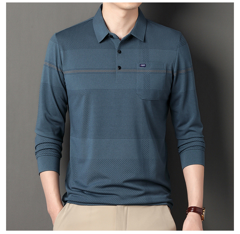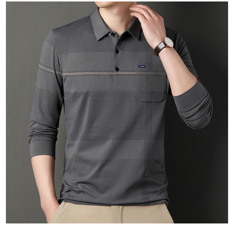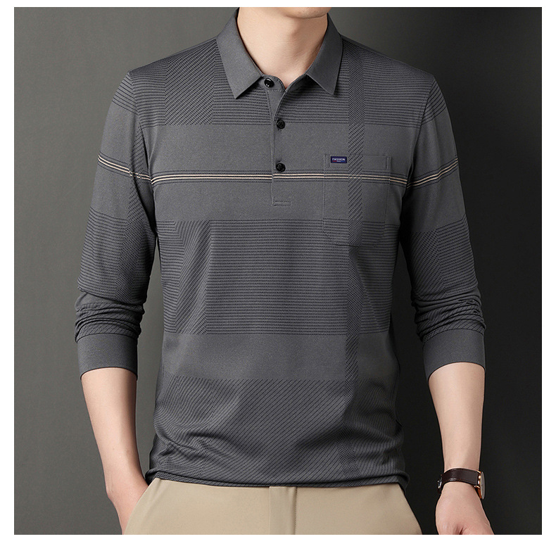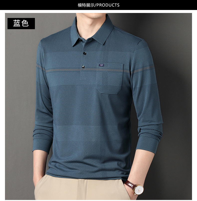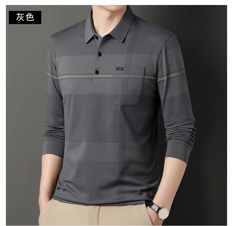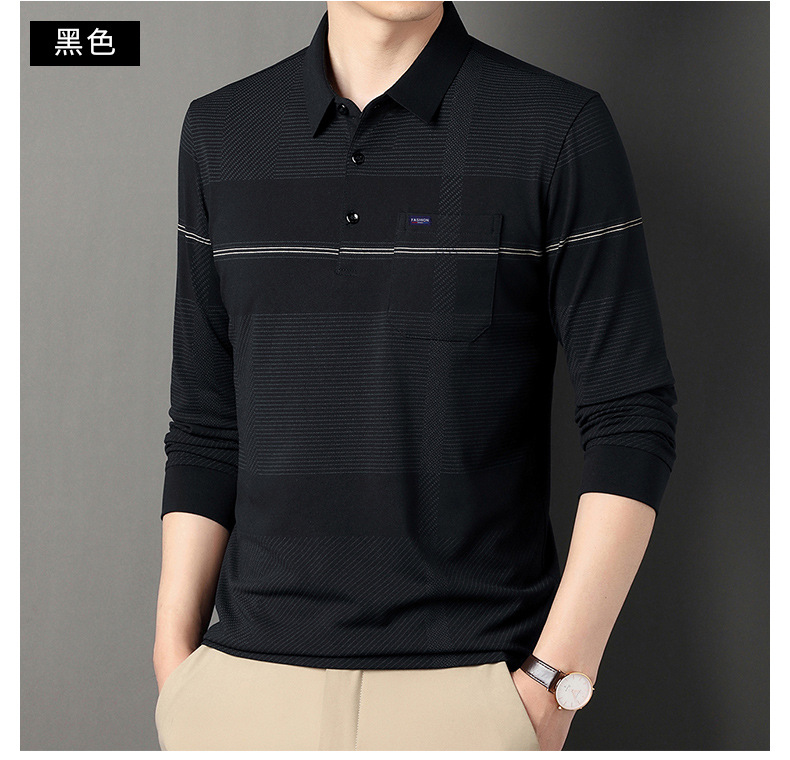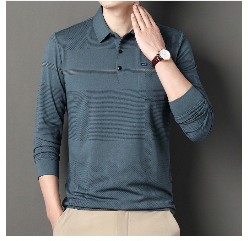 Gui Shang Dad 남성용 옷깃 긴 소매 티셔츠 남성용 진짜 포켓 탑 스트라이프 포켓 남성용 폴로 셔츠 도매스토어 가기