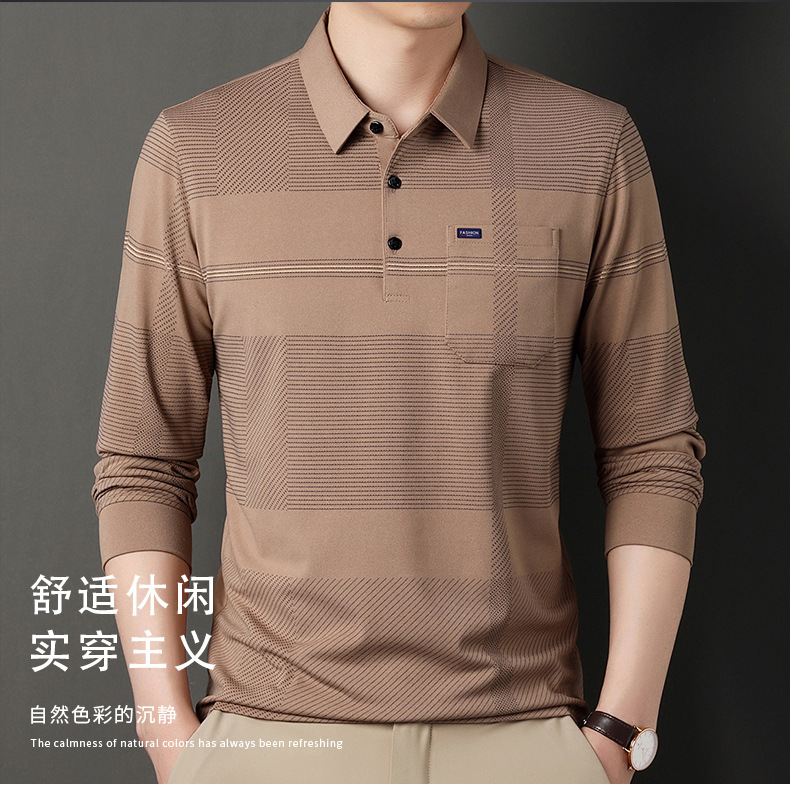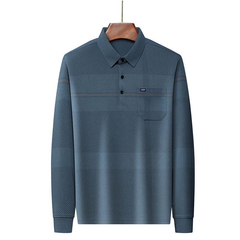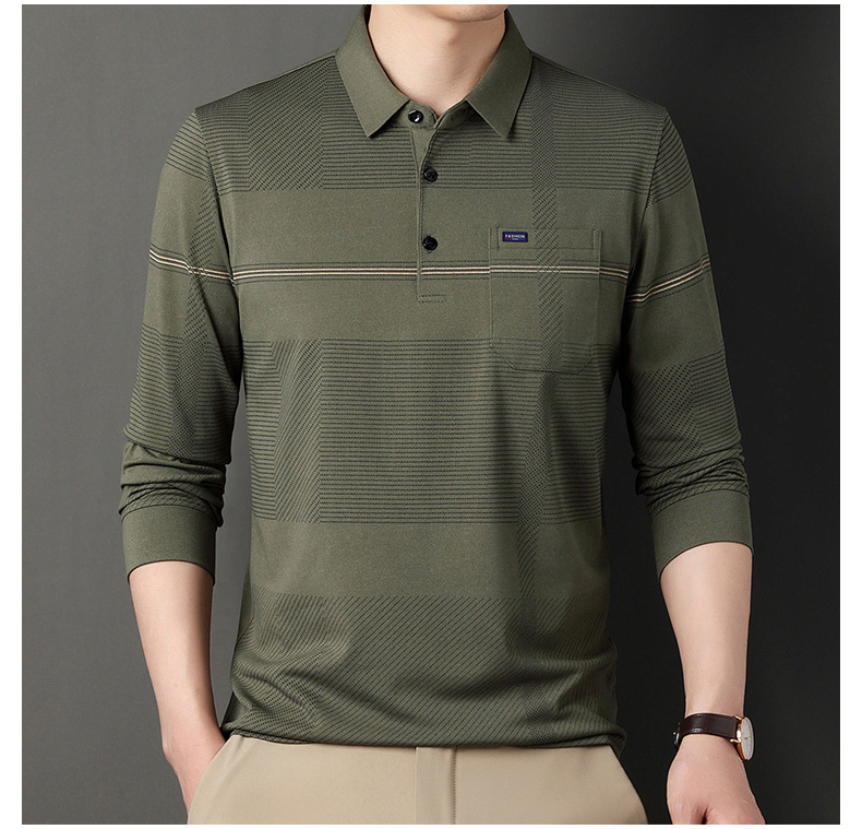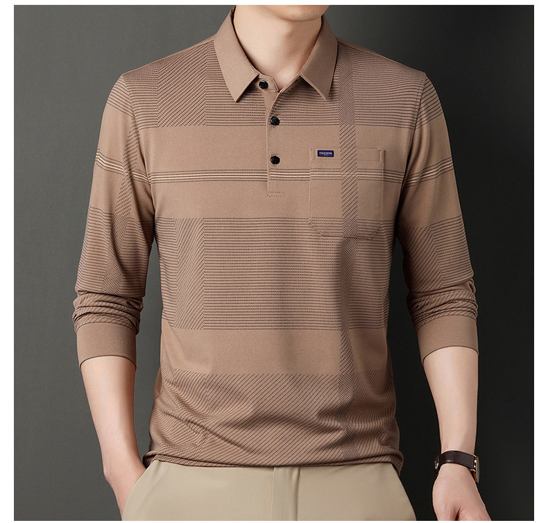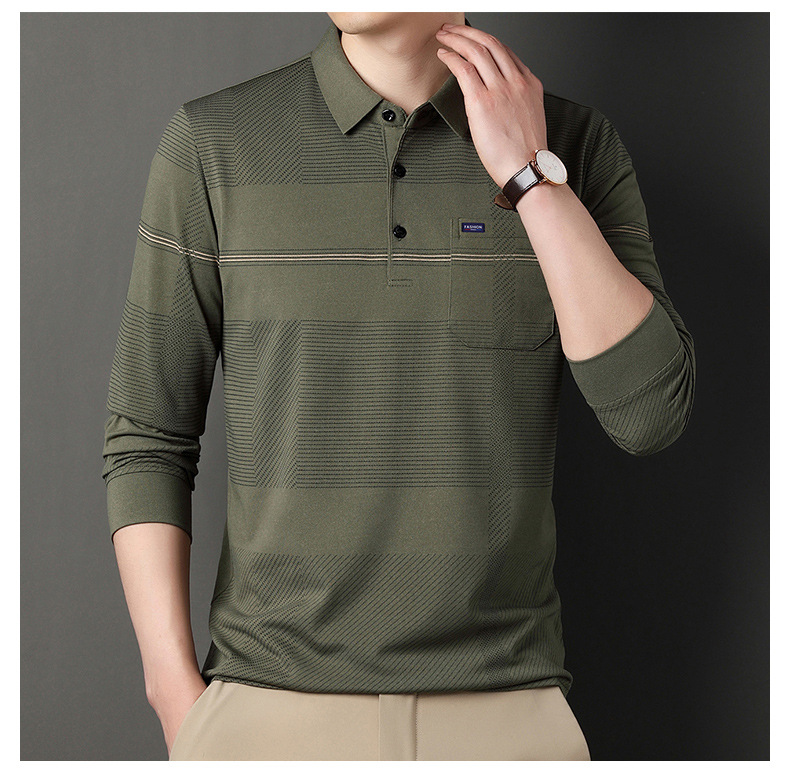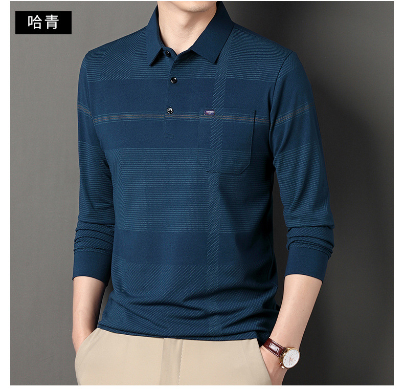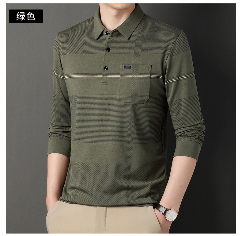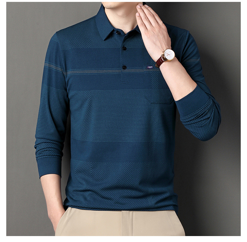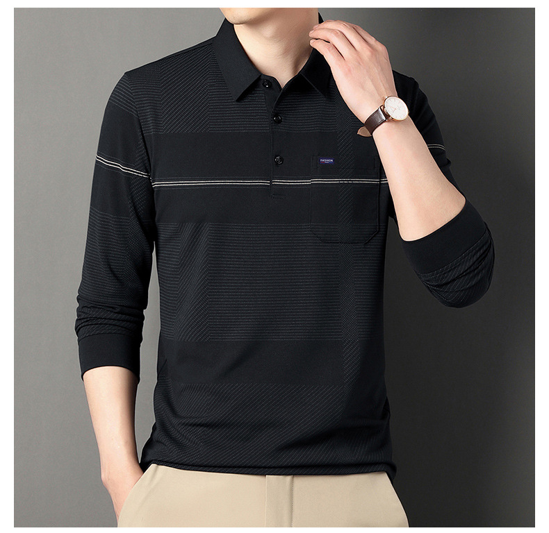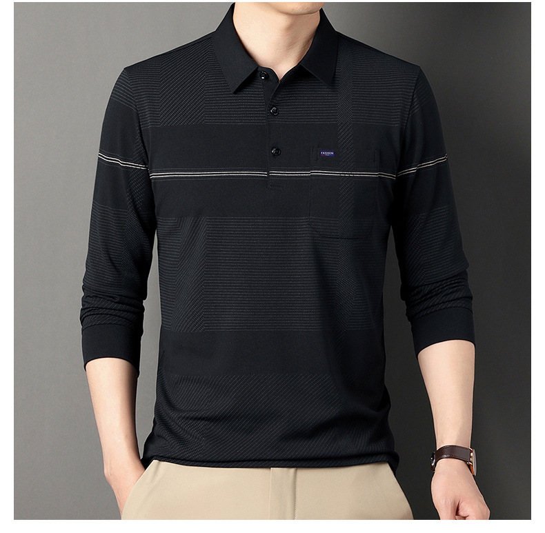 Gui Shang Dad 남성용 옷깃 긴 소매 티셔츠 남성용 진짜 포켓 탑 스트라이프 포켓 남성용 폴로 셔츠 도매스토어 가기