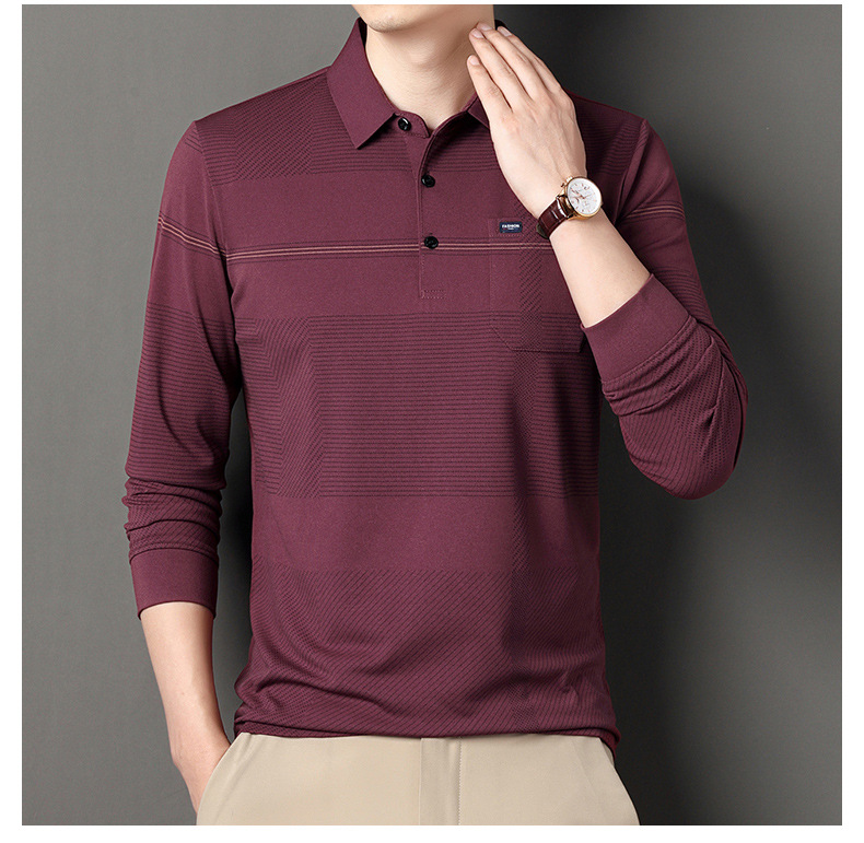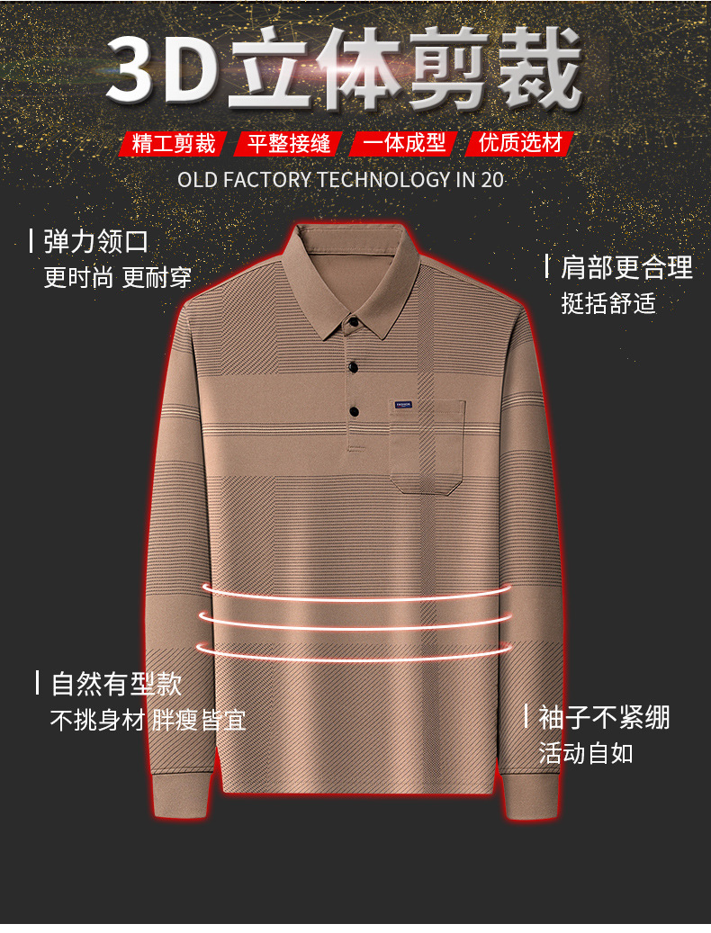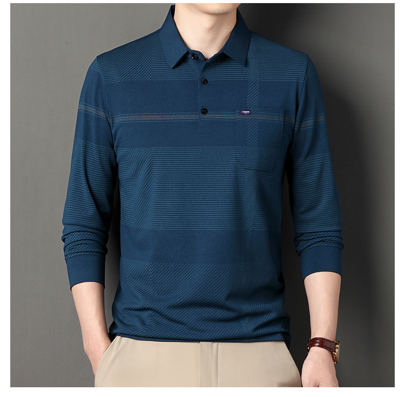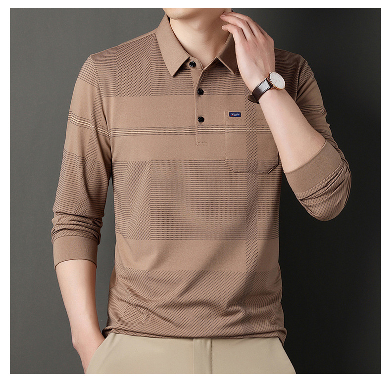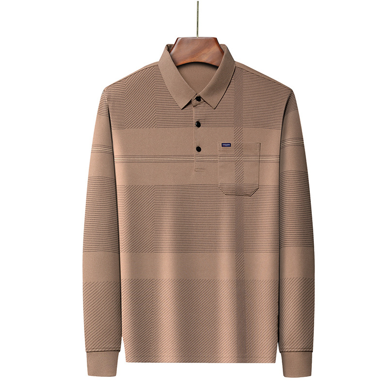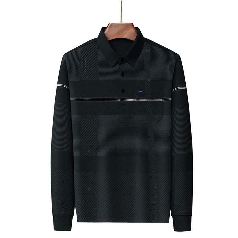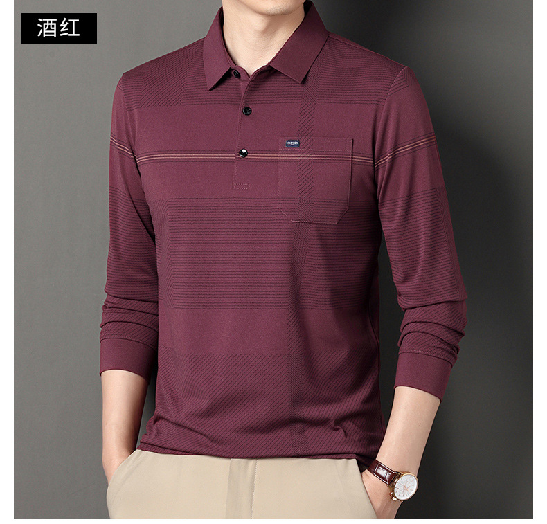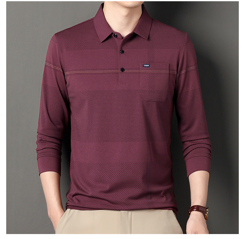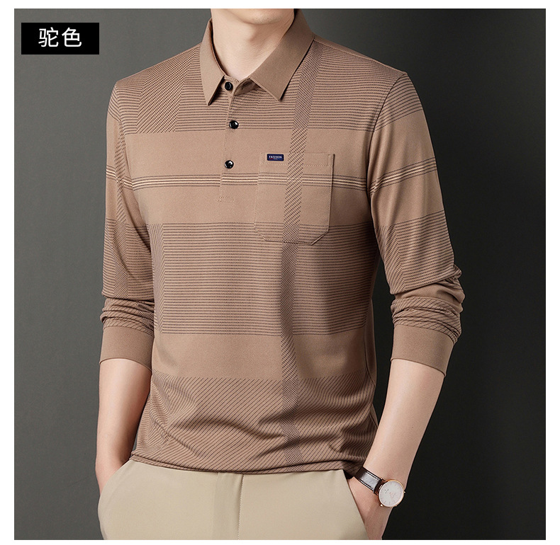 Gui Shang Dad 남성용 옷깃 긴 소매 티셔츠 남성용 진짜 포켓 탑 스트라이프 포켓 남성용 폴로 셔츠 도매스토어 가기