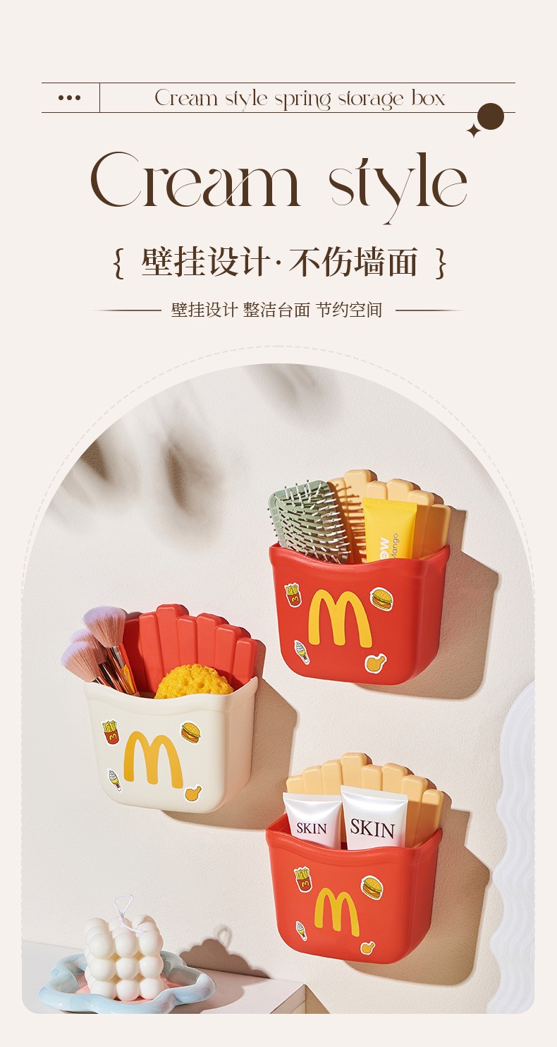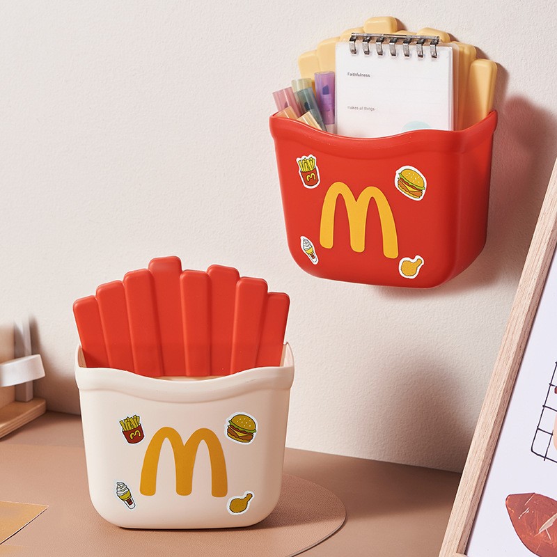 M 편지 프렌치 프라이 벽 걸이 랙 스토리지 박스 가정용 데스크탑 귀여운 장식 메이크업 브러쉬 학생 다기능스토어 가기