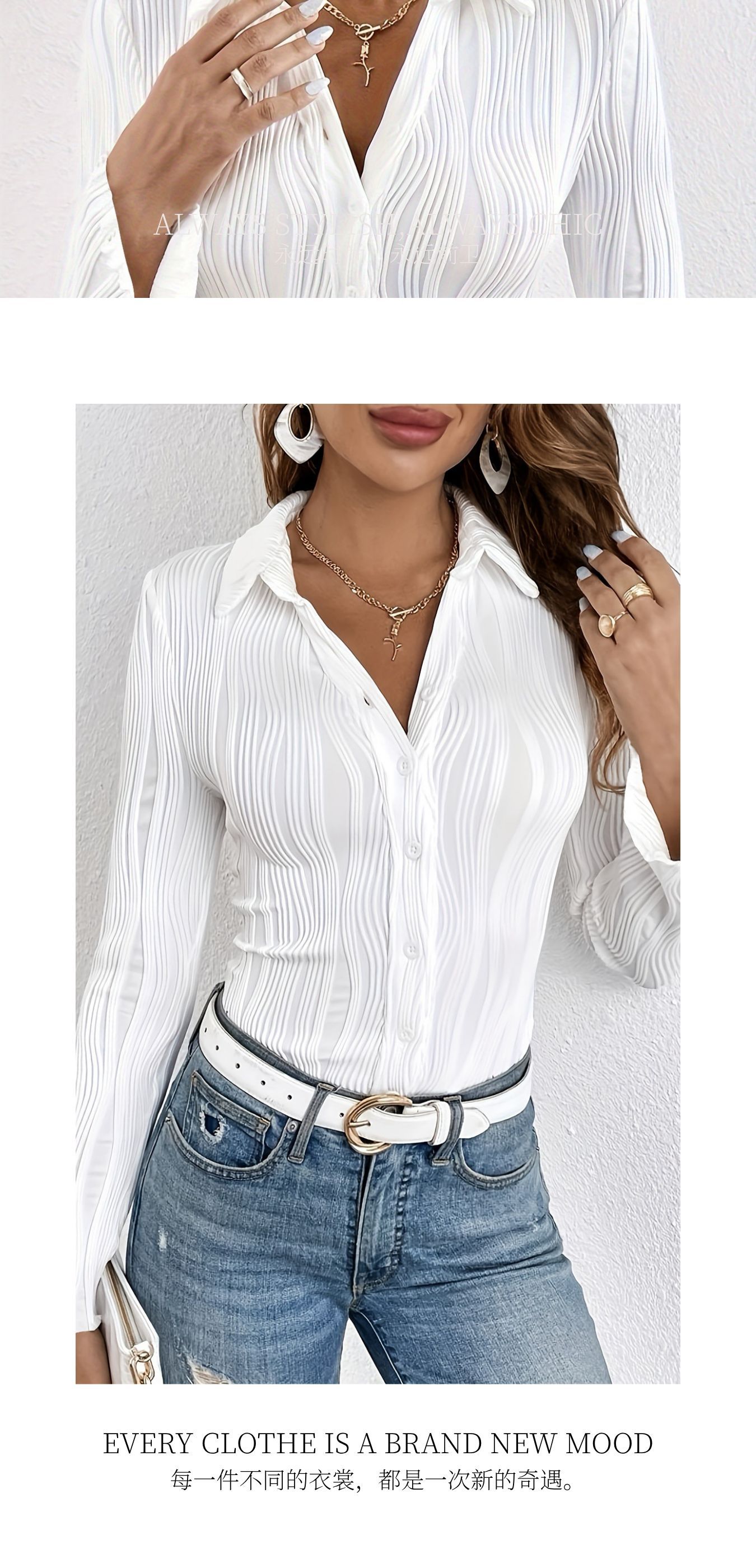 유럽과 미국의 국경 간 2025 가을 겨울 새로운 단색 슬림핏 다용도 질감 패션 여성 티셔츠 셔츠 탑 여성