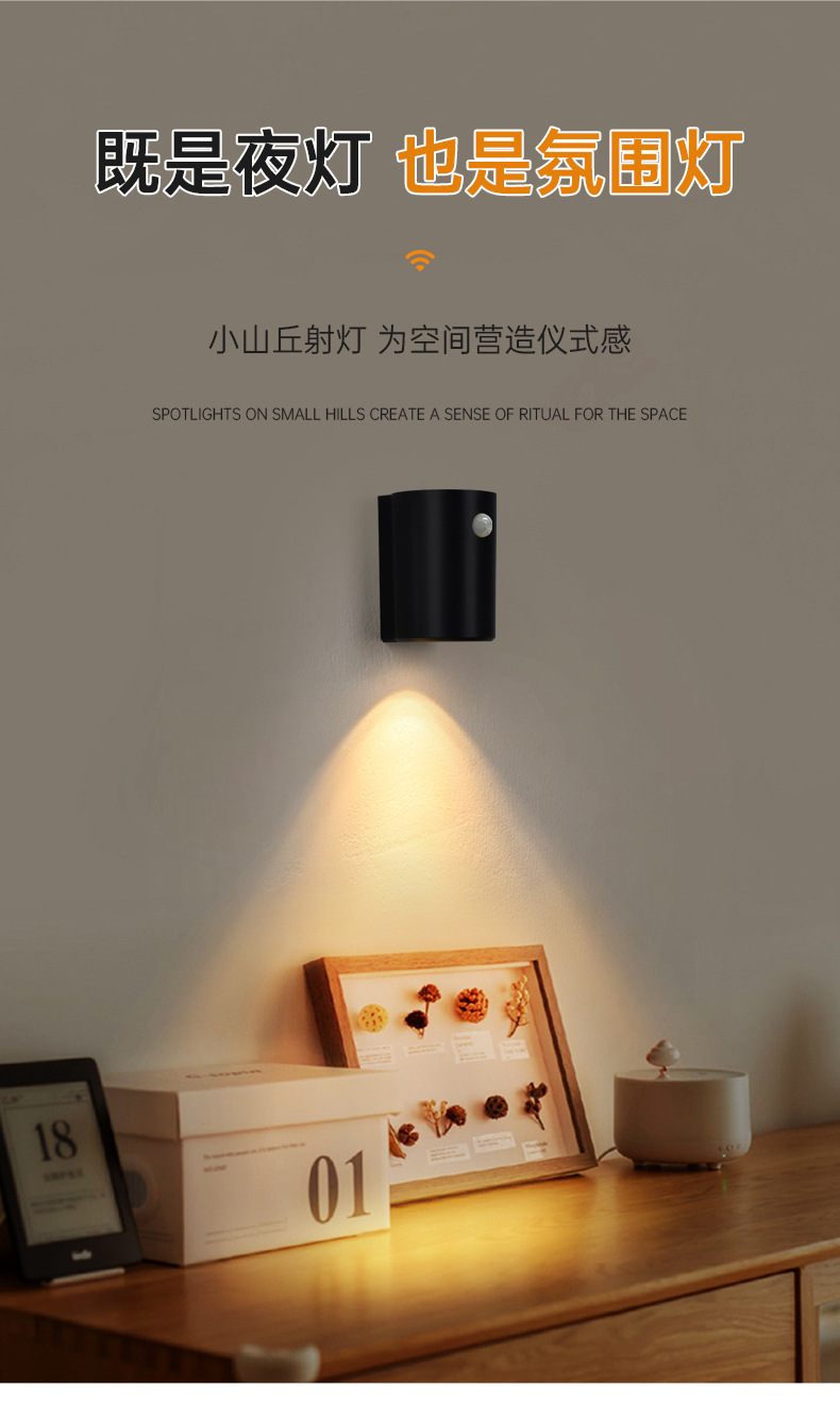 지능형 유도 스포트라이트 야간 먹이 침대 옆 야간 조명 침실 야간 통로 장식 충전 분위기 led 조명스토어 가기