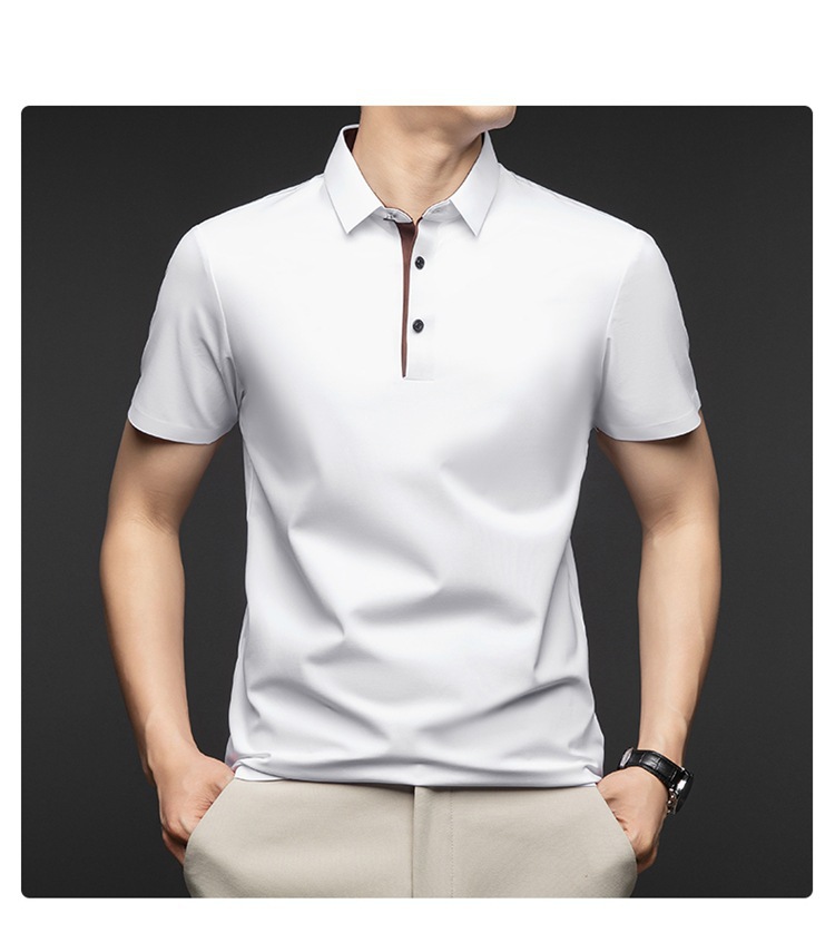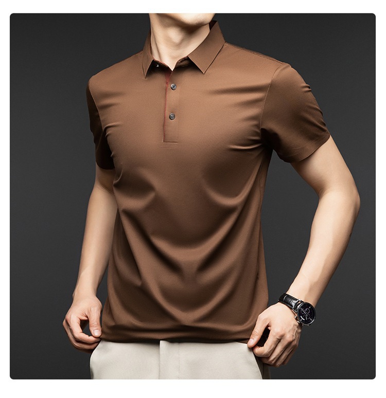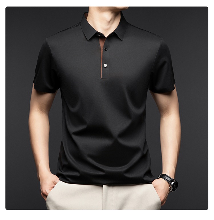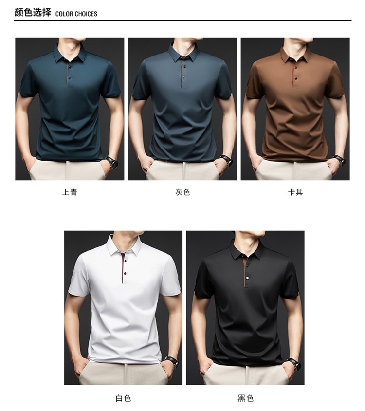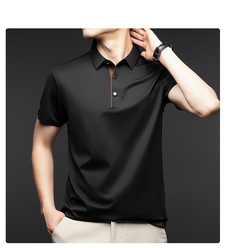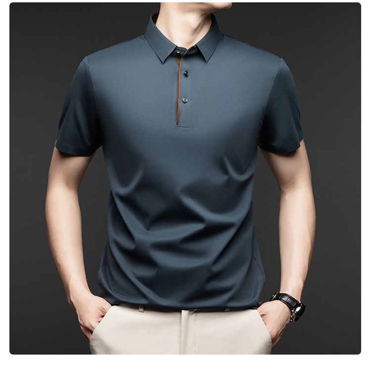 中年男士含桑蚕丝冰丝polo衫男短袖t恤夏季新款翻领商务无缝T恤